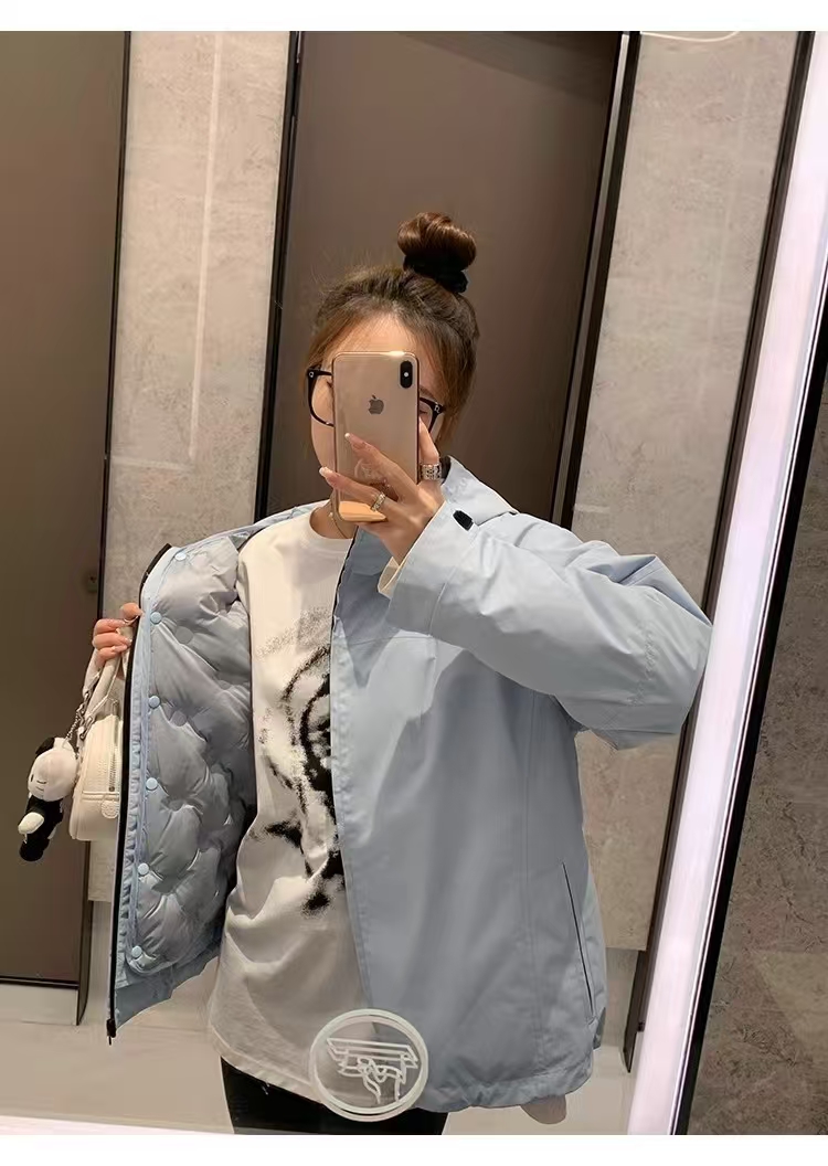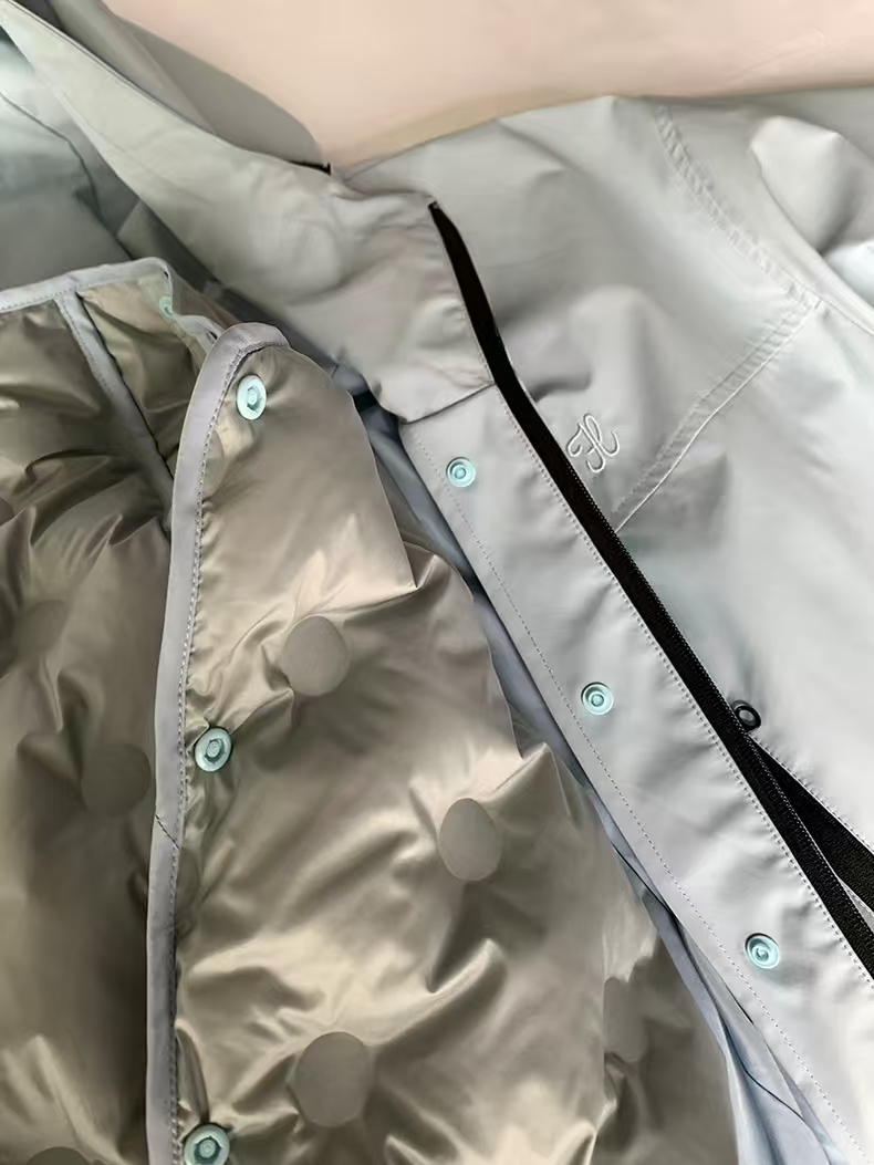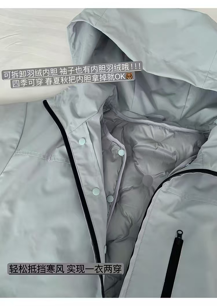蓬松的羽绒内胆,轻盈保暖,可根据温度随时拆卸,