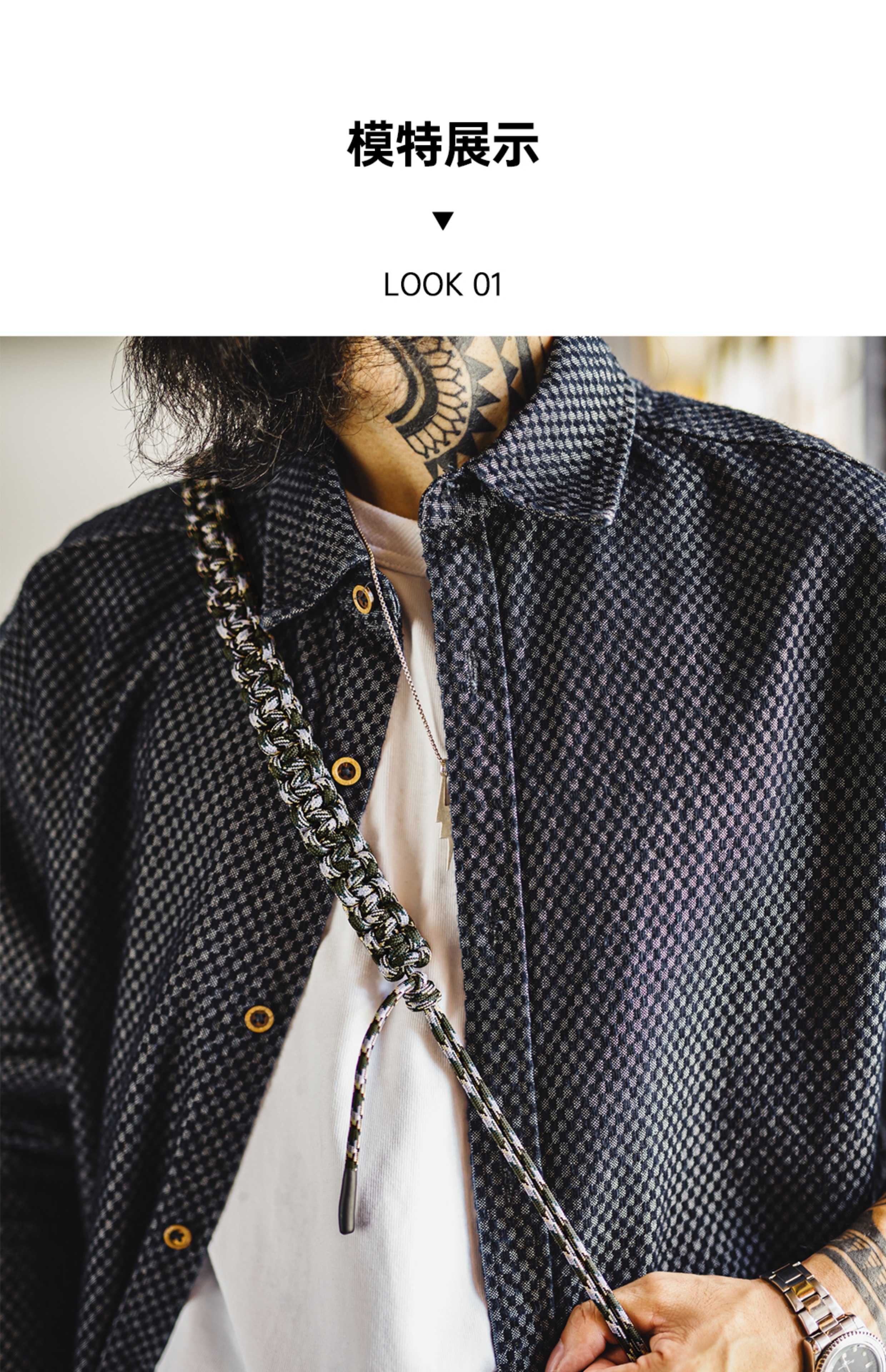 工装优选美式复古竖细条纹立领长袖衬衫日系休闲棒球衬衣外套男春