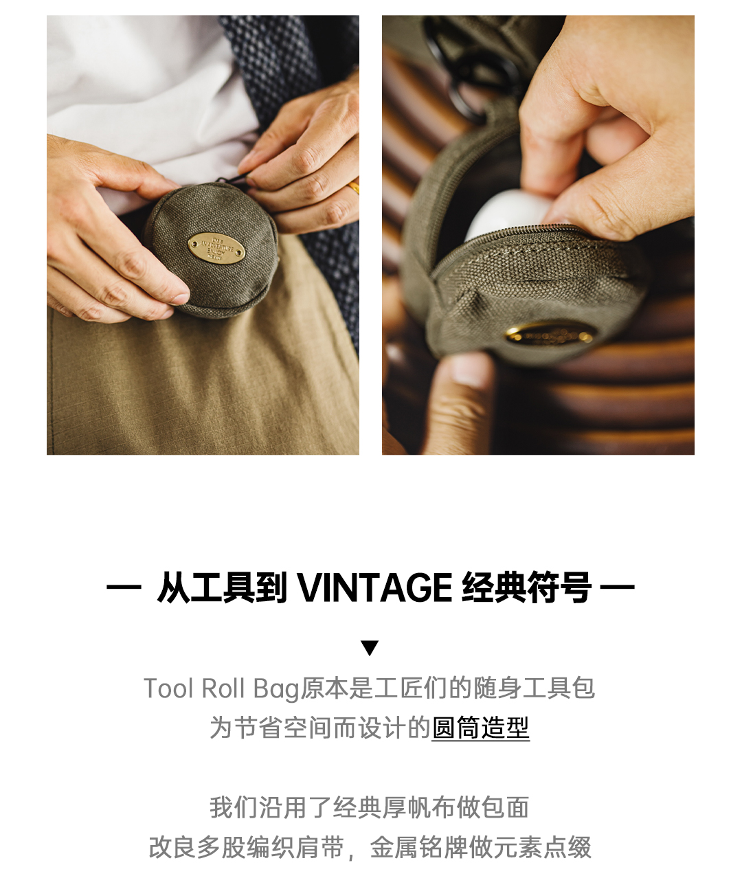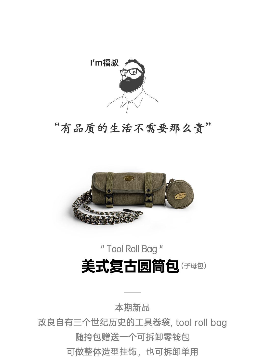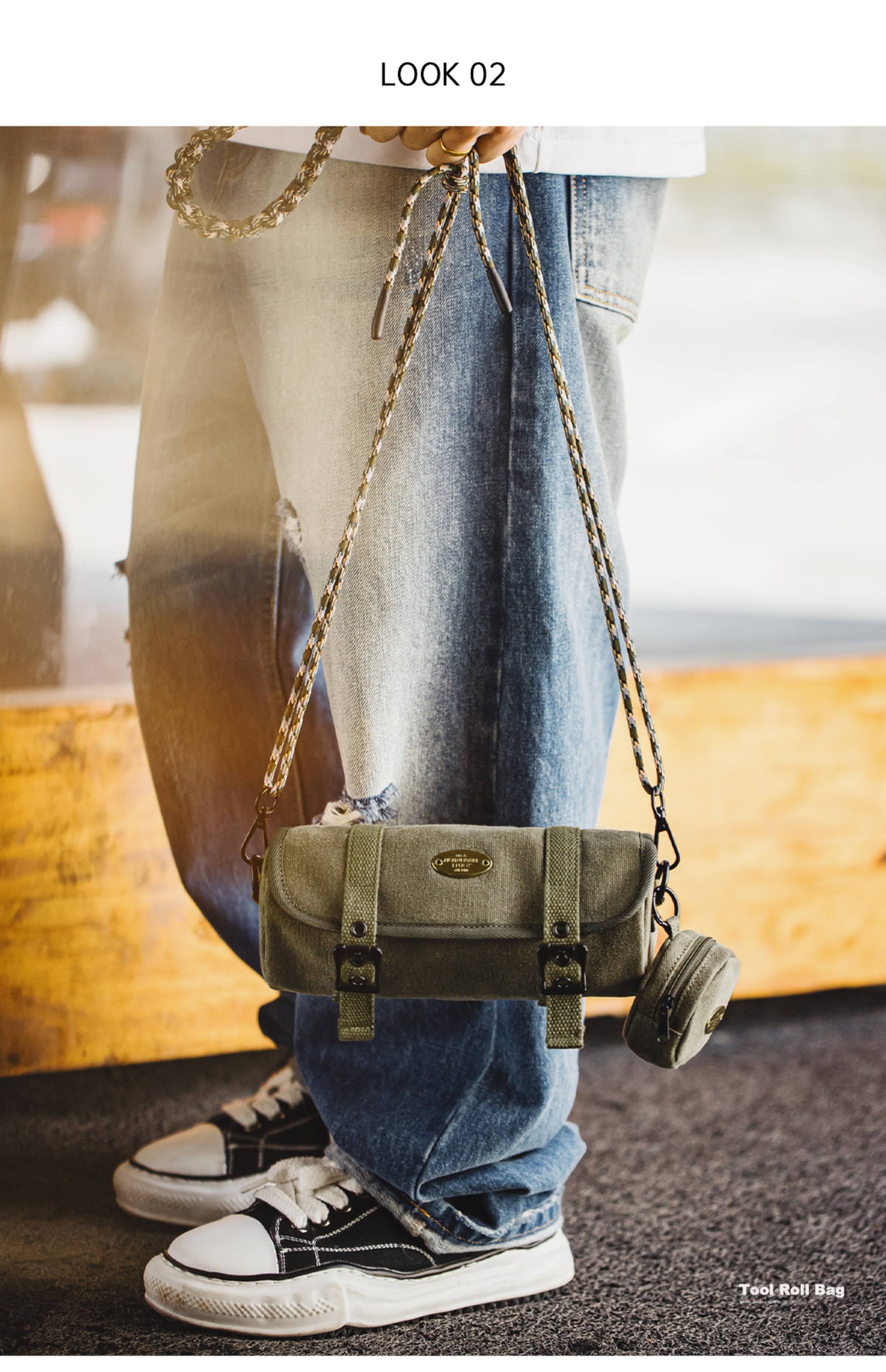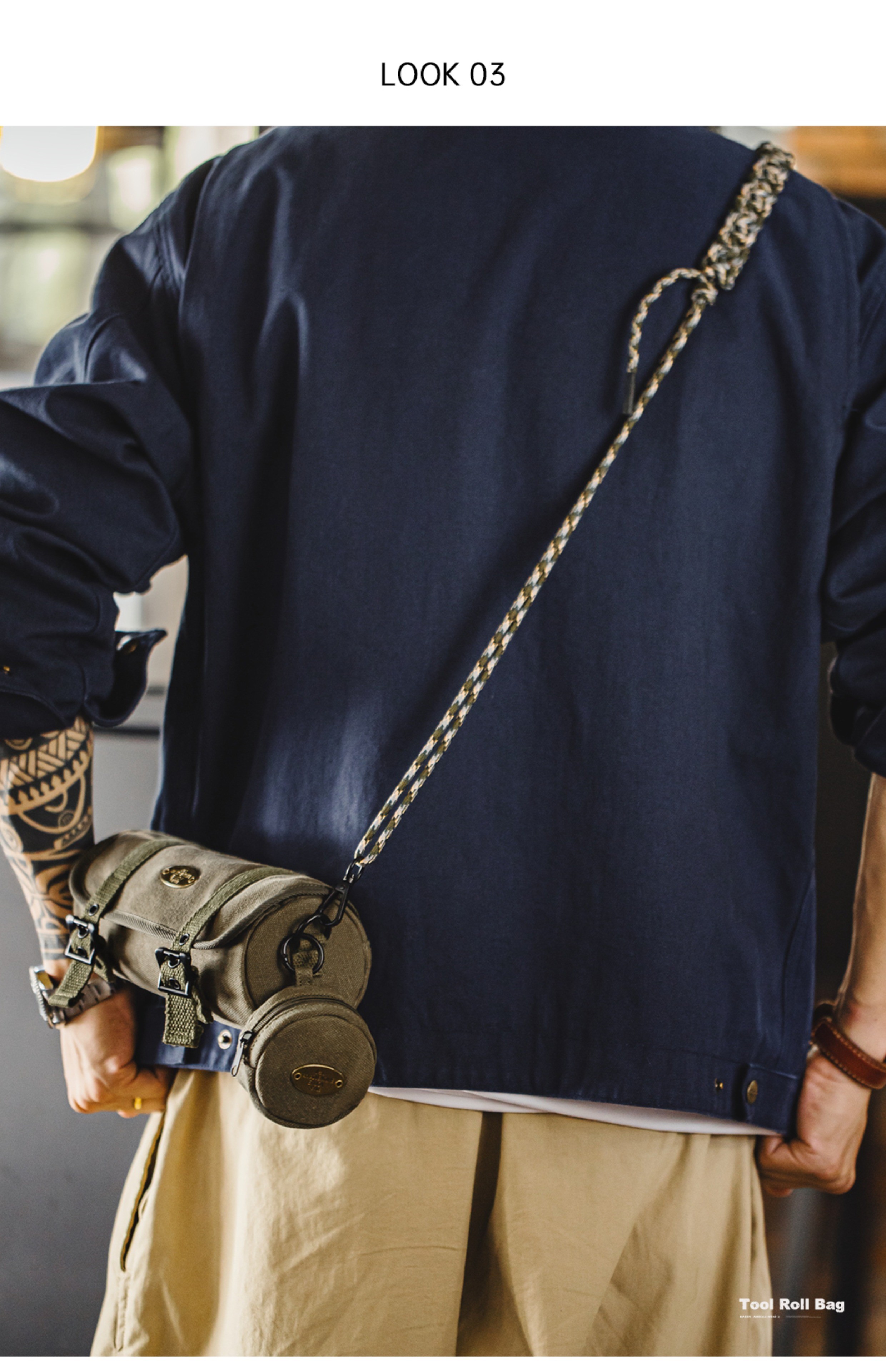 马登工装美式复古帆布圆筒包随身包通勤小包斜跨包包子母零钱包男