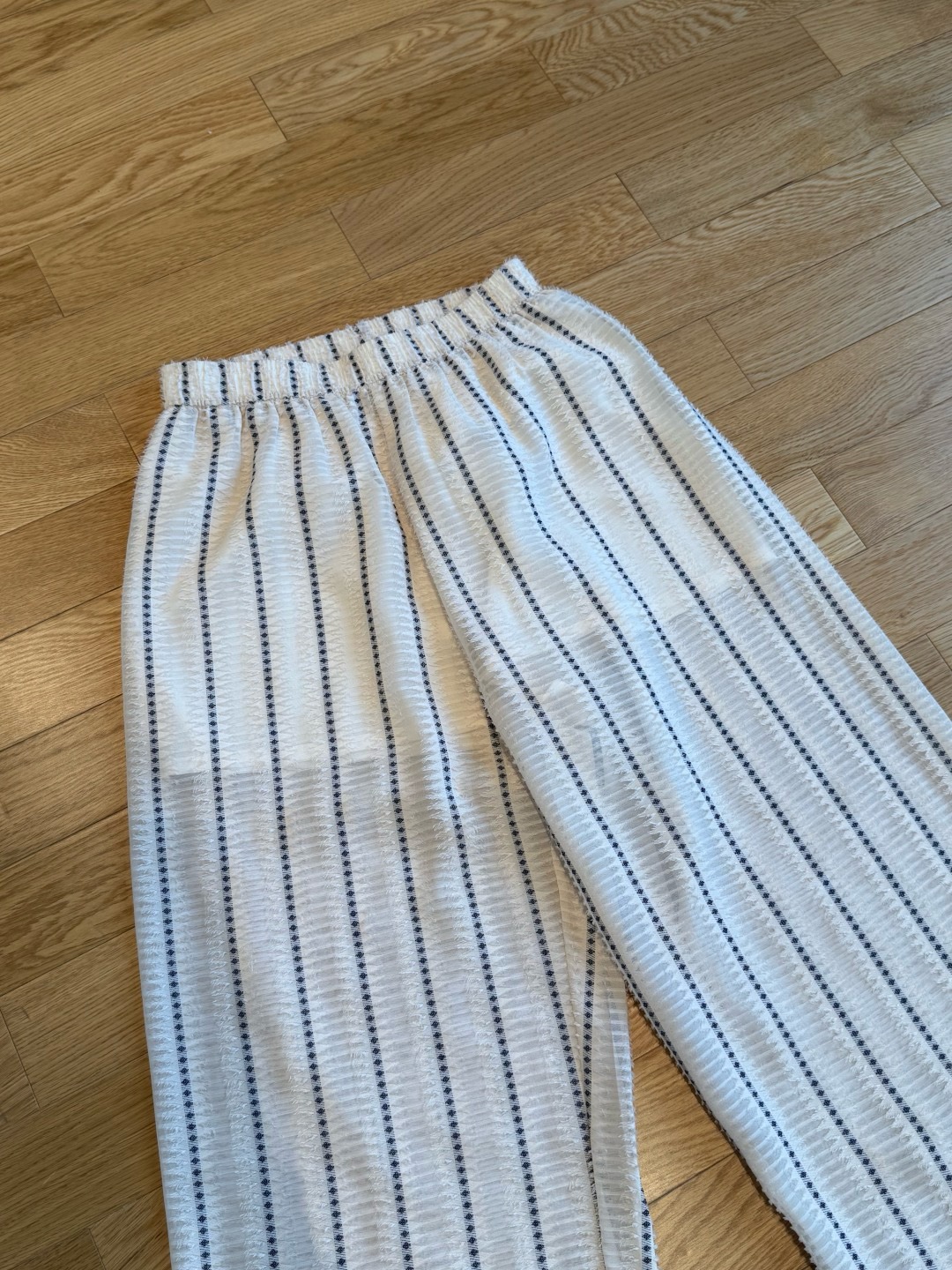 米白色底部与湛蓝条纹碰撞 通过立体毛须提花形成光影渐变效果,加上条纹间距 营造纵深感 视觉上就很显瘦。