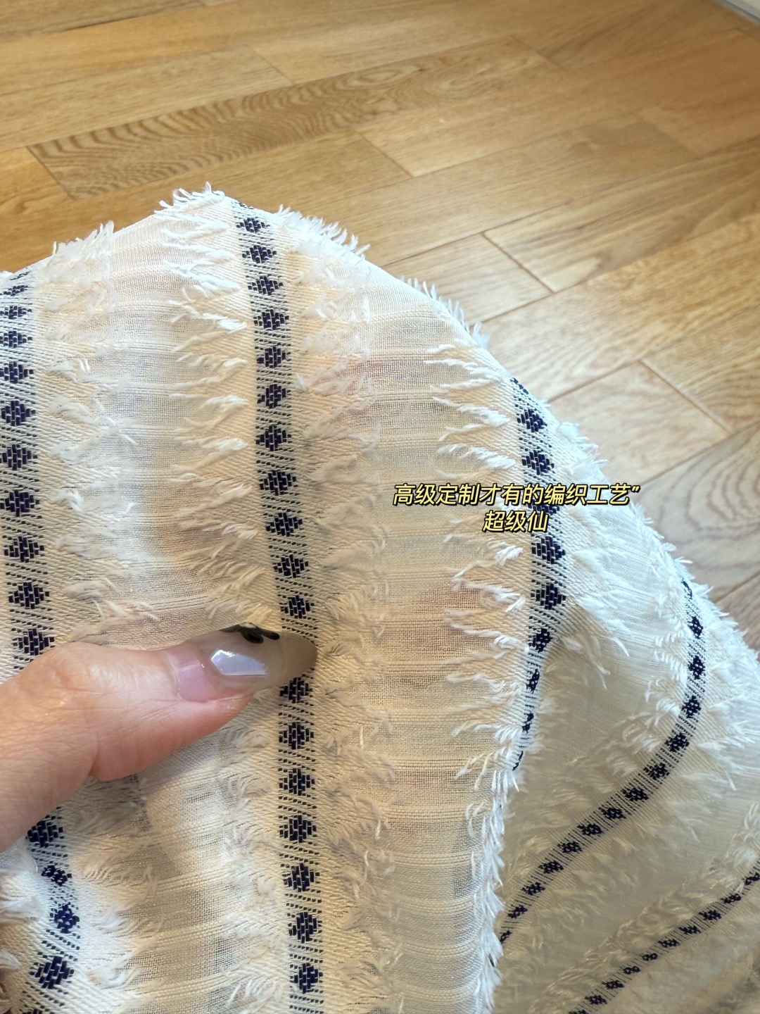 微透的底层肌理,搭配提花毛须工艺,穿着无忧,打造出慵懒不失精致的高级感