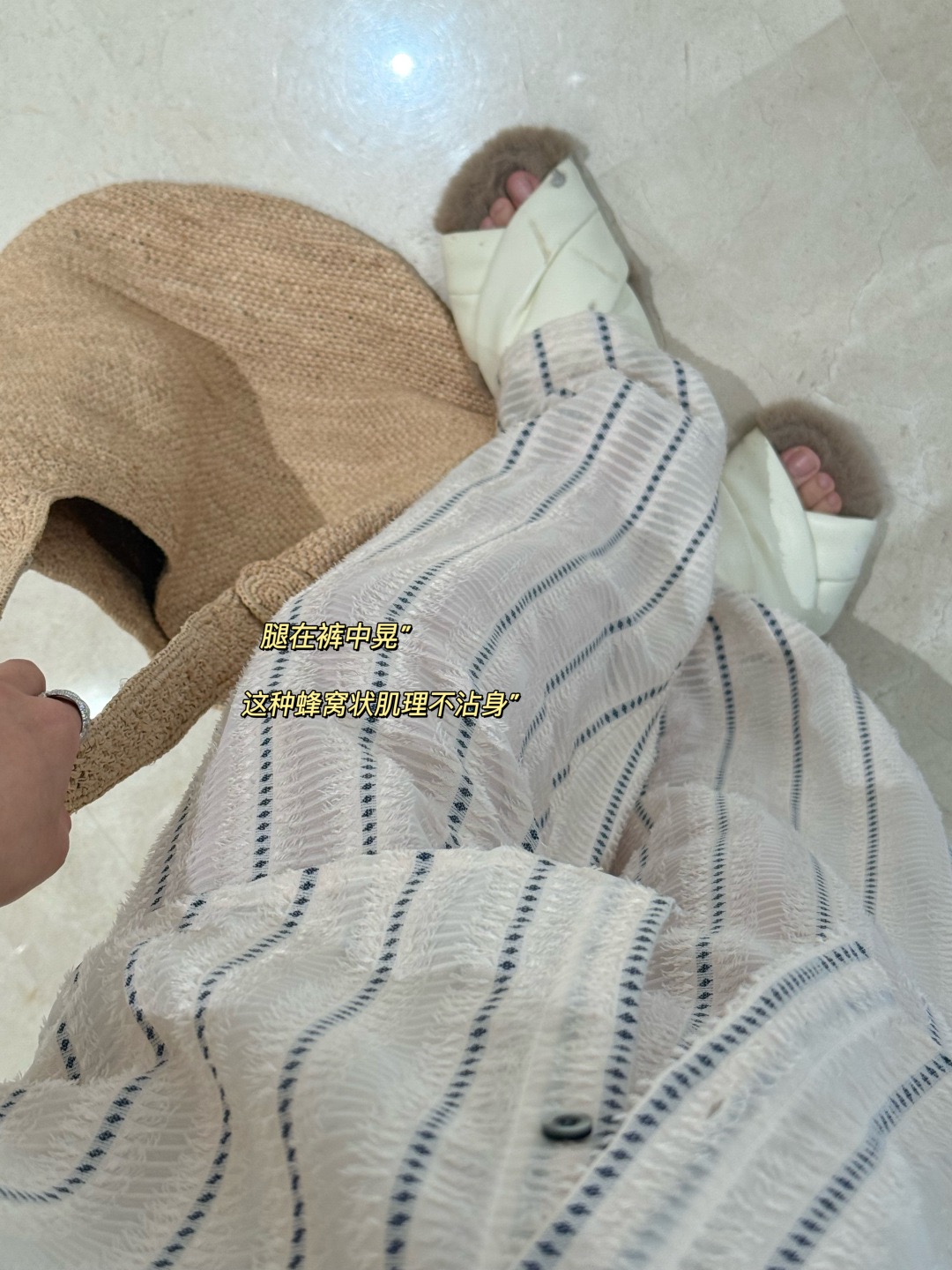 100%聚酯纤维,但是全新的纺织,就像户外专业运动都是聚酯纤维一样,成熟的创意纺织,做到了亚麻的质感与透气。