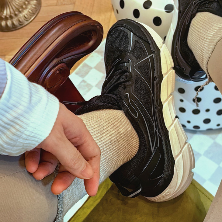 跃菱1.0有五色可选,男女同款的米黄、灰嫩绿,男款还有白银撞色及黑色,女款还增加了黑白熊猫色,我自留啦,难得入个深色的!跑跳时支撑力十足,回弹良好,毕竟有半掌超菱碳板纤维片嘛!而且4.6cm的跟高不仅显瘦好看,还提升了舒适度,整体也是超轻便且包裹性极佳,穿上后不挤脚、不磨脚、不掉跟,对足弓非常友好,特别适合跑跳和长时间散步的老粉,也可以给家属安排上!