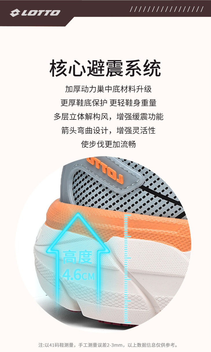 Lotto乐途,成立于1973年,总部位于意大利,1992年以强有力的姿态,挤掉阿迪成为AC米兰球衣赞助商。意大利球员卢卡托尼曾穿着Lotto乐途战靴赢得了世界冠军,之后卢卡在拜仁也是穿着Lotto获得了德甲金靴。这次上架跑鞋不仅经典,更是具备超轻、透气、减震和高弹等多重优点,使得穿着舒适度也是不得了,在设计和材质上都下了不少功夫,中层设计的能量环结构、镂空设计、4D梦幻纱鞋面,品质真的不像是一双百元鞋!