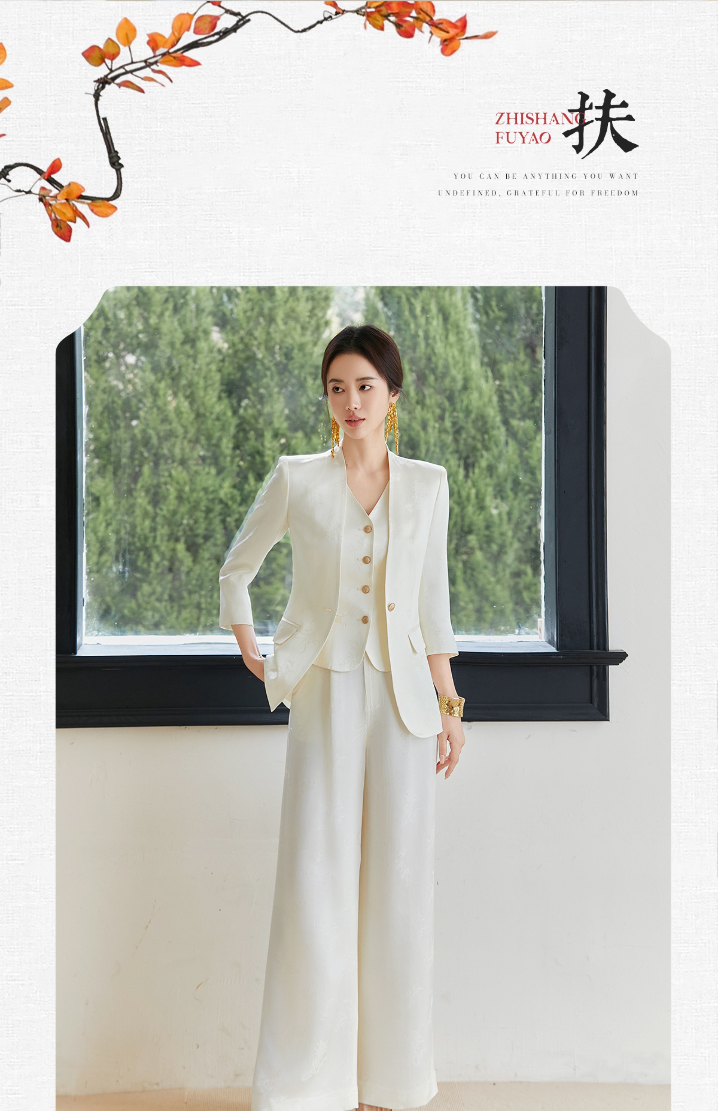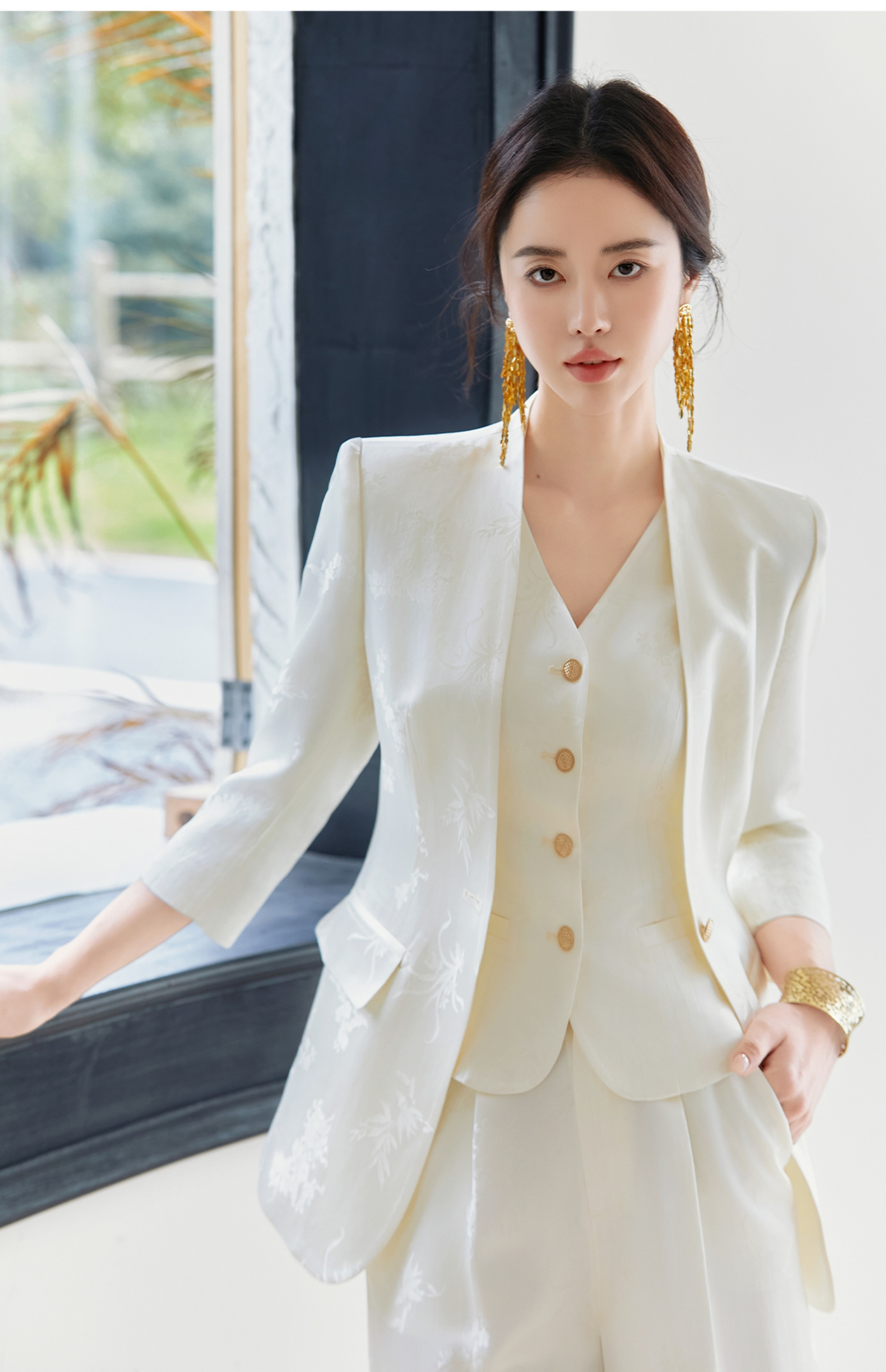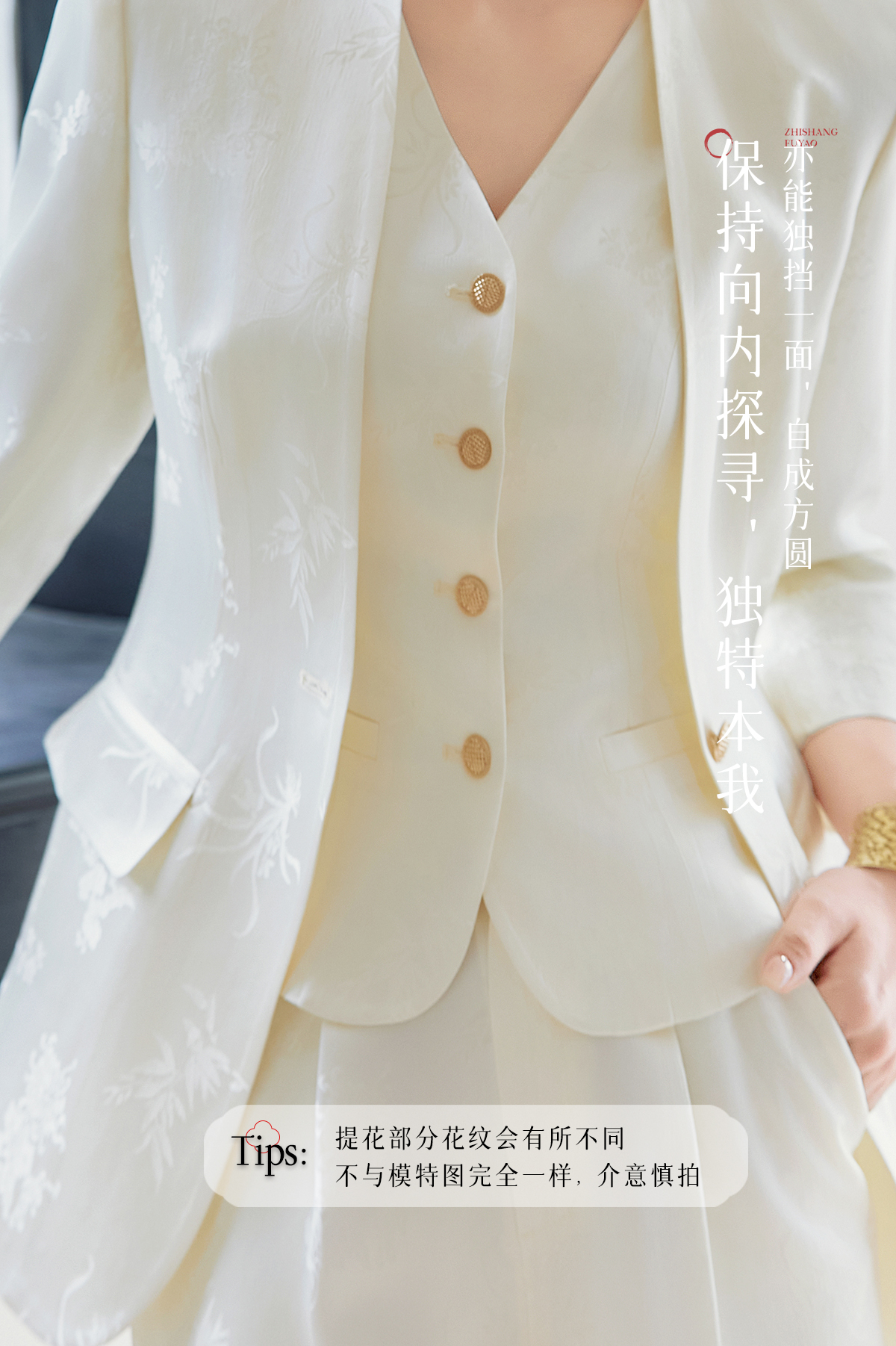 FUYAO扶摇 国风提花套装2025新款女装时尚洋气减龄醋酸西服三件套