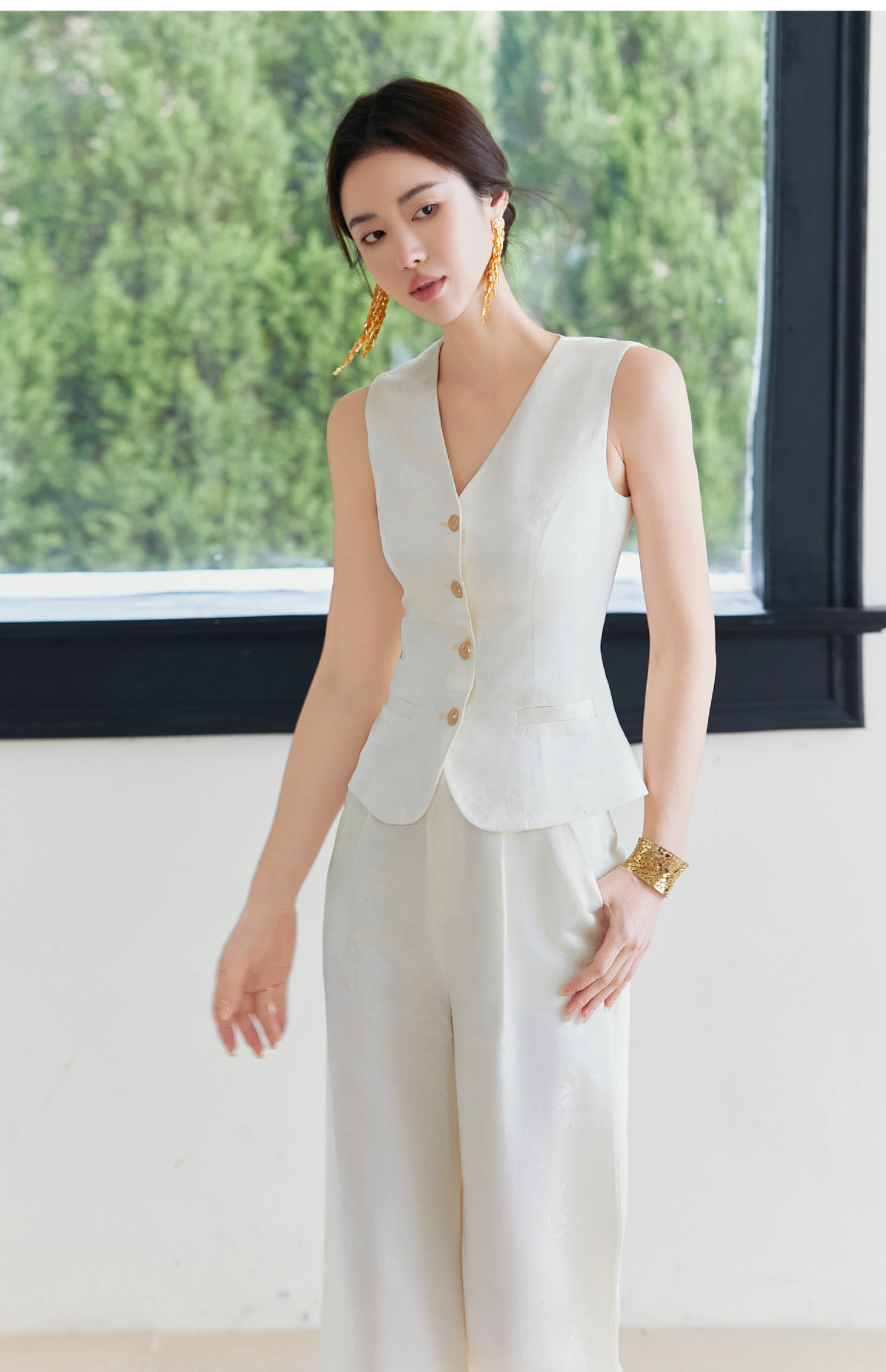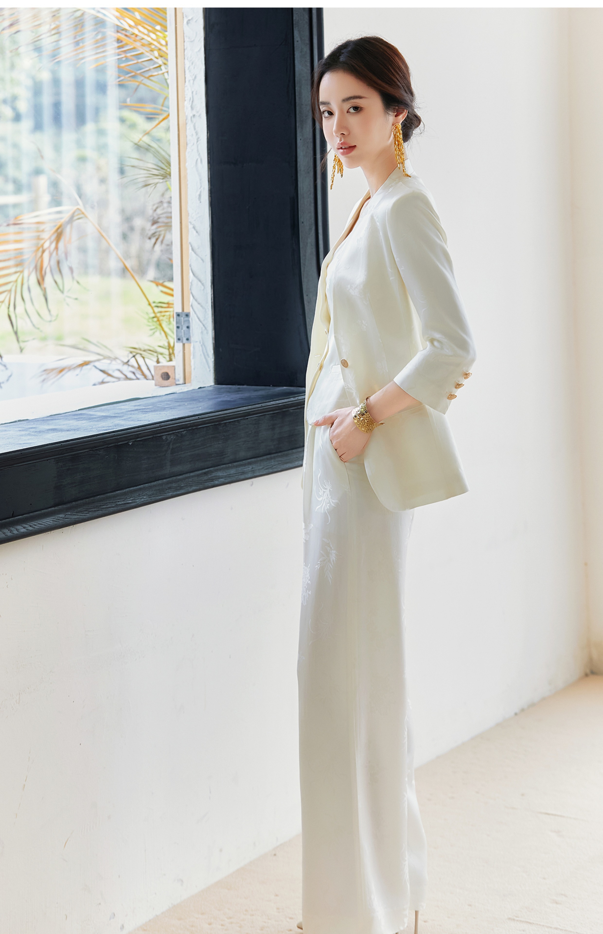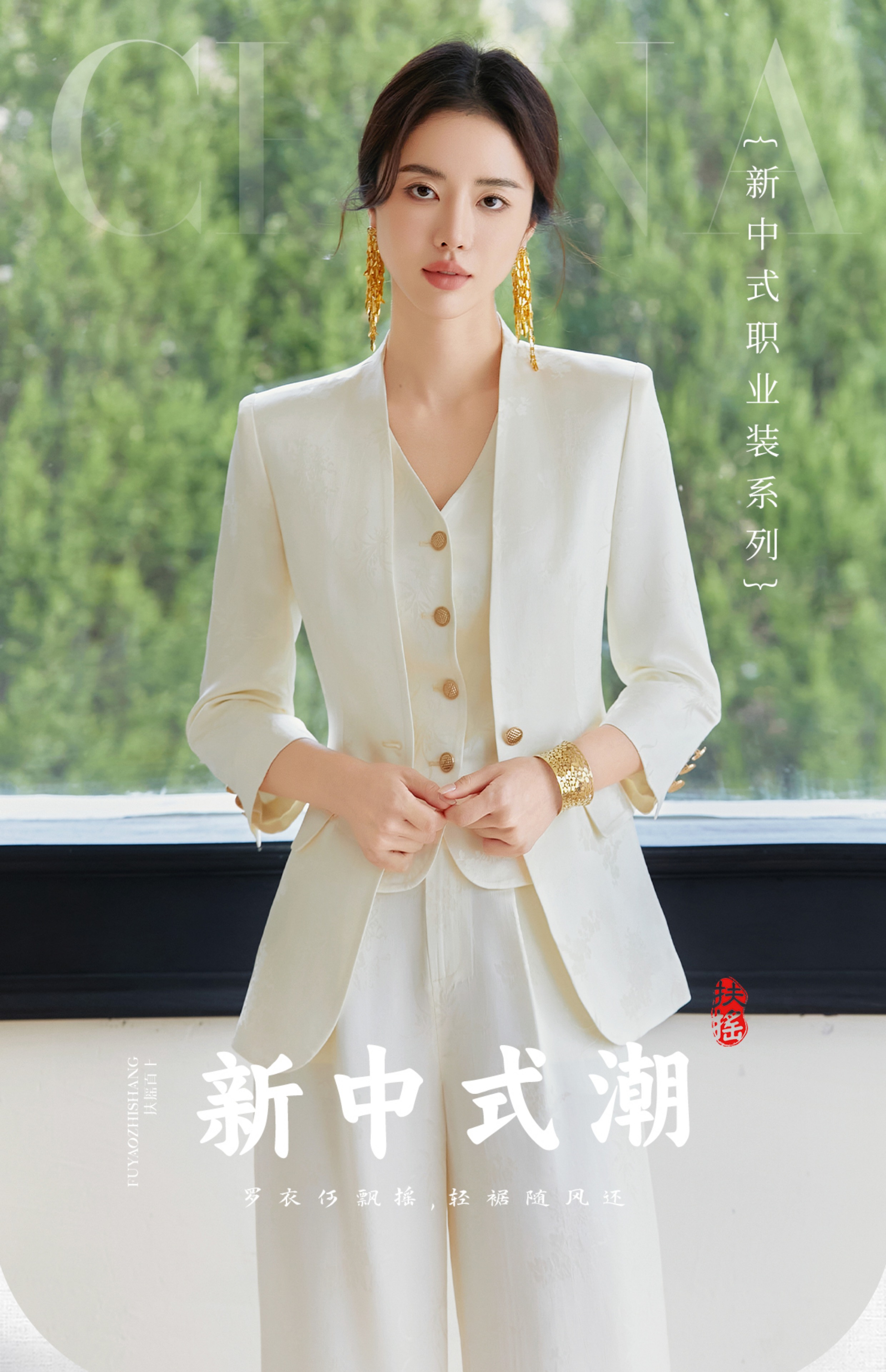 FUYAO扶摇 国风提花套装2025新款女装时尚洋气减龄醋酸西服三件套