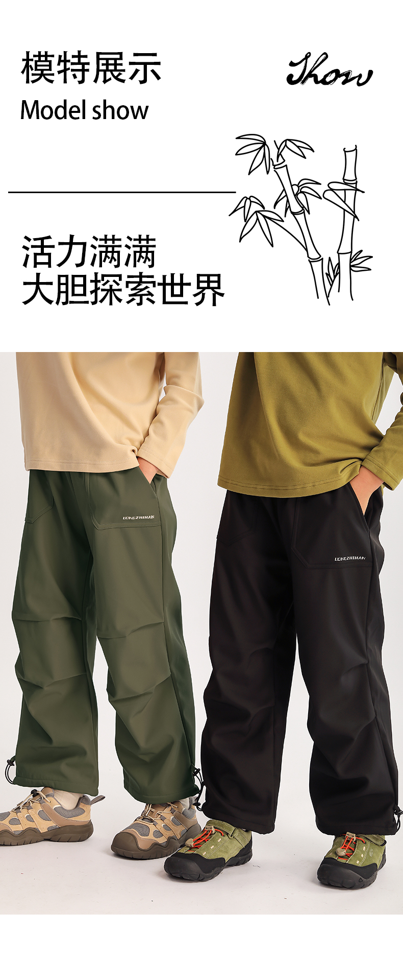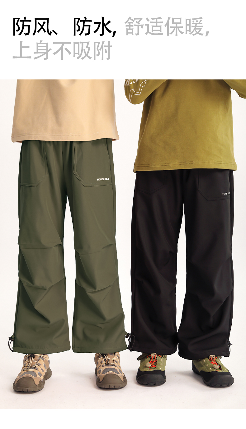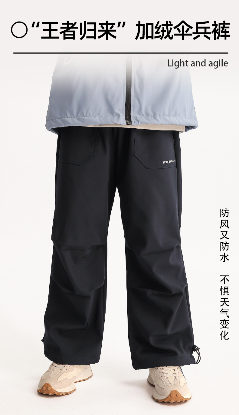 龙之涵 亲子款“王者归来”加绒伞兵裤 24年秋冬新款中大童加绒冲锋裤 强防水 A类