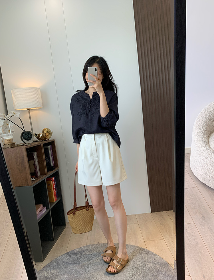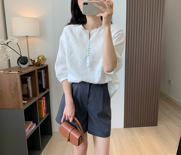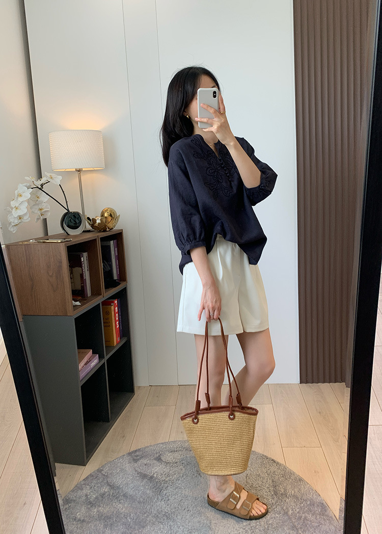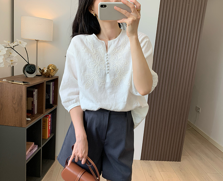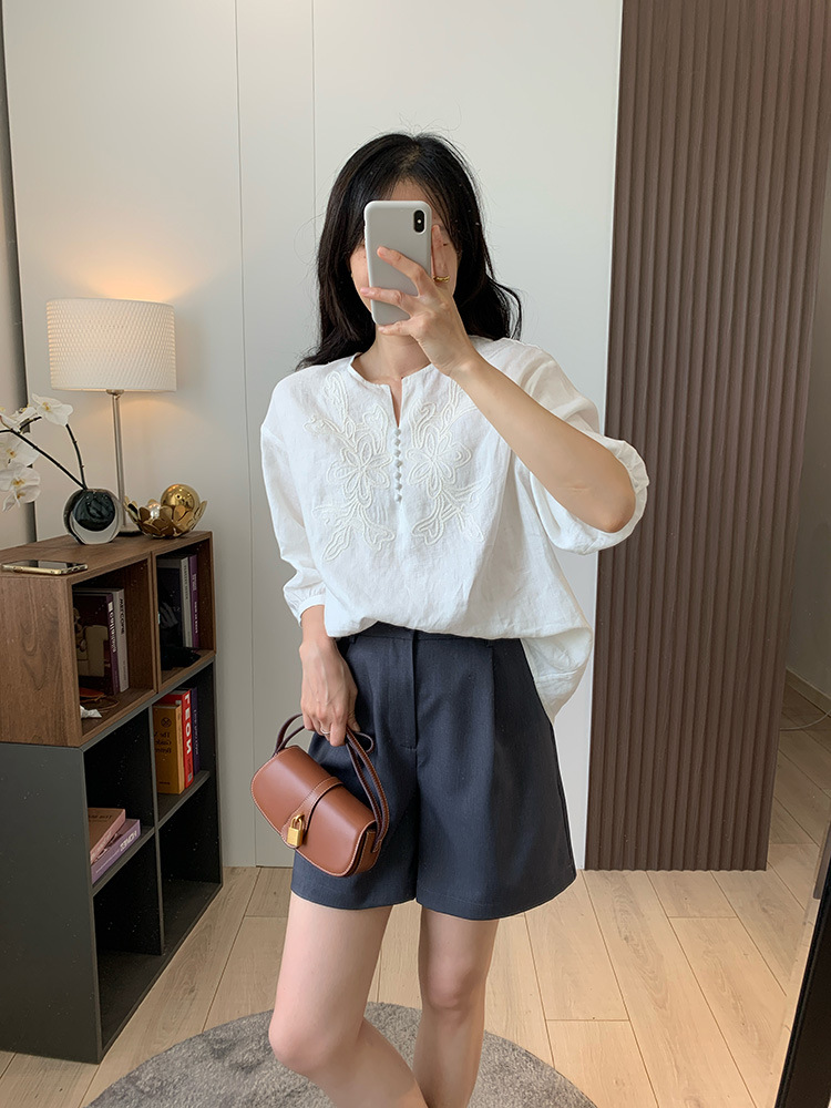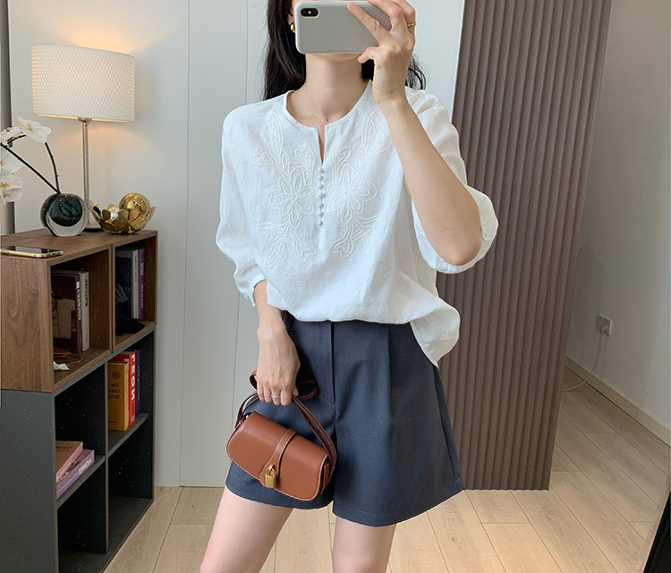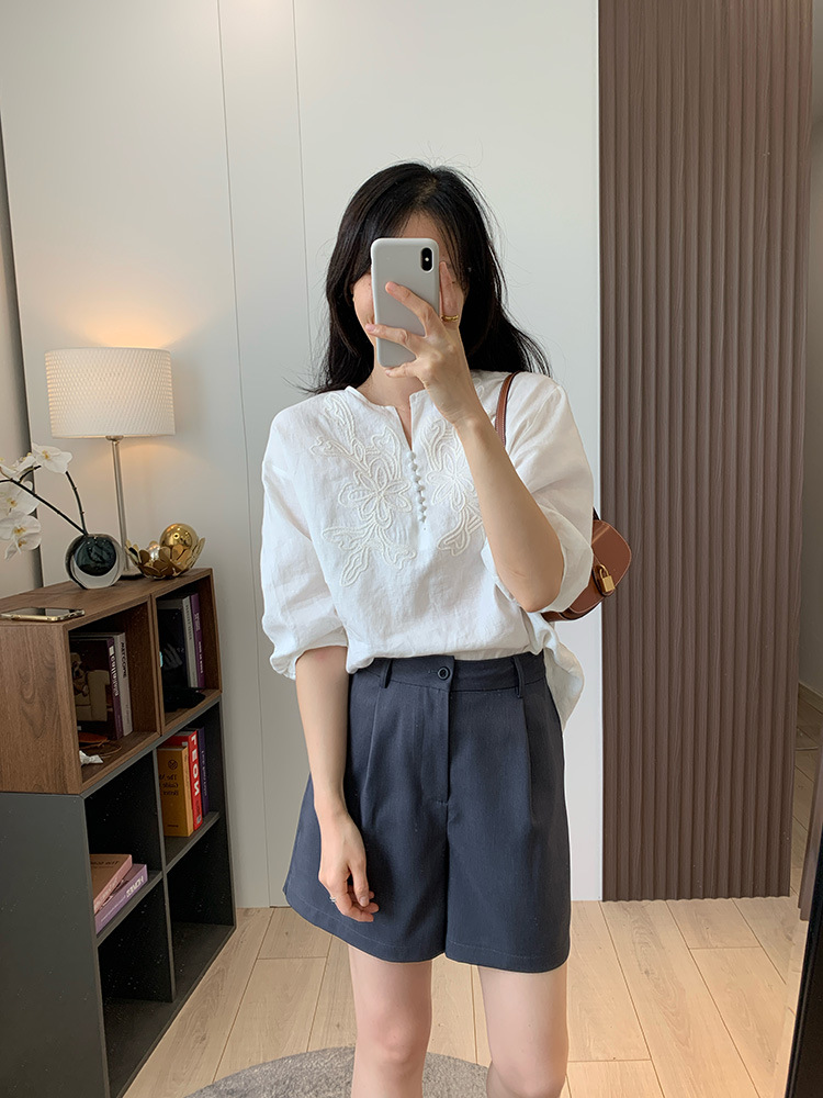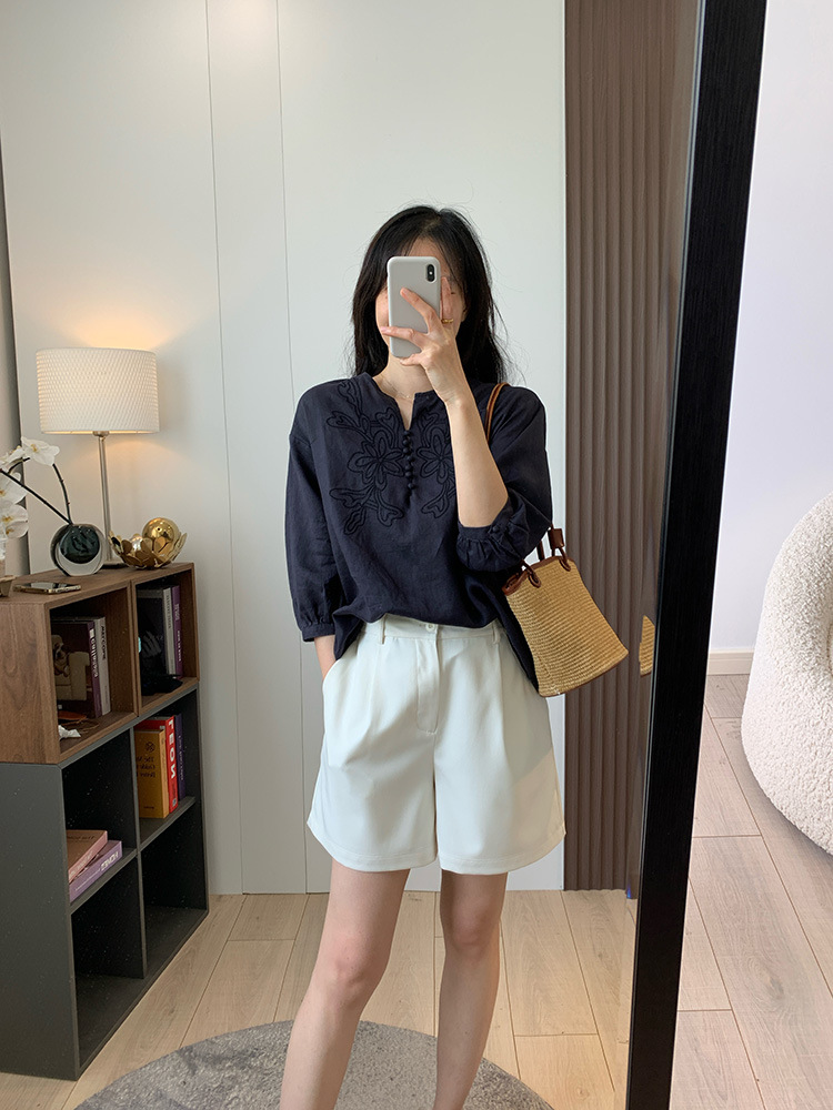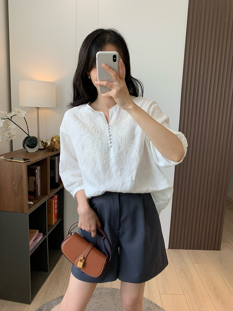 为我们量身定做的国萃刺绣亚麻衬衫,独一份的简约