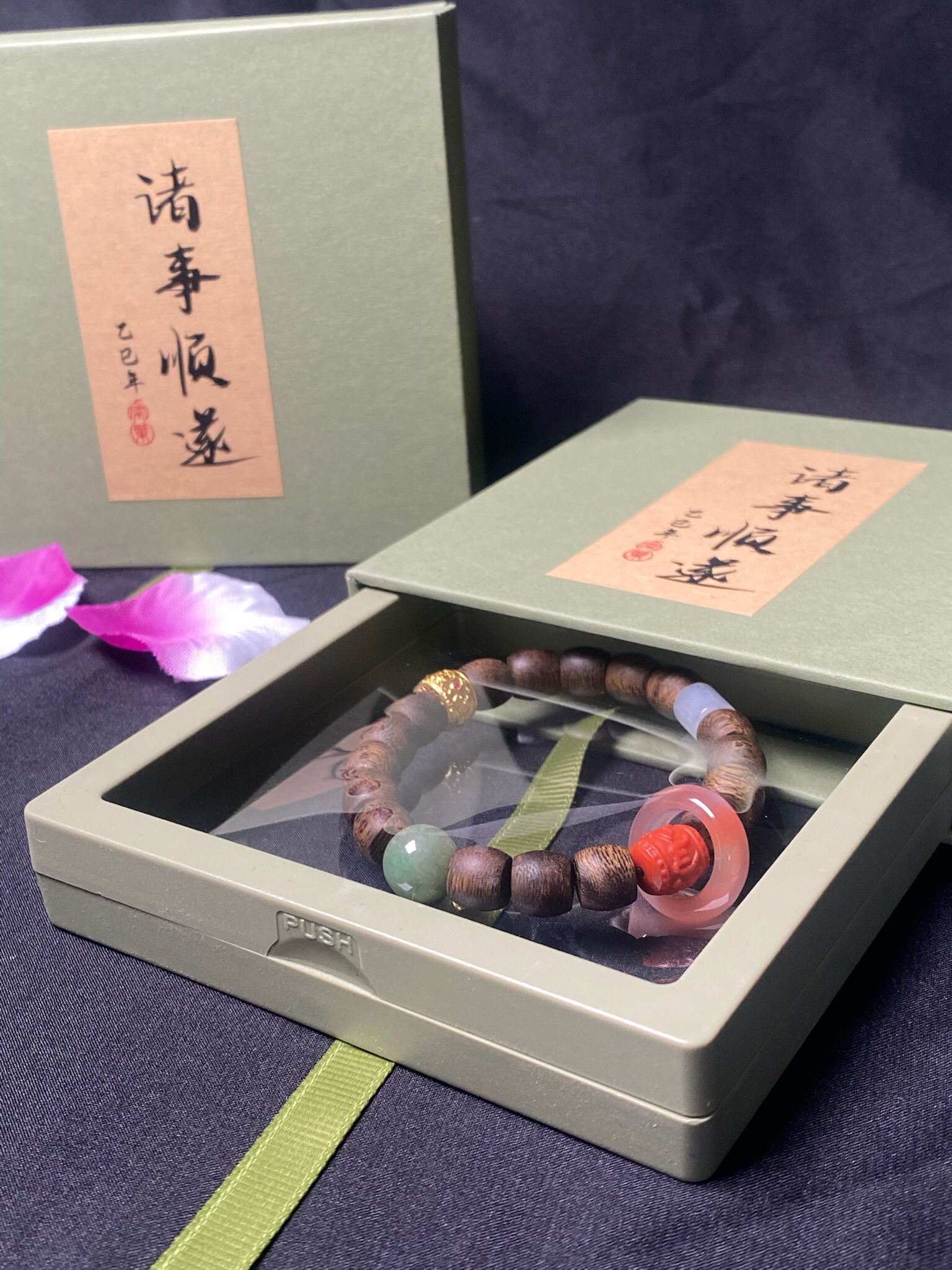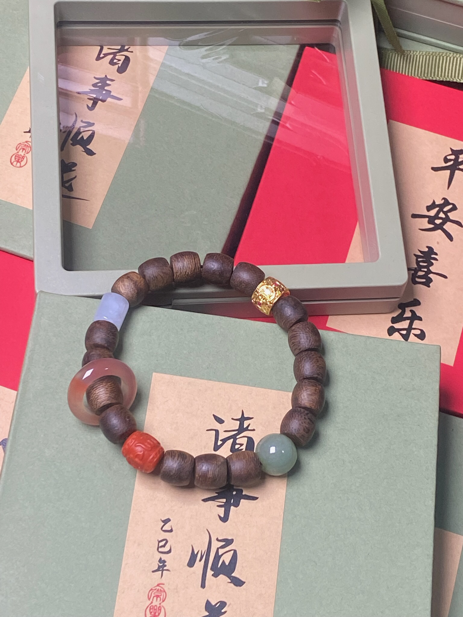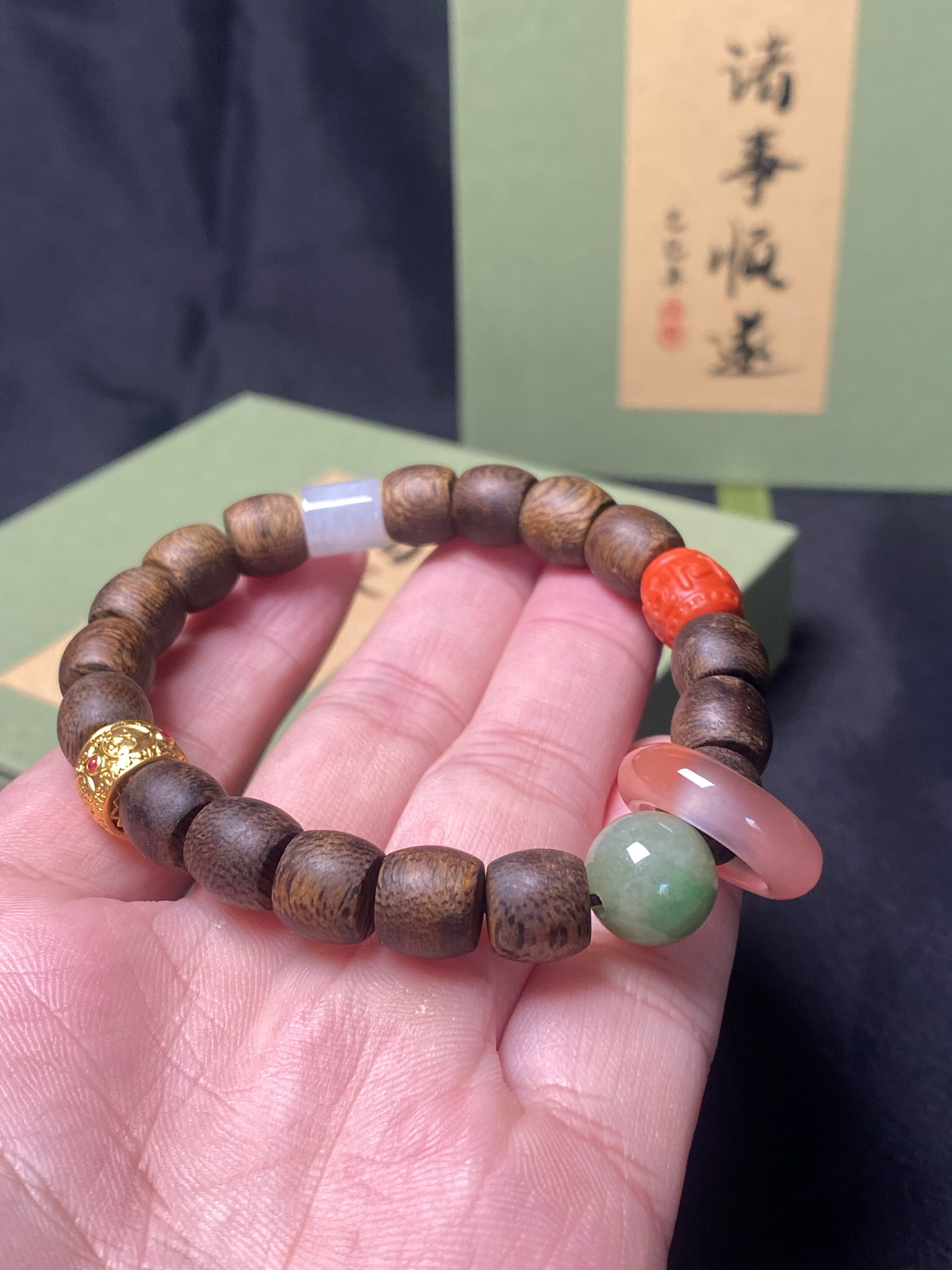 XY0107原创沉香DIY老型珠手串18K金南红老型珠翡翠冰飘南红跑环
