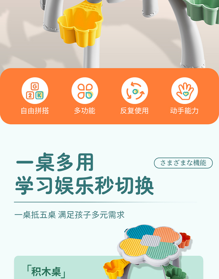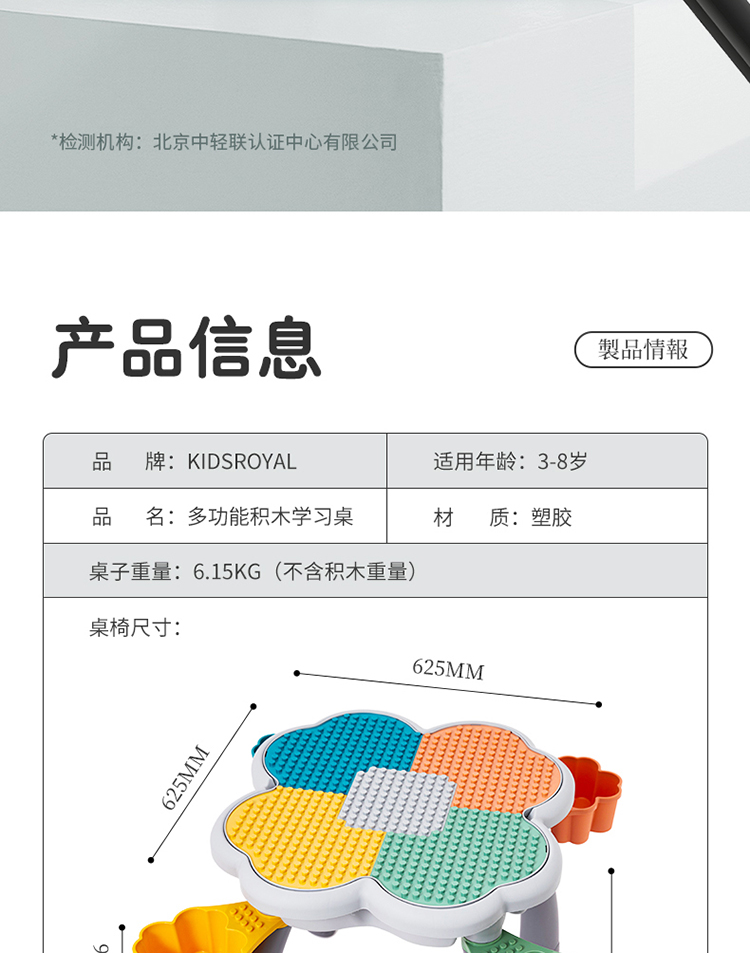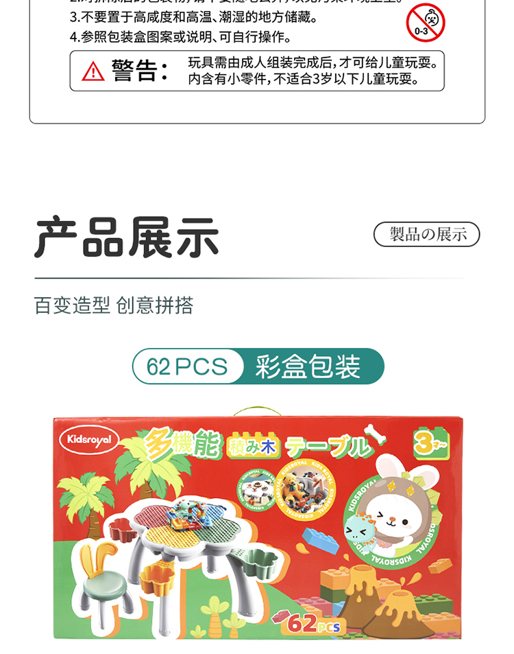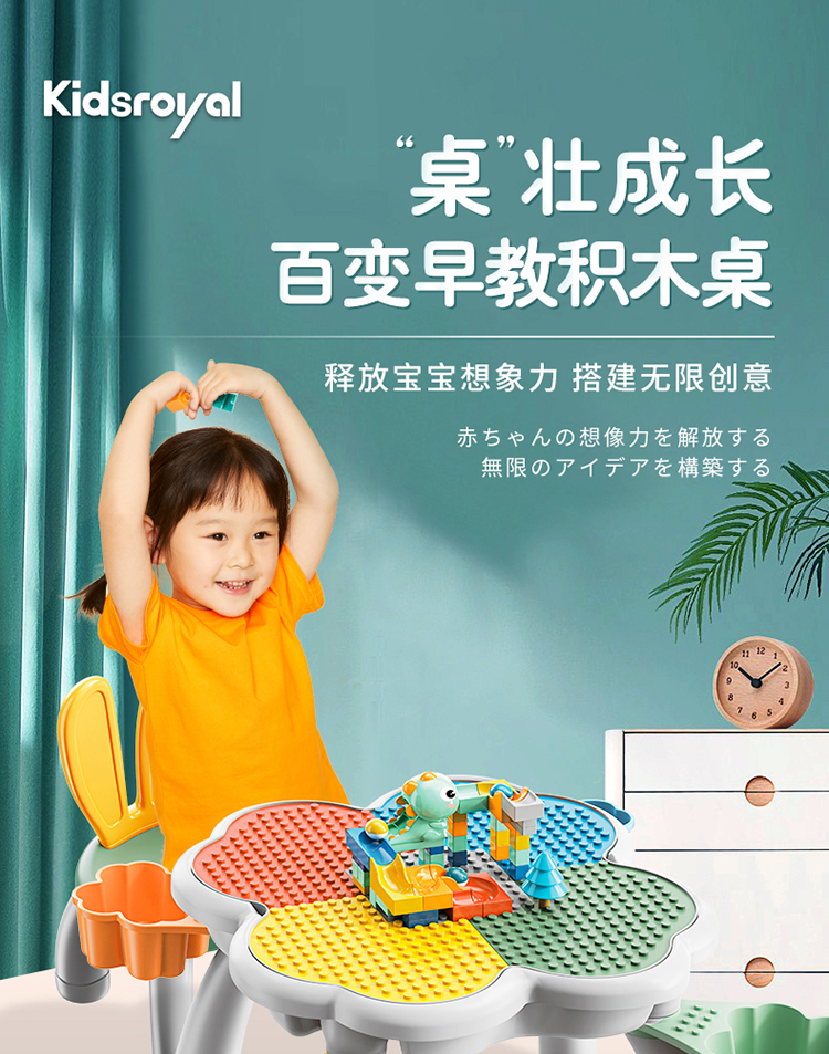 KIDS ROYAL儿童益智玩具多功能积木学习桌(3岁及以上)