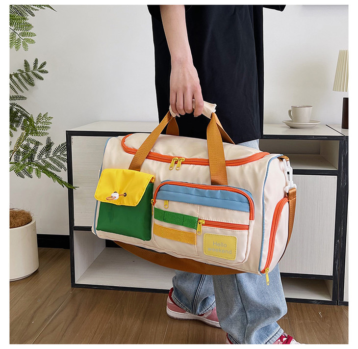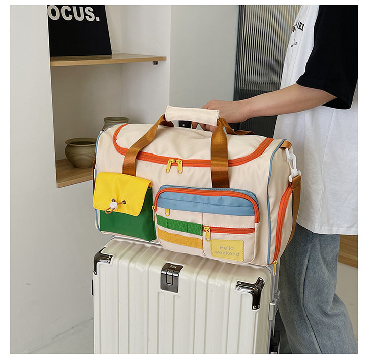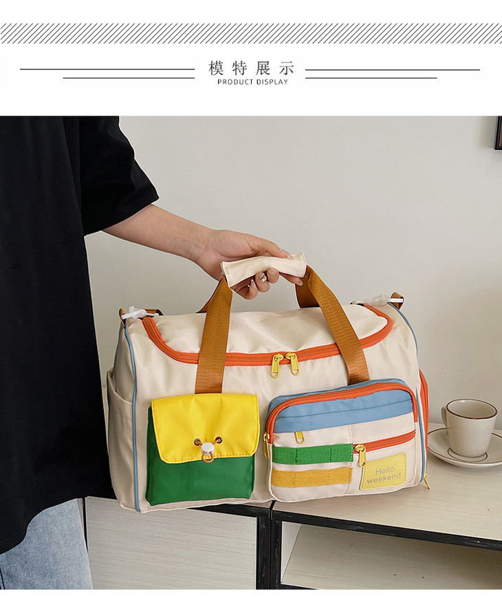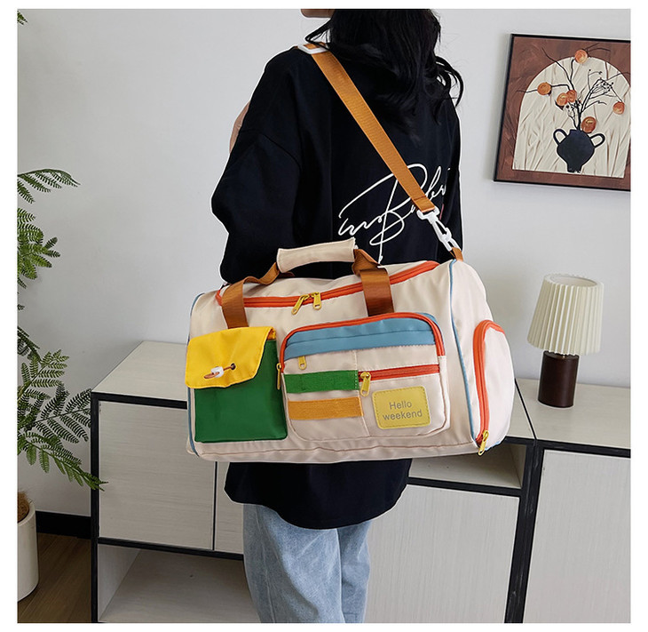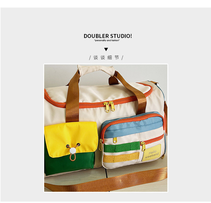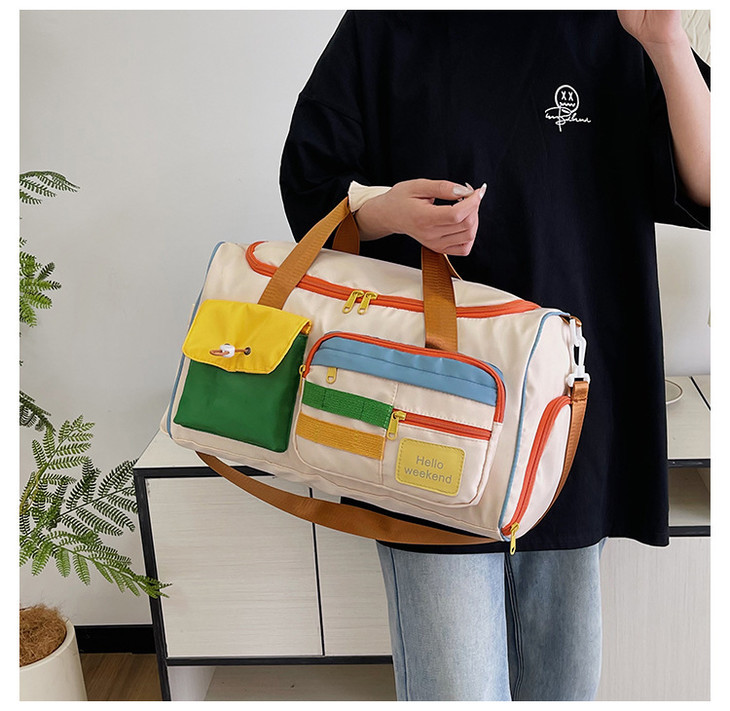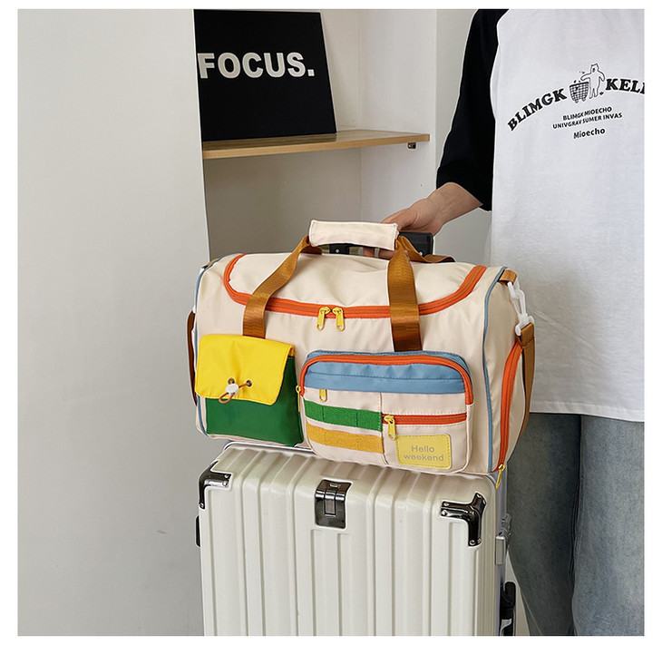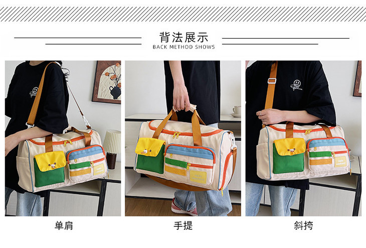 撞色斜挎运动健身包大容量旅游手提行李包时尚外出短途出差旅行包HLY