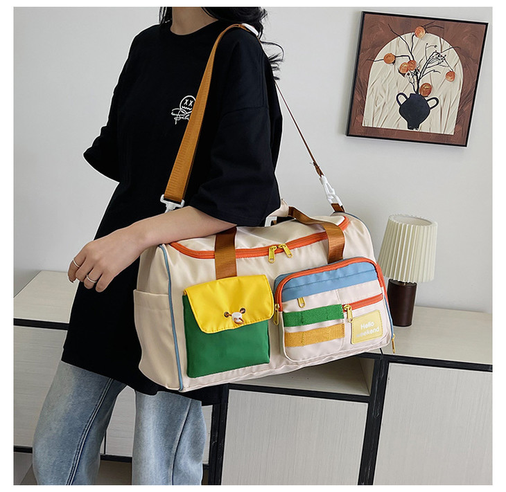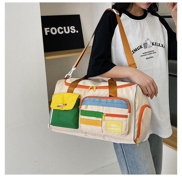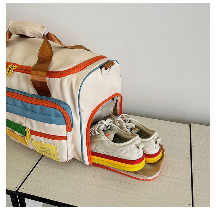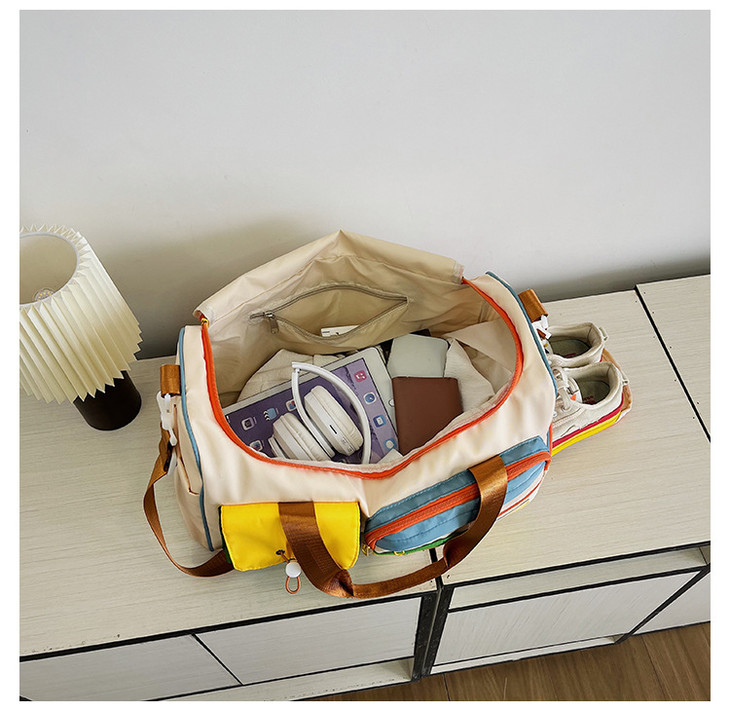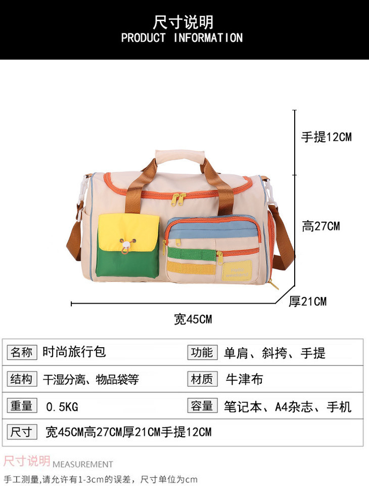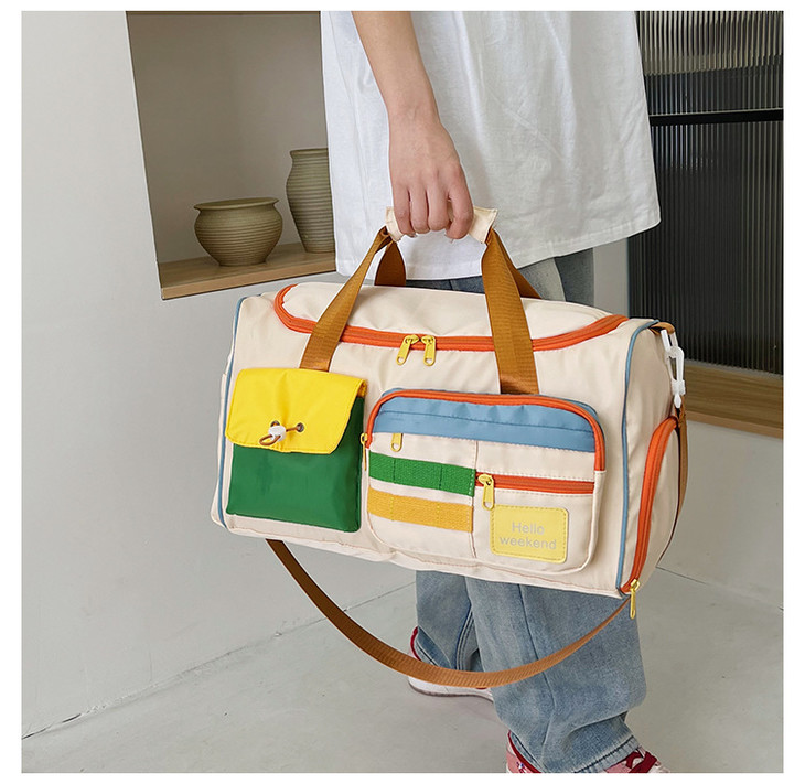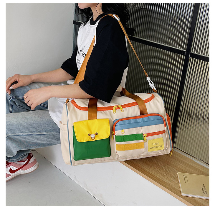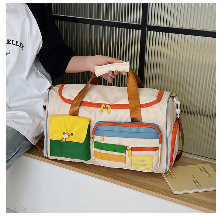 撞色斜挎运动健身包大容量旅游手提行李包时尚外出短途出差旅行包HLY