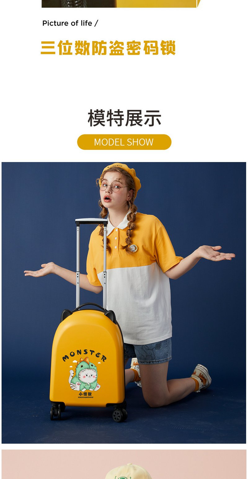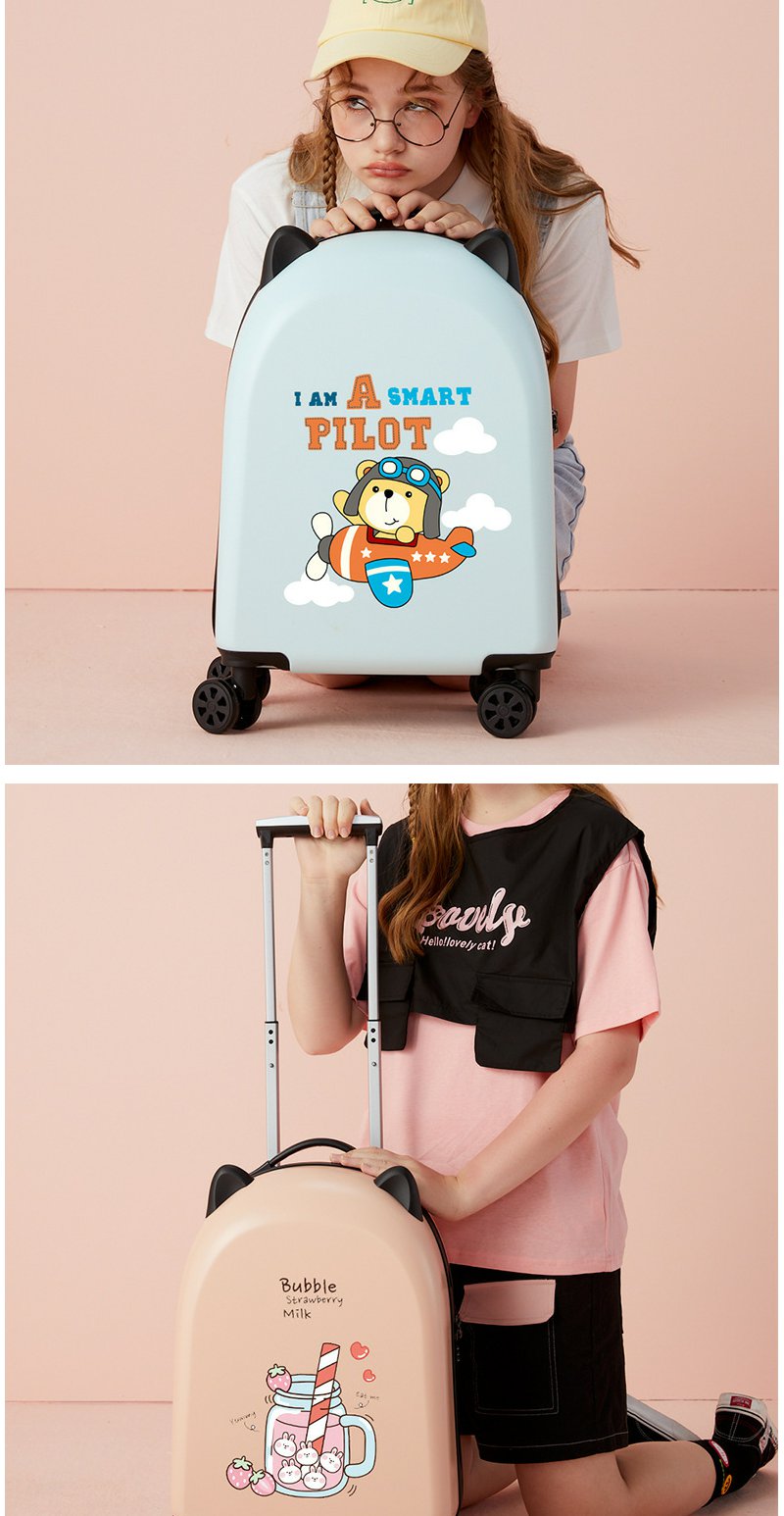 儿童行李箱女卡通登机箱万向轮18寸旅行密码箱拉杆箱 彩虹独角兽款 粉色1个