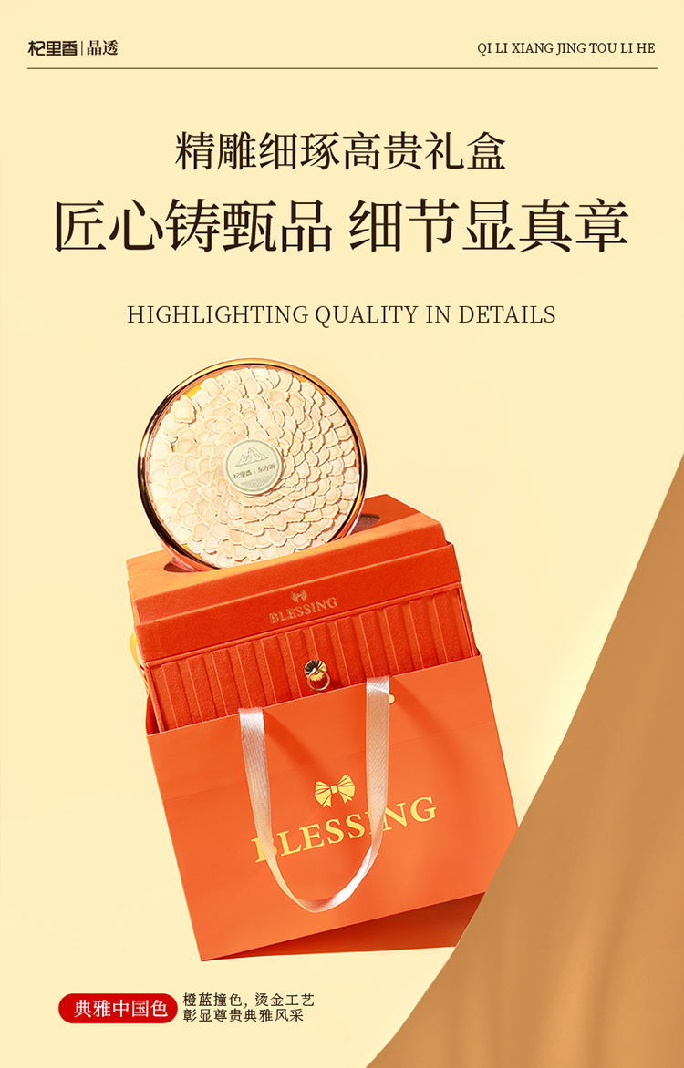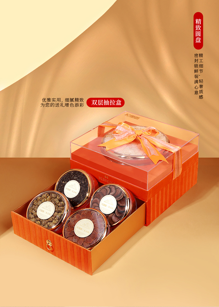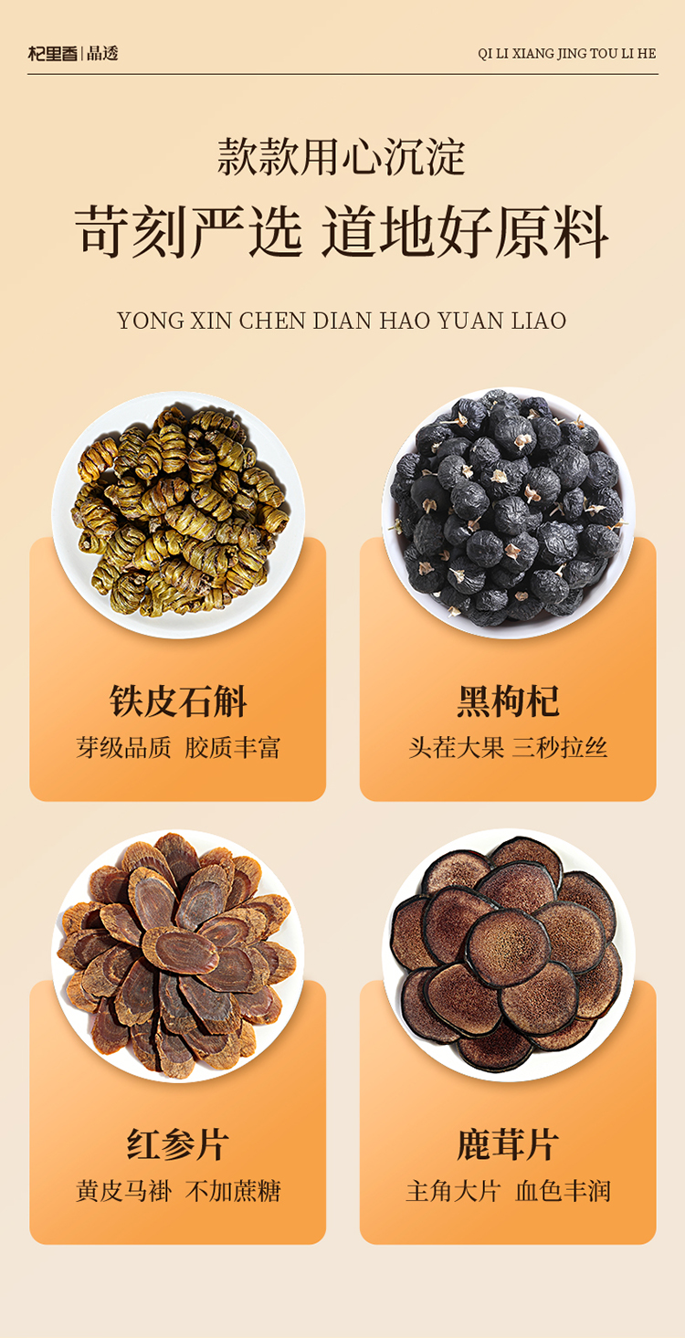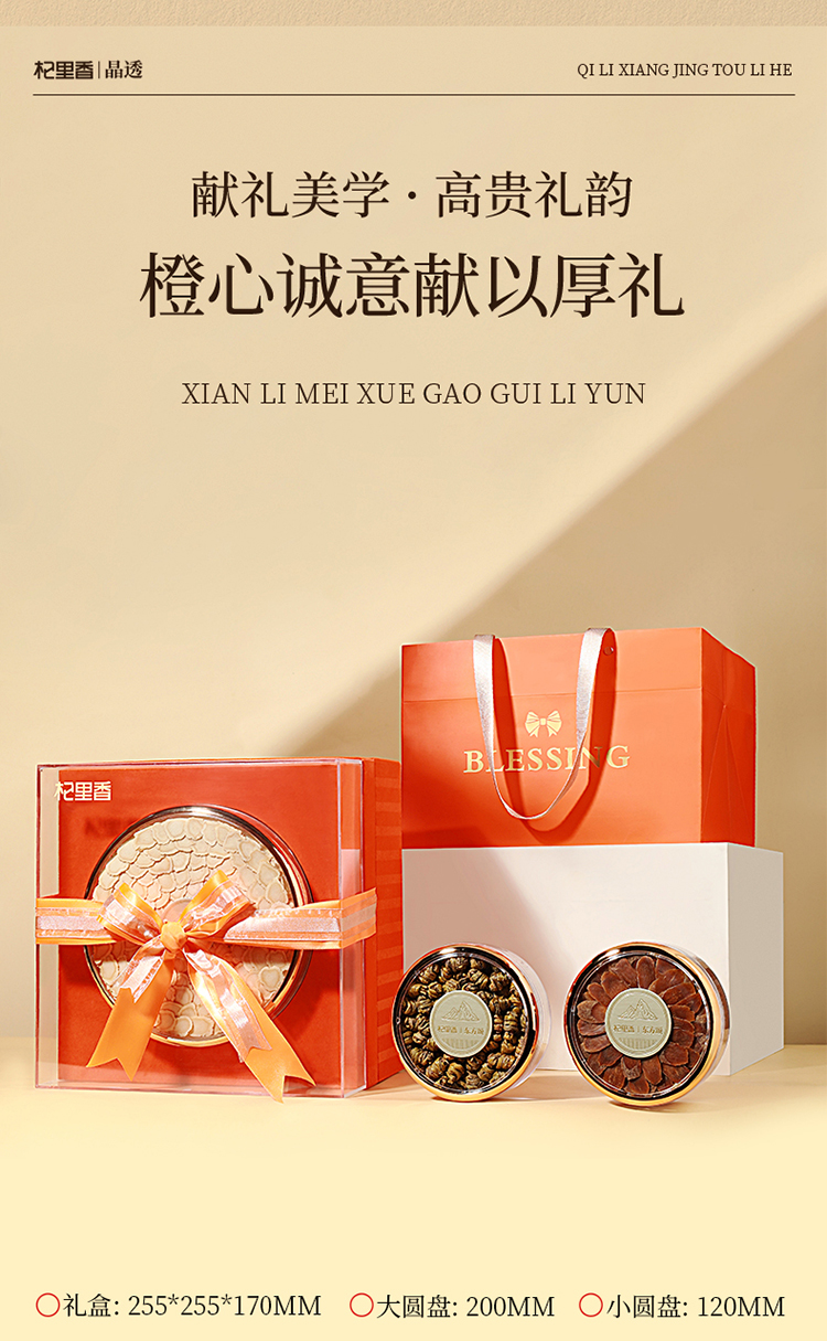 【冬季滋补】杞里香240g双层晶透橙色5拼礼盒-A西洋参80,石斛60g,红参40g,鹿茸10g,黑枸杞50g