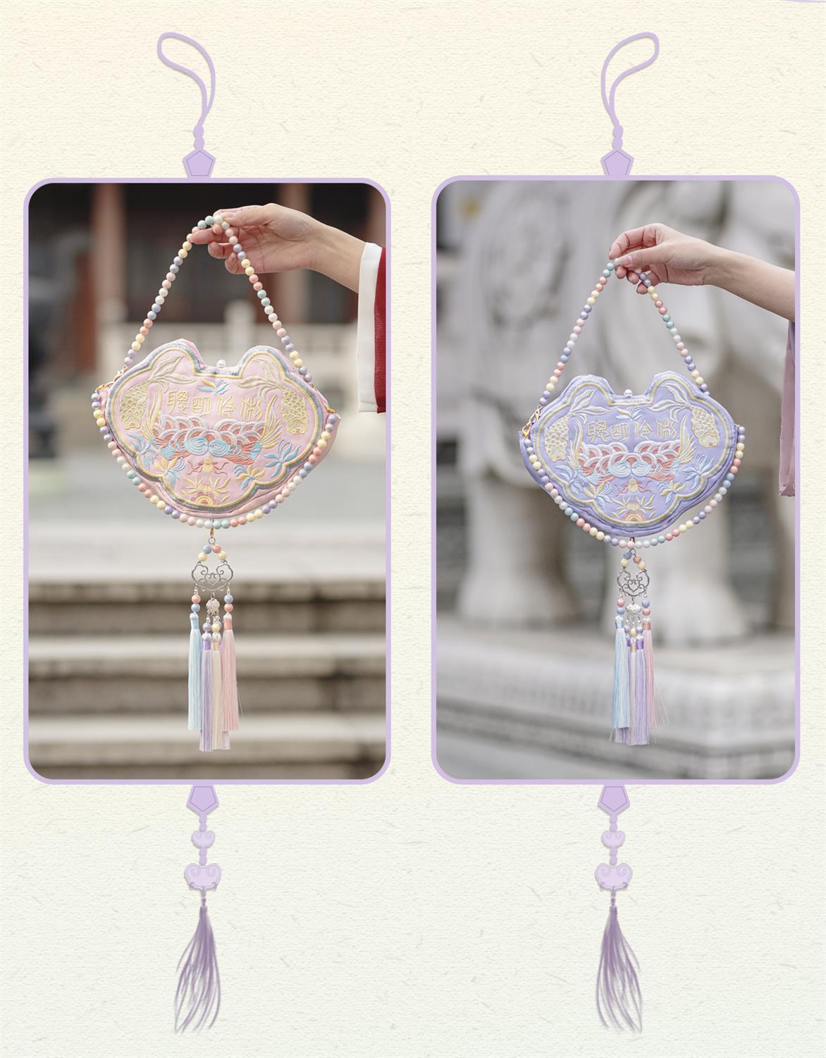 【聪明伶俐】原创中国风汉服包 双面刺绣斜跨手提 长命锁古风包包