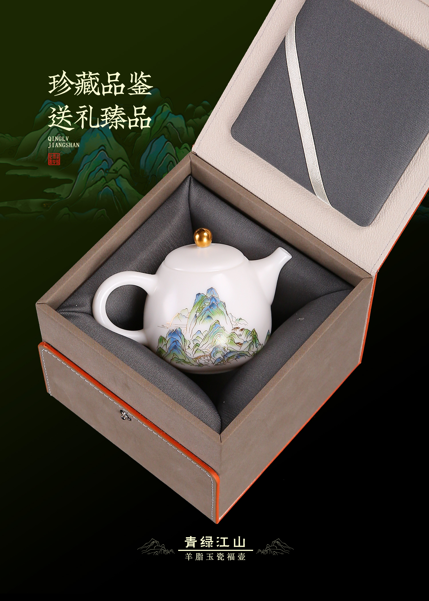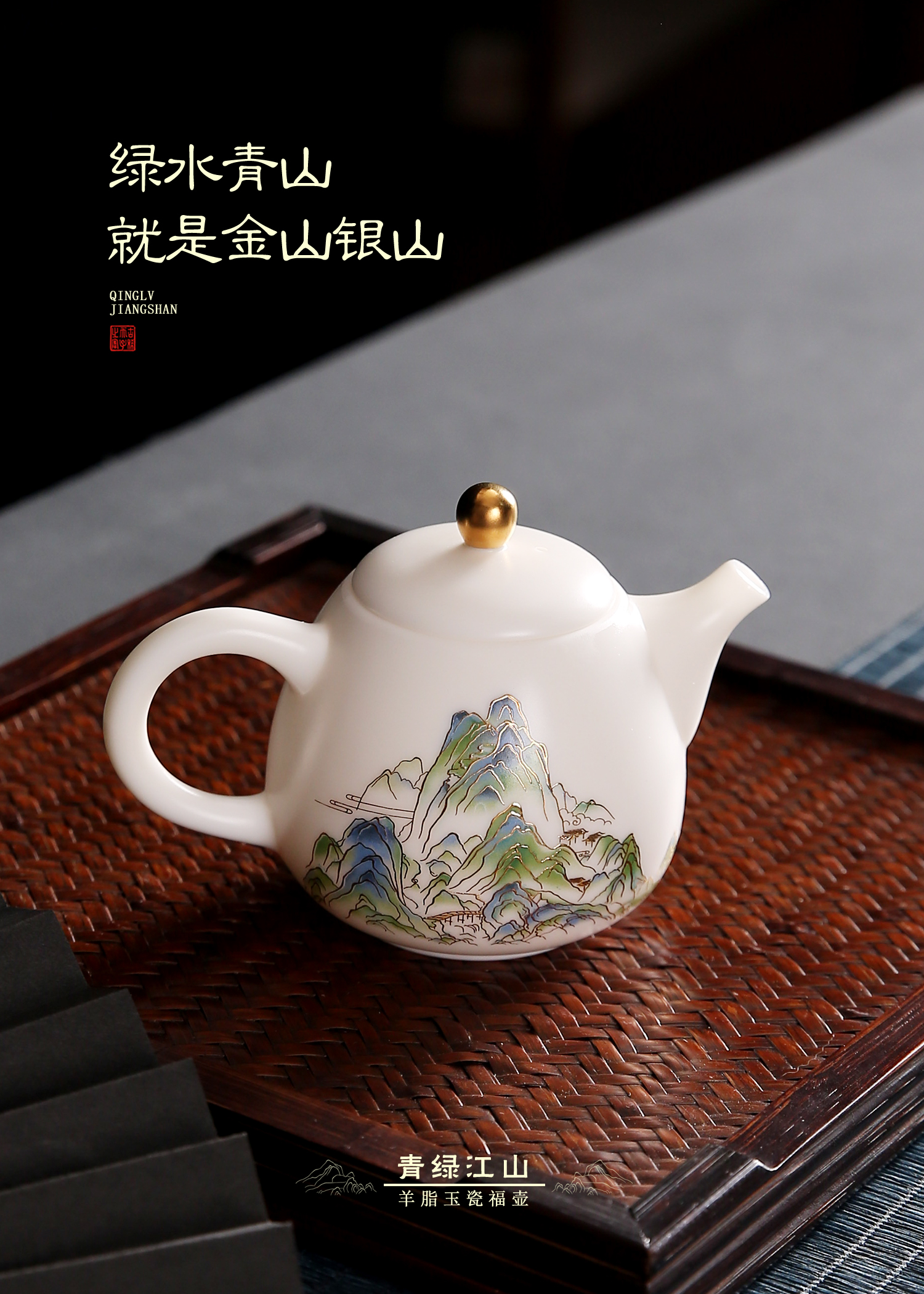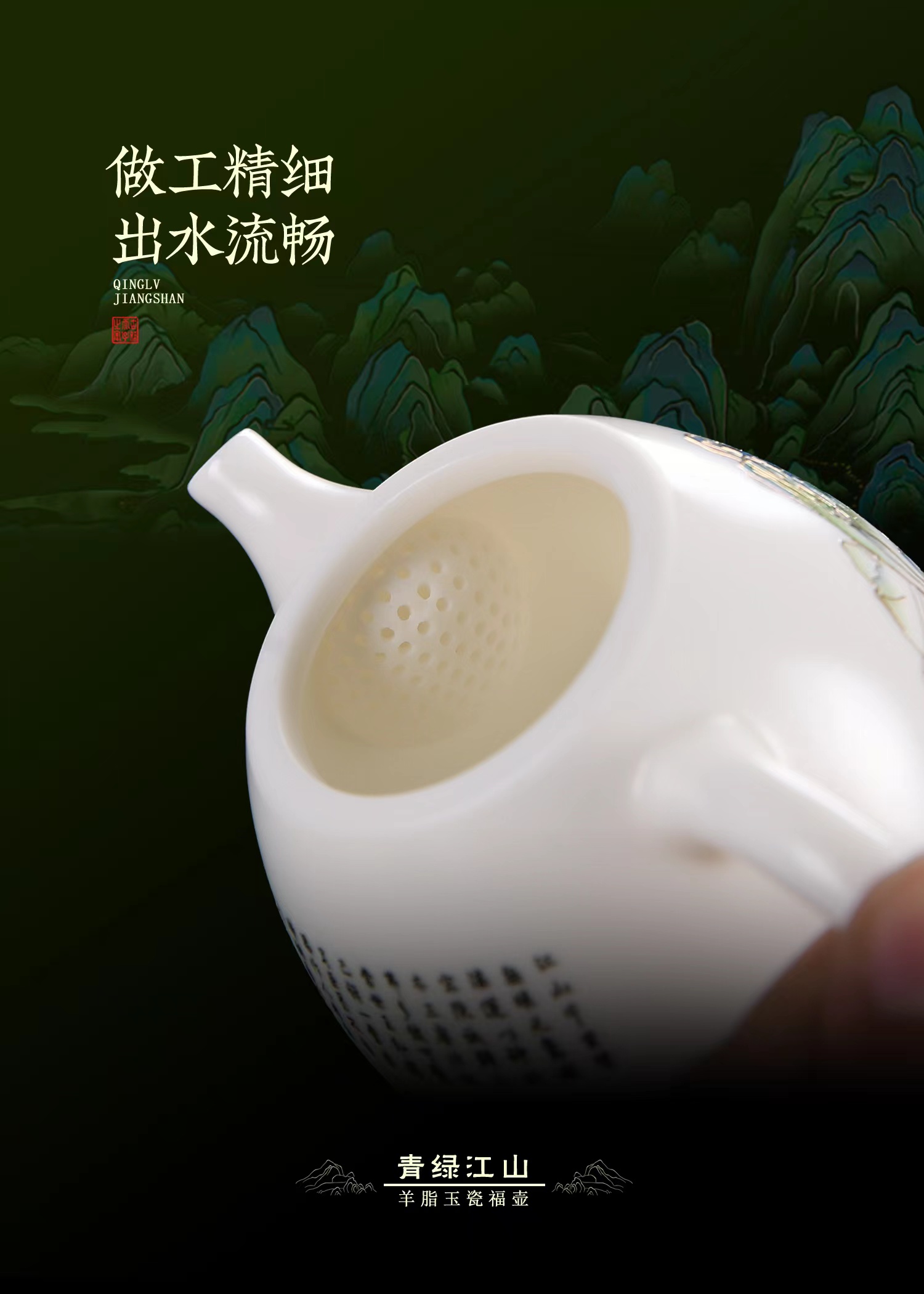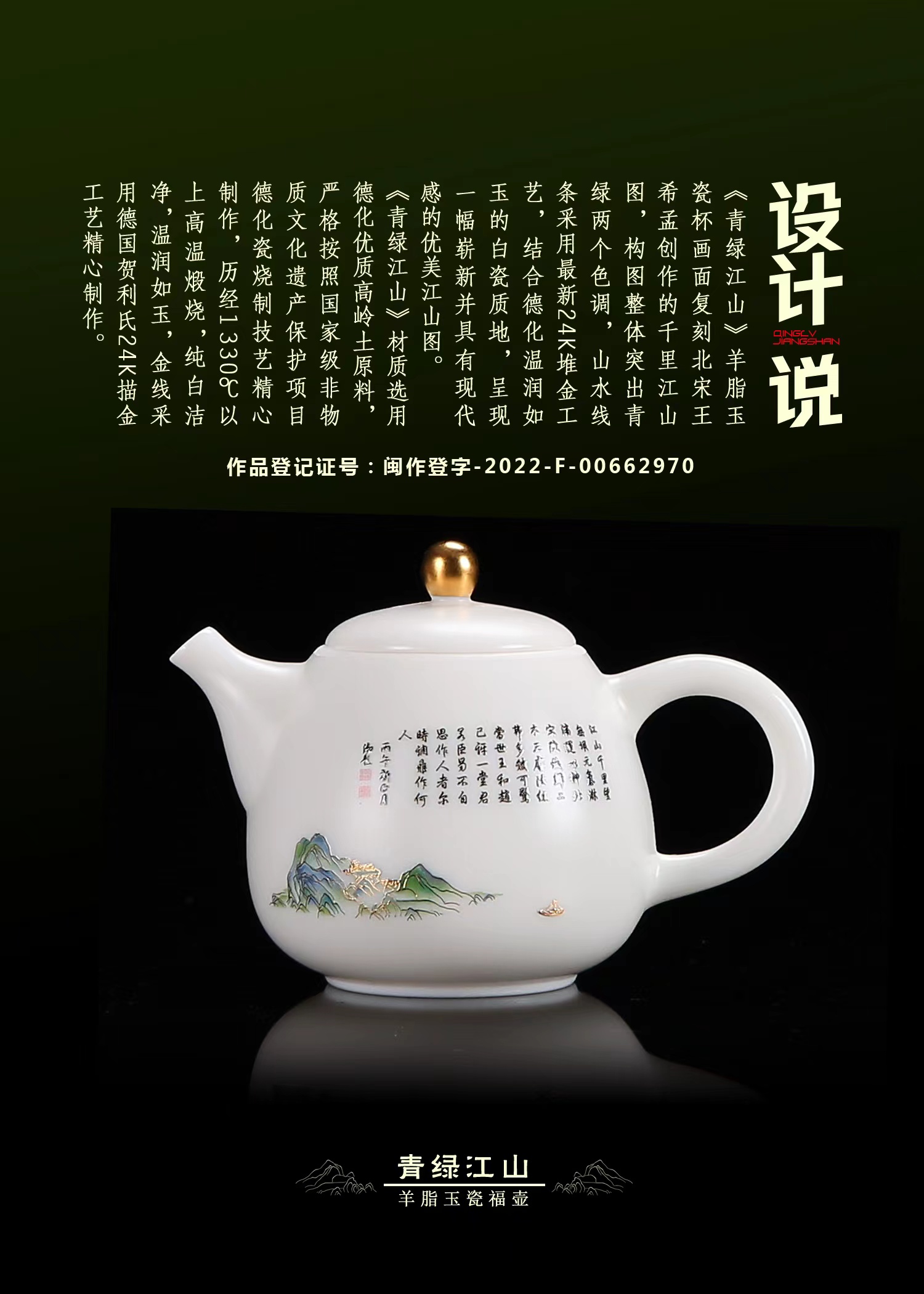 【只此青绿 也只有青绿】青绿江山茶壶、莲花杯、铃铛杯、禅定杯、圆融杯、水杯三件套,徐建勇老师签章,瓷质温润如玉 迎光透亮,浮雕堆金工艺 触感立体,珍藏品鉴 送礼臻品