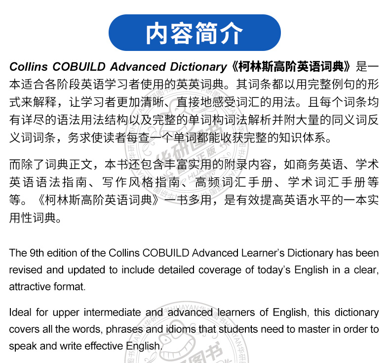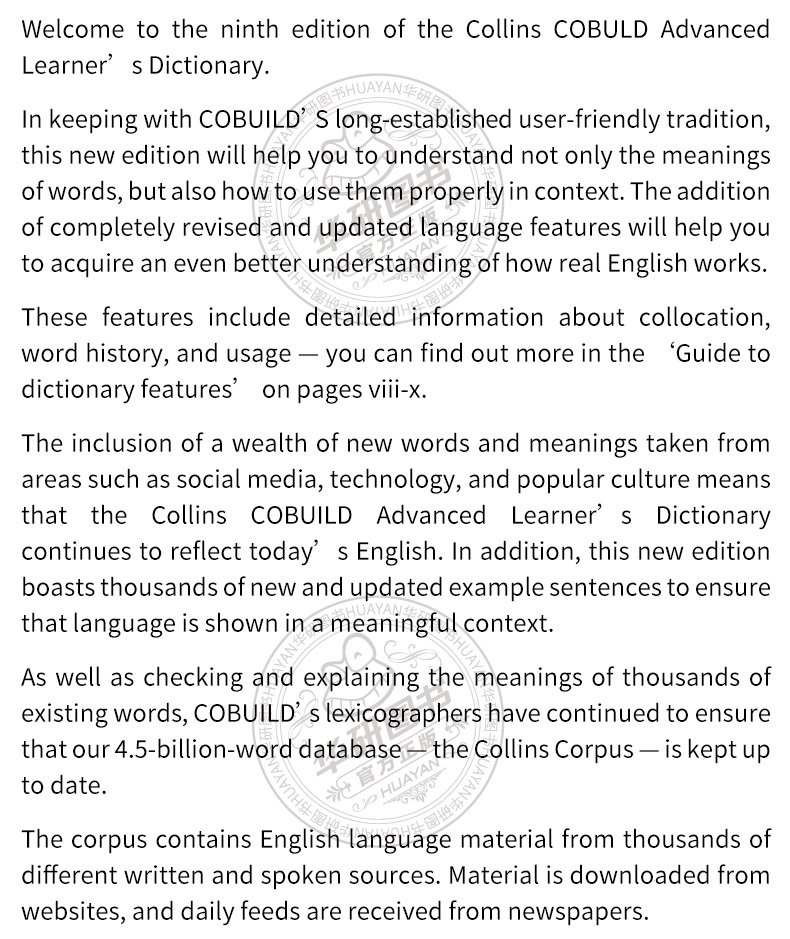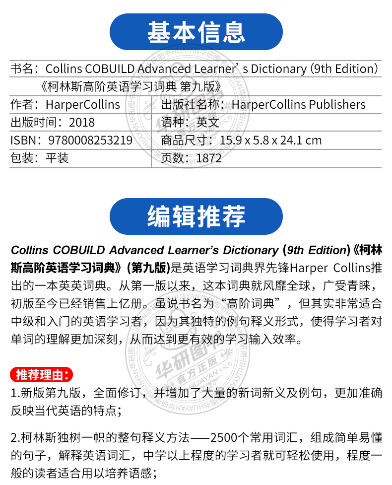 华研原版 柯林斯高阶英语词典英英字典 英文原版 Collins COBUILD Advanced Learner's Dictionary 进口词汇单词工具书 赠德语字典