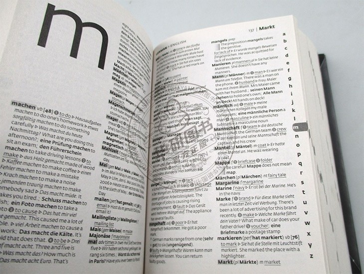 ·The clear layout and alphabet tabs down the side of each page lead the students to the information they need quickly and without fuss. All main translations are underlined to help users go straight to the answer they are looking for.