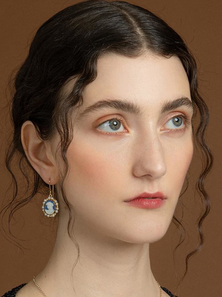 订购6周到|Vintouch-Lovelies-宝蓝美人像 环绕珍珠 浮雕 耳环[意大利设计师]