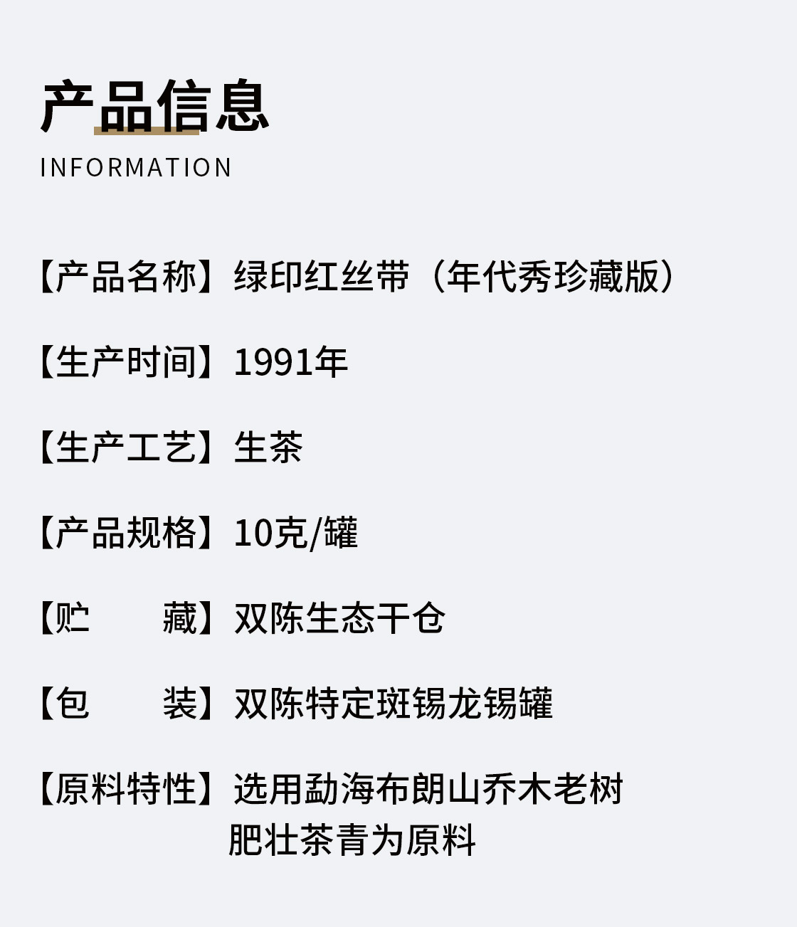 1991年绿印红丝带(年代秀珍藏版)生茶 10克/套