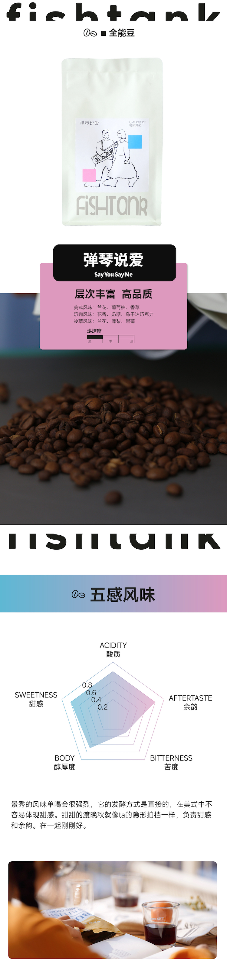 弹琴说爱 浅烘意式拼配咖啡豆