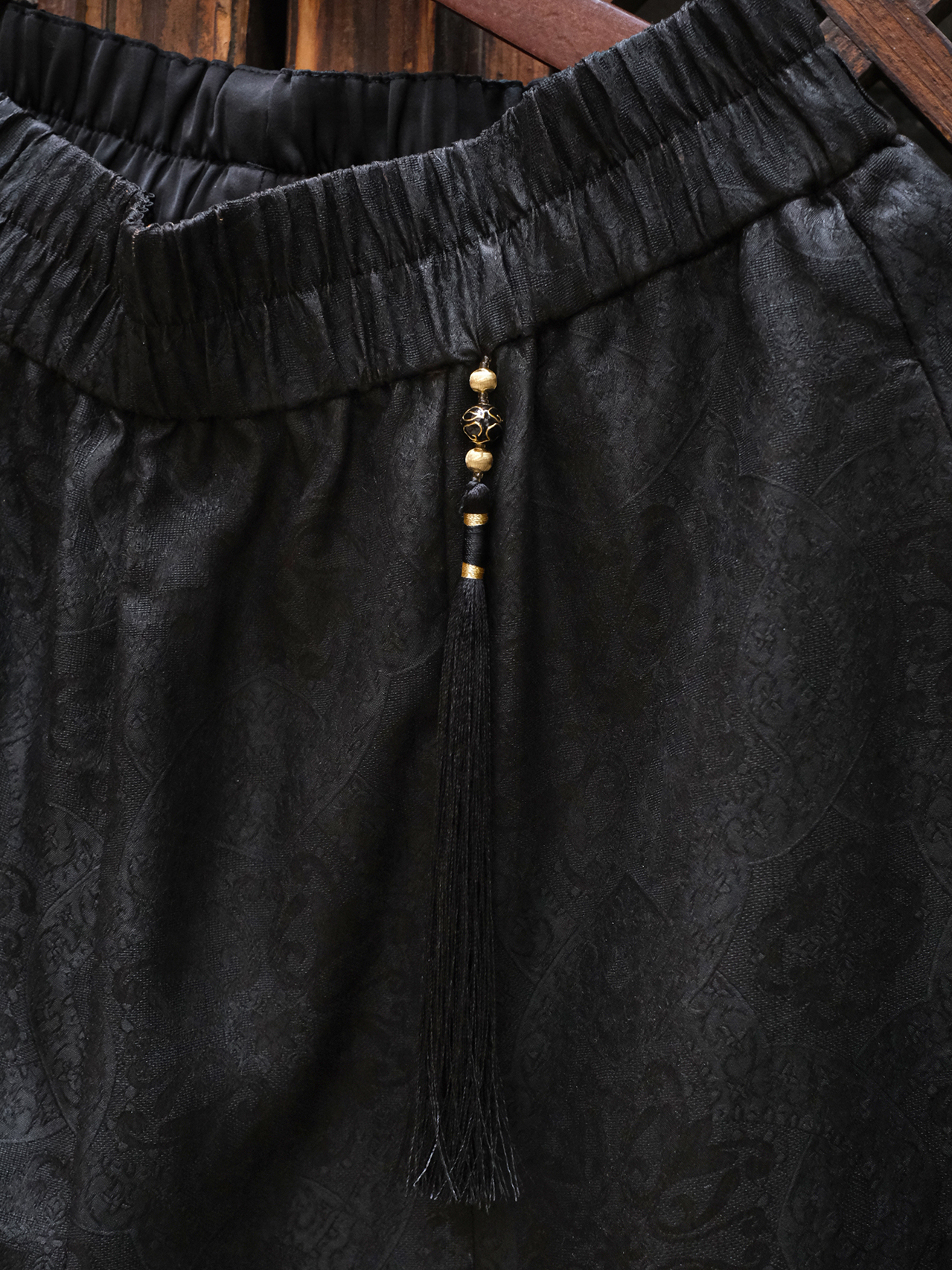 盛唐婧| 新中式香云纱花罗流苏阔腿裤
