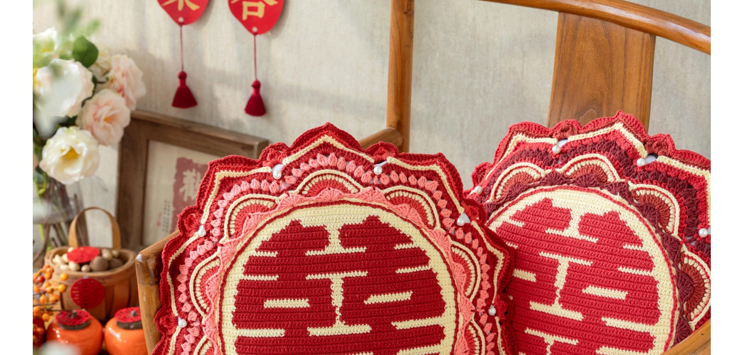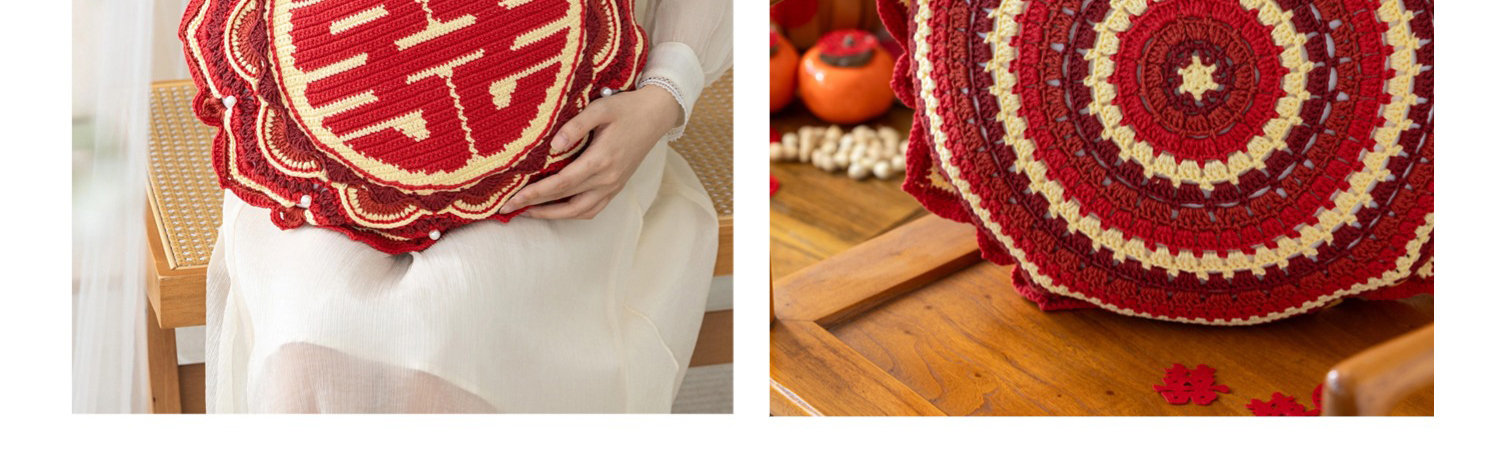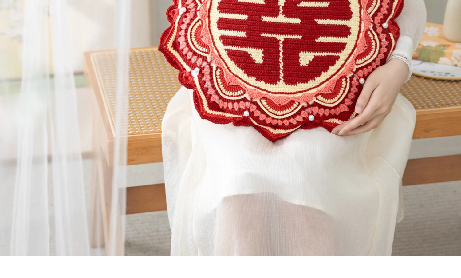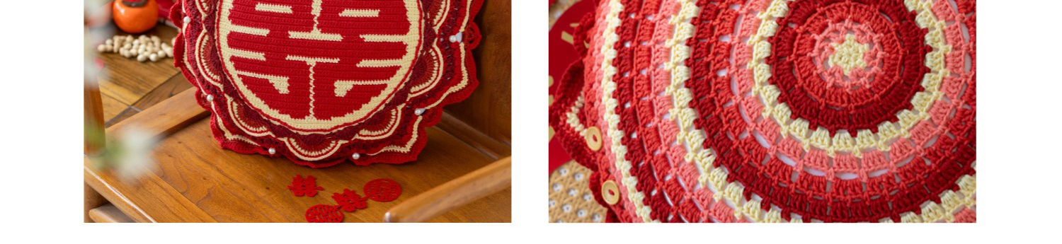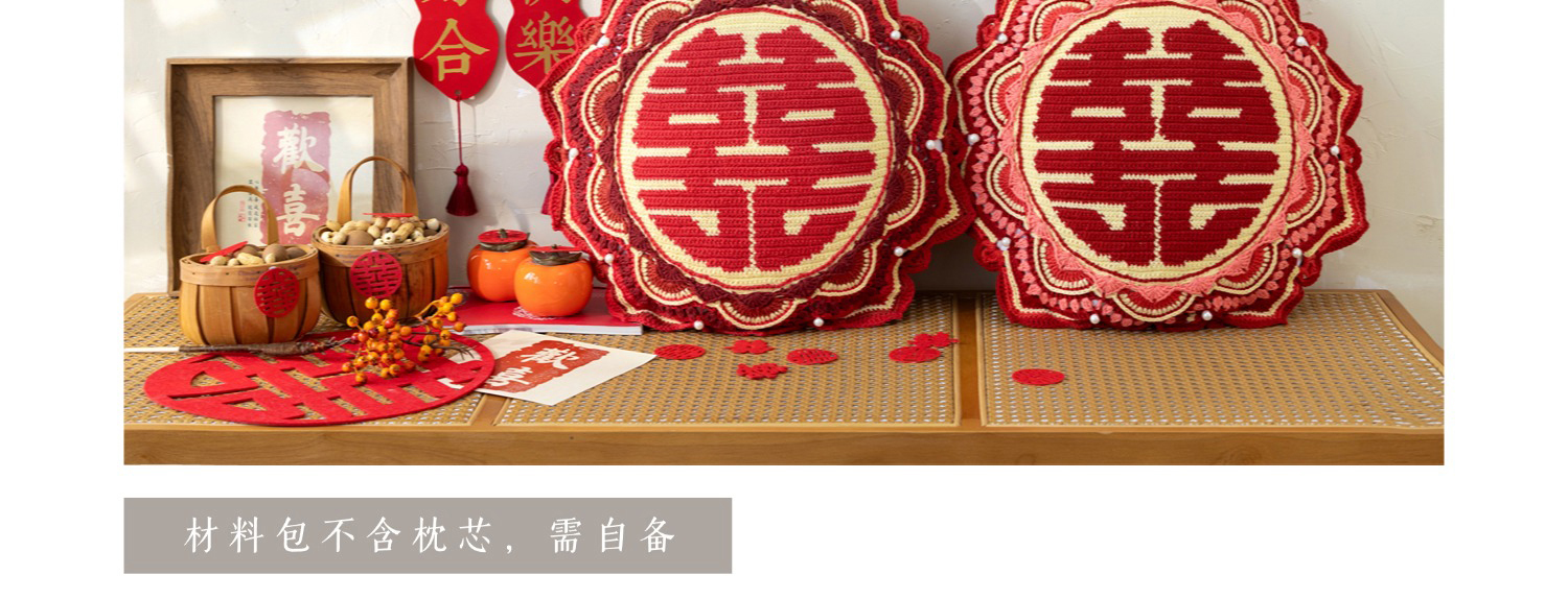 苏苏姐家金玉良缘囍字抱枕套手工DIY钩针4股棉毛线团自制材料包