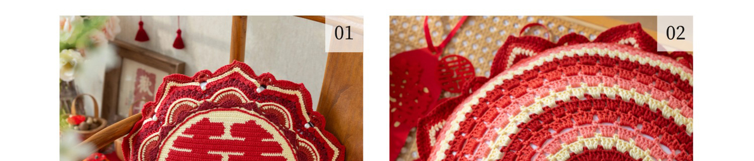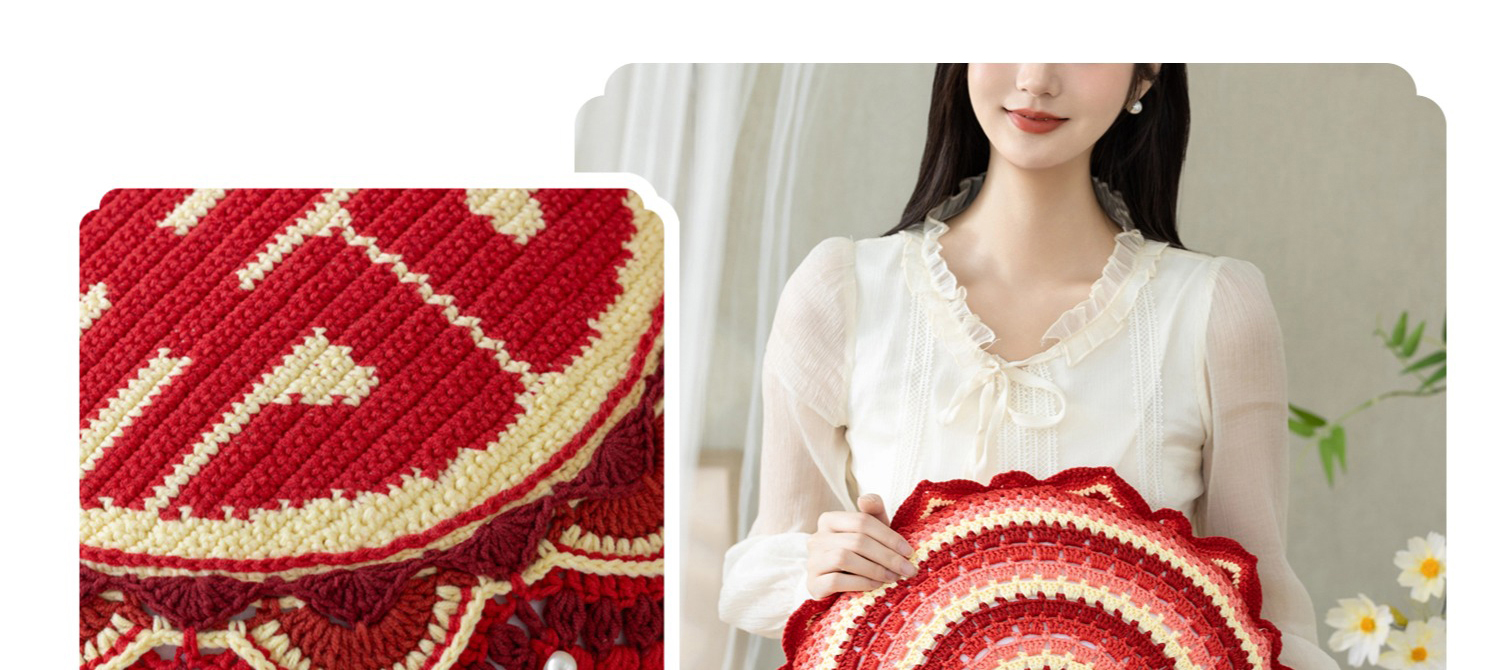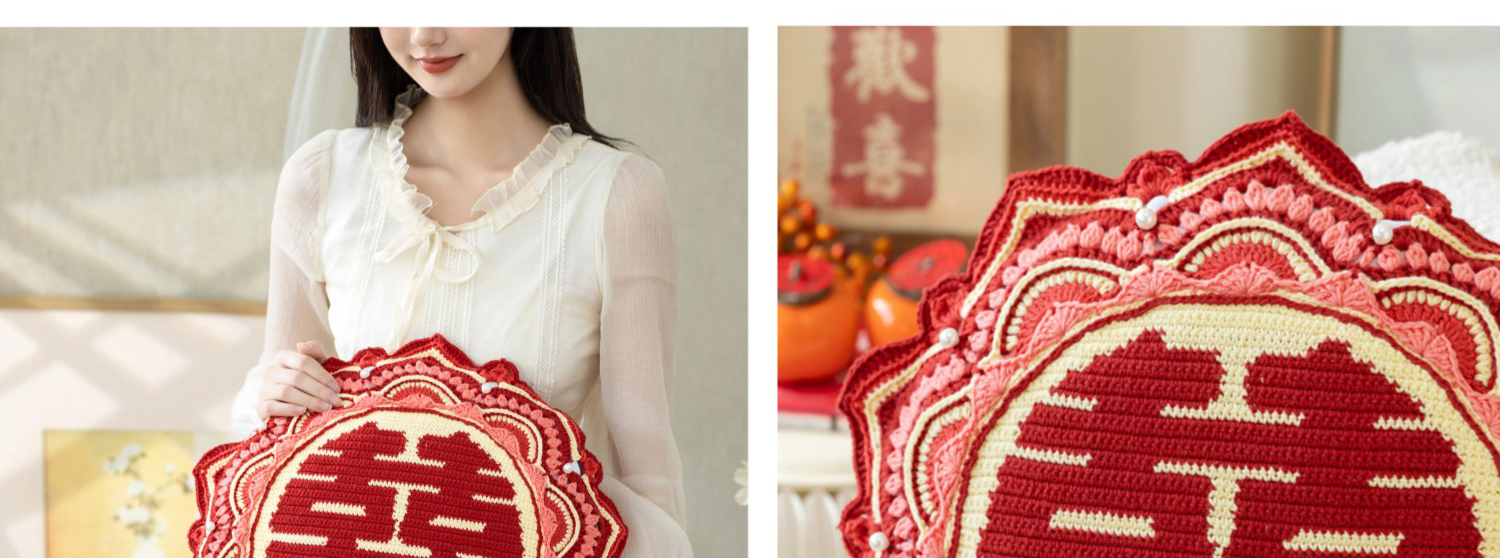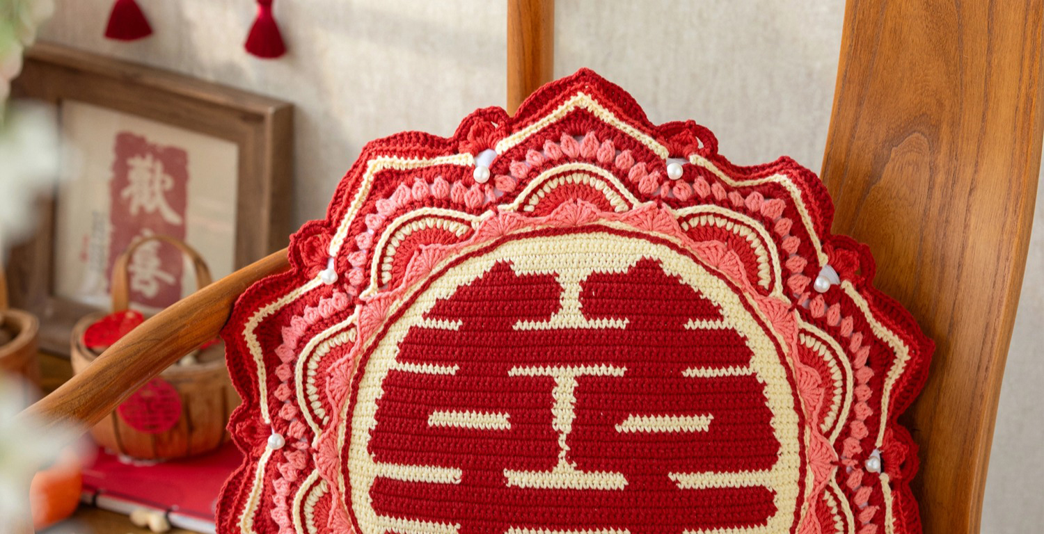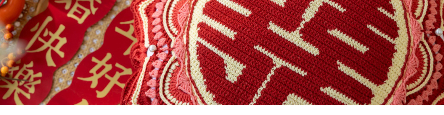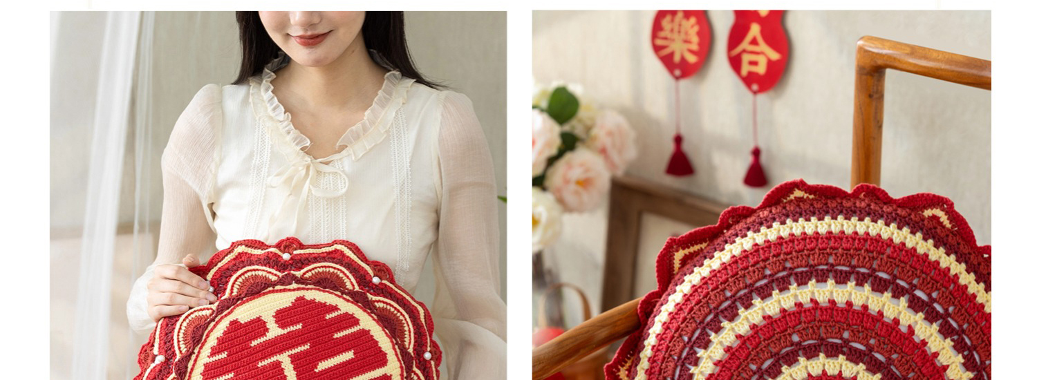 苏苏姐家金玉良缘囍字抱枕套手工DIY钩针4股棉毛线团自制材料包
