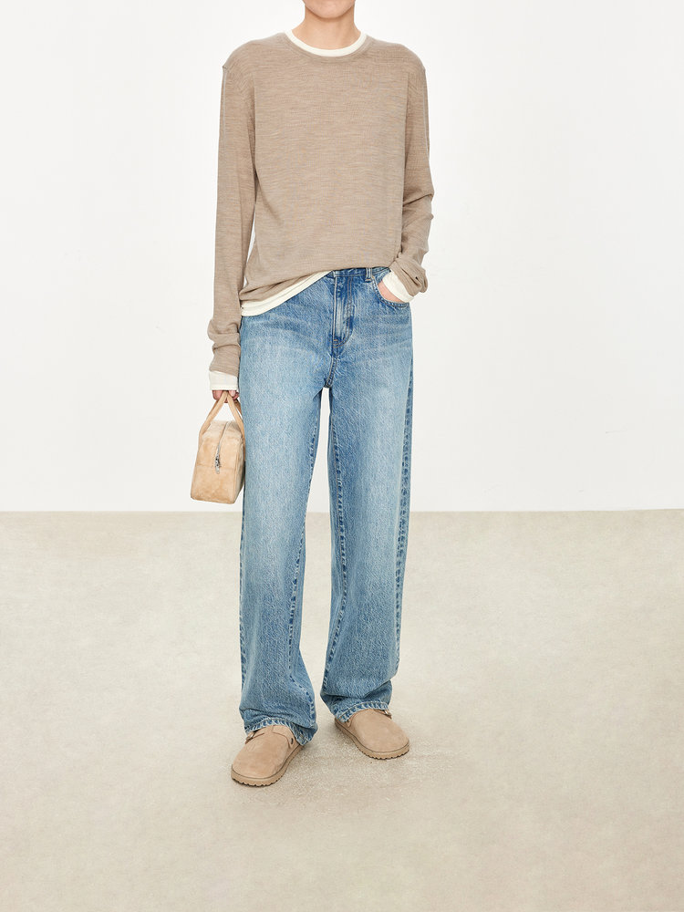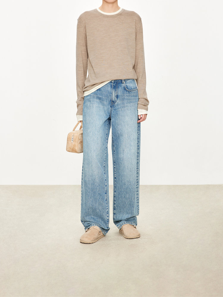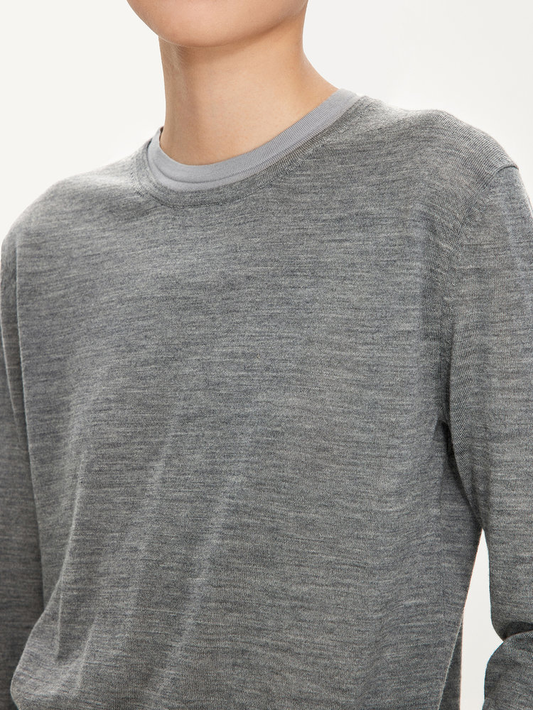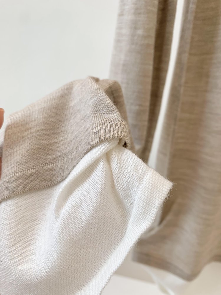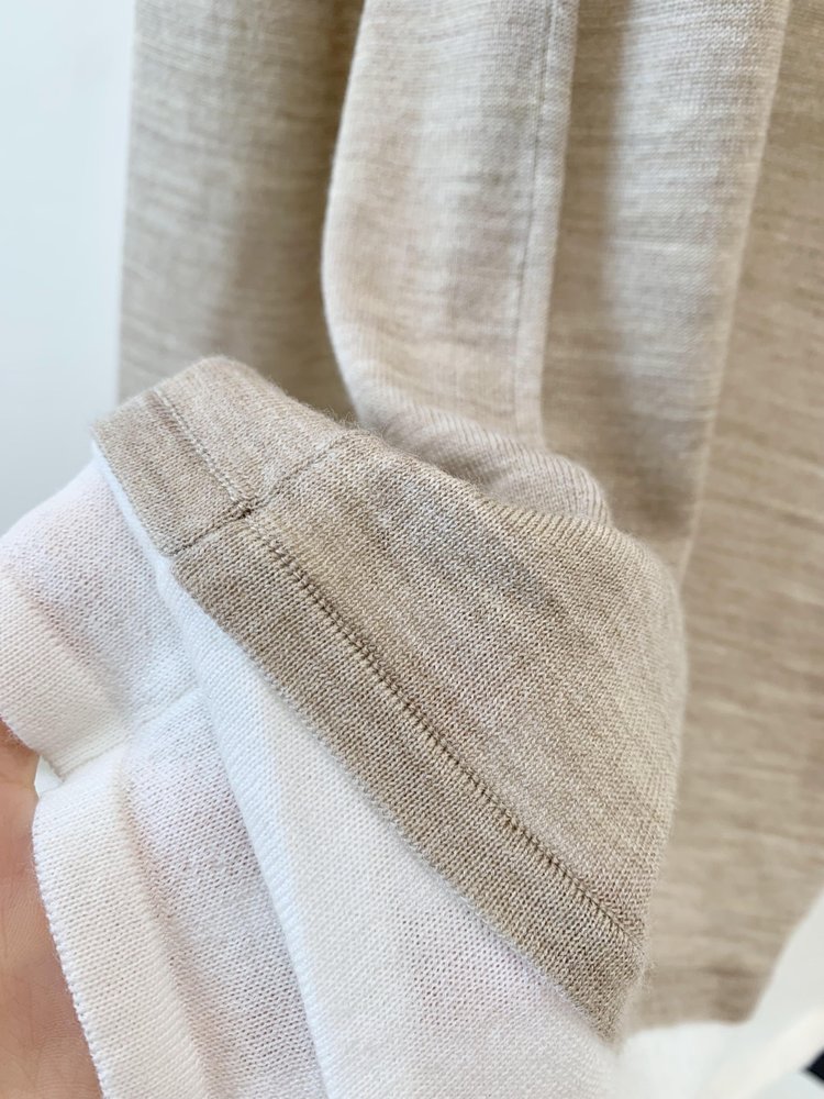 经典版假两件长袖,下摆拼色边偏长,下摆包边+卷边双层织法,外露随性时髦,经过立体高密的织法织造,成衣既拥有挺廓骨感的外观,又能体会无与伦比的亲肤触感,打造集紧实、柔软、有型于一身的高级显瘦廓形。