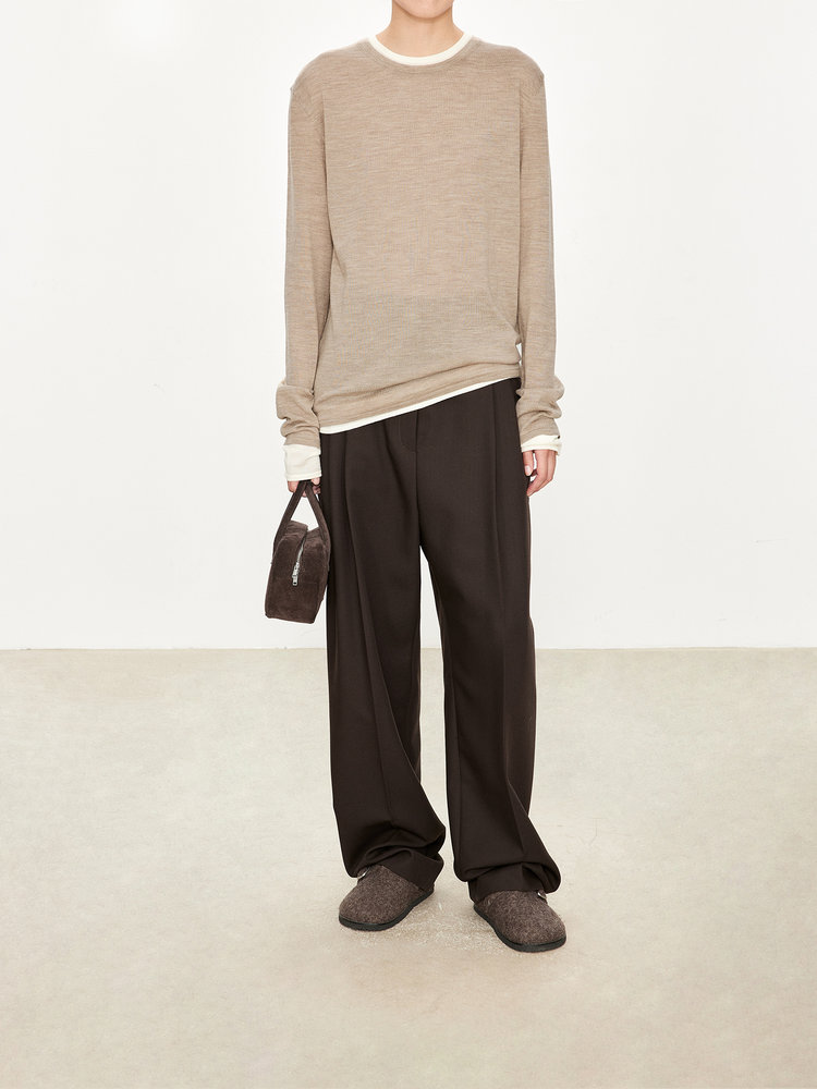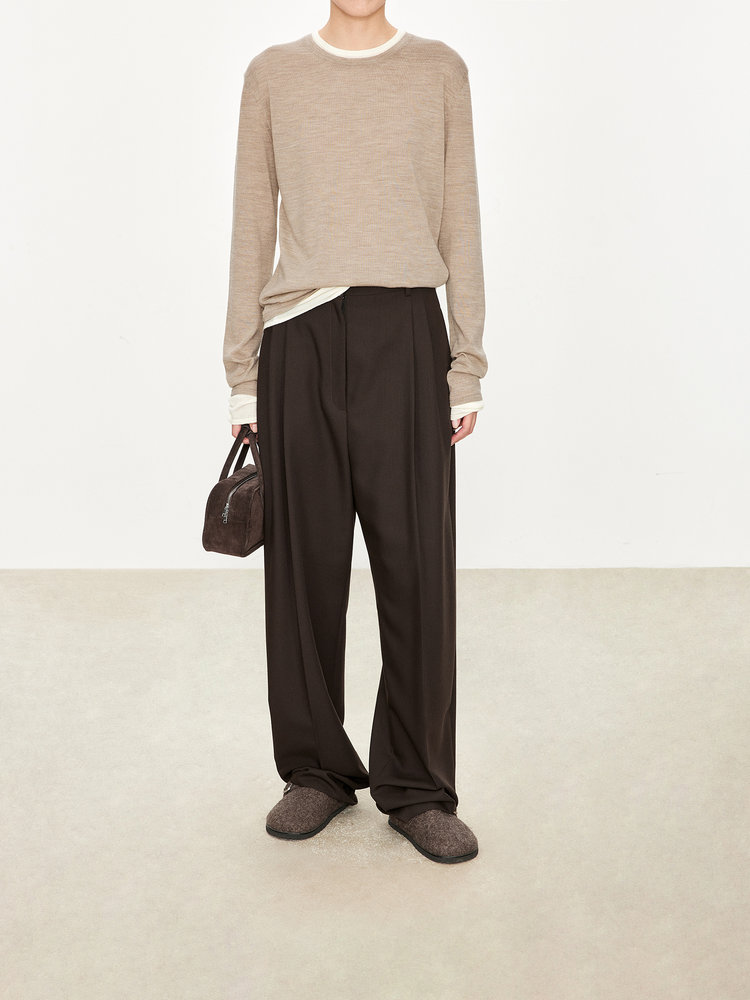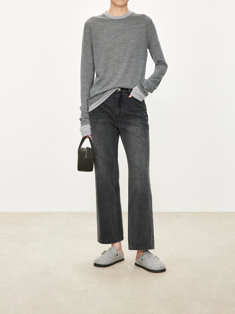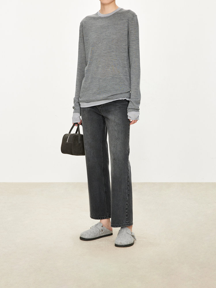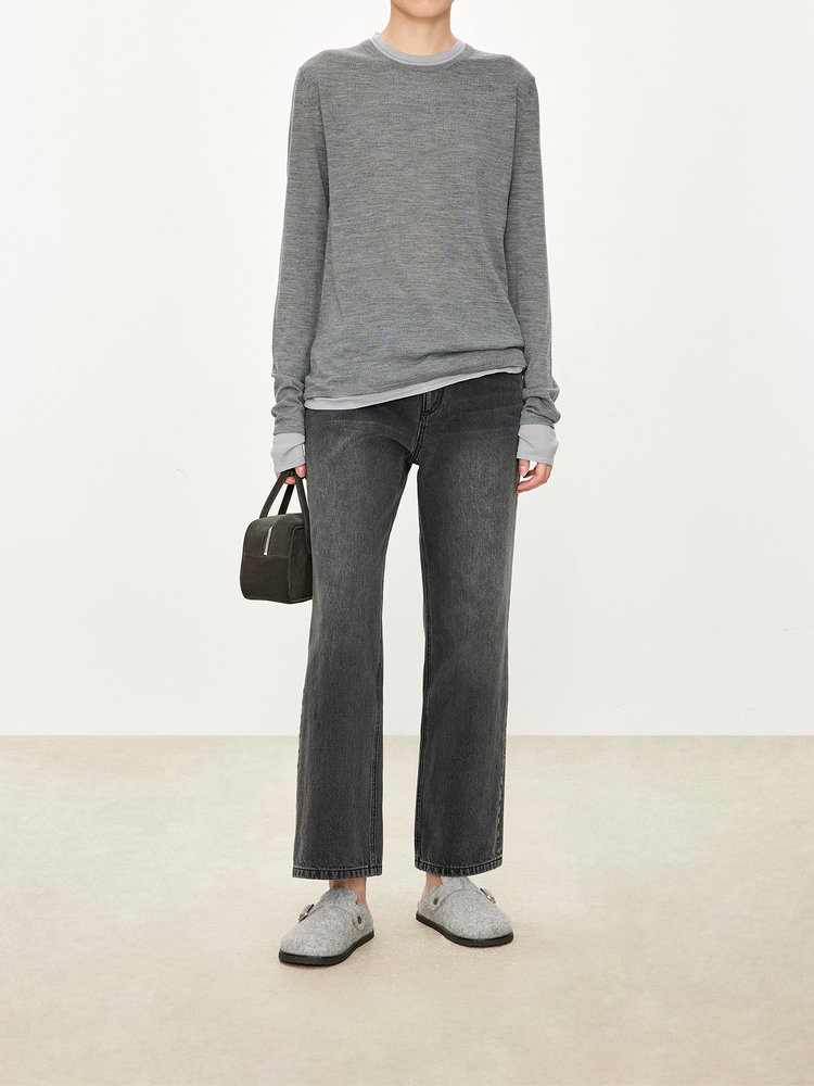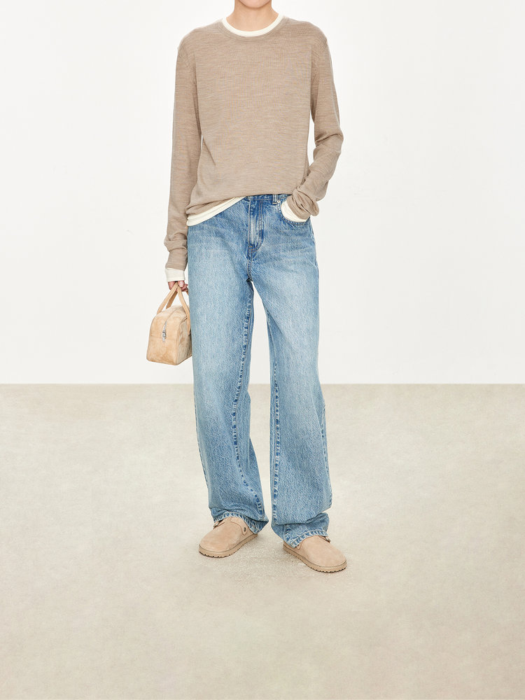 经典版假两件长袖,下摆拼色边偏长,下摆包边+卷边双层织法,外露随性时髦,经过立体高密的织法织造,成衣既拥有挺廓骨感的外观,又能体会无与伦比的亲肤触感,打造集紧实、柔软、有型于一身的高级显瘦廓形。