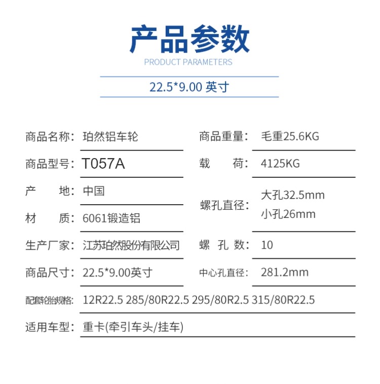 珀然 锻造铝圈 车轮 22.5x9.0【包邮】