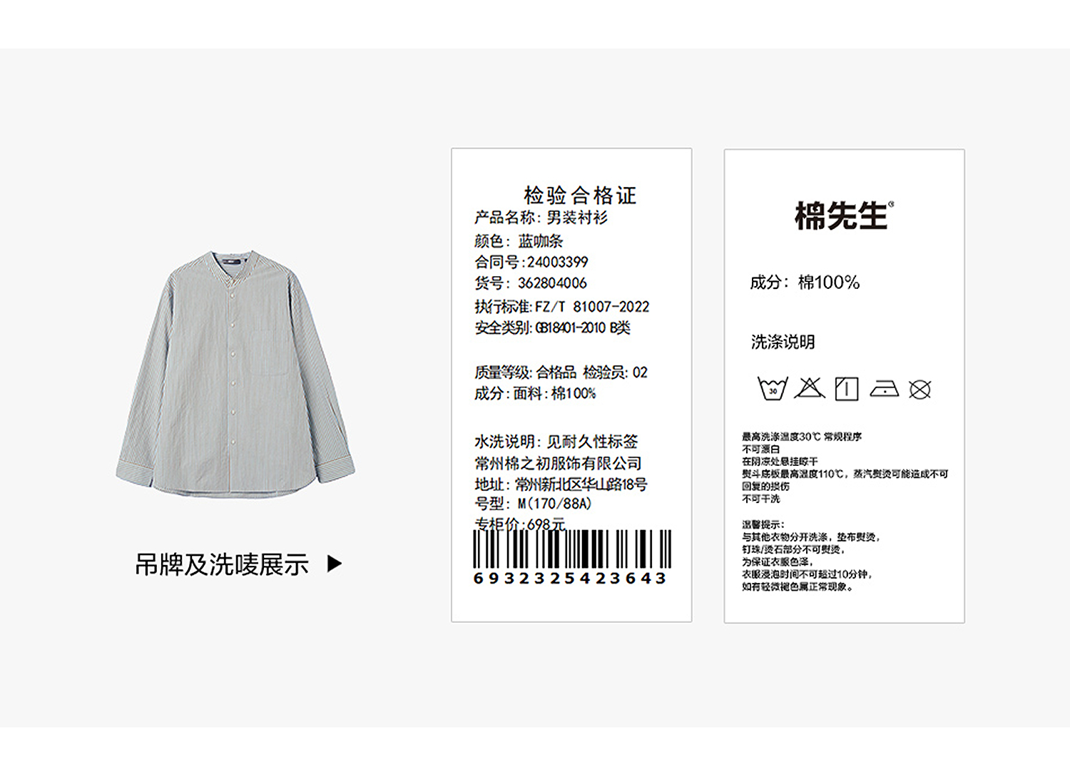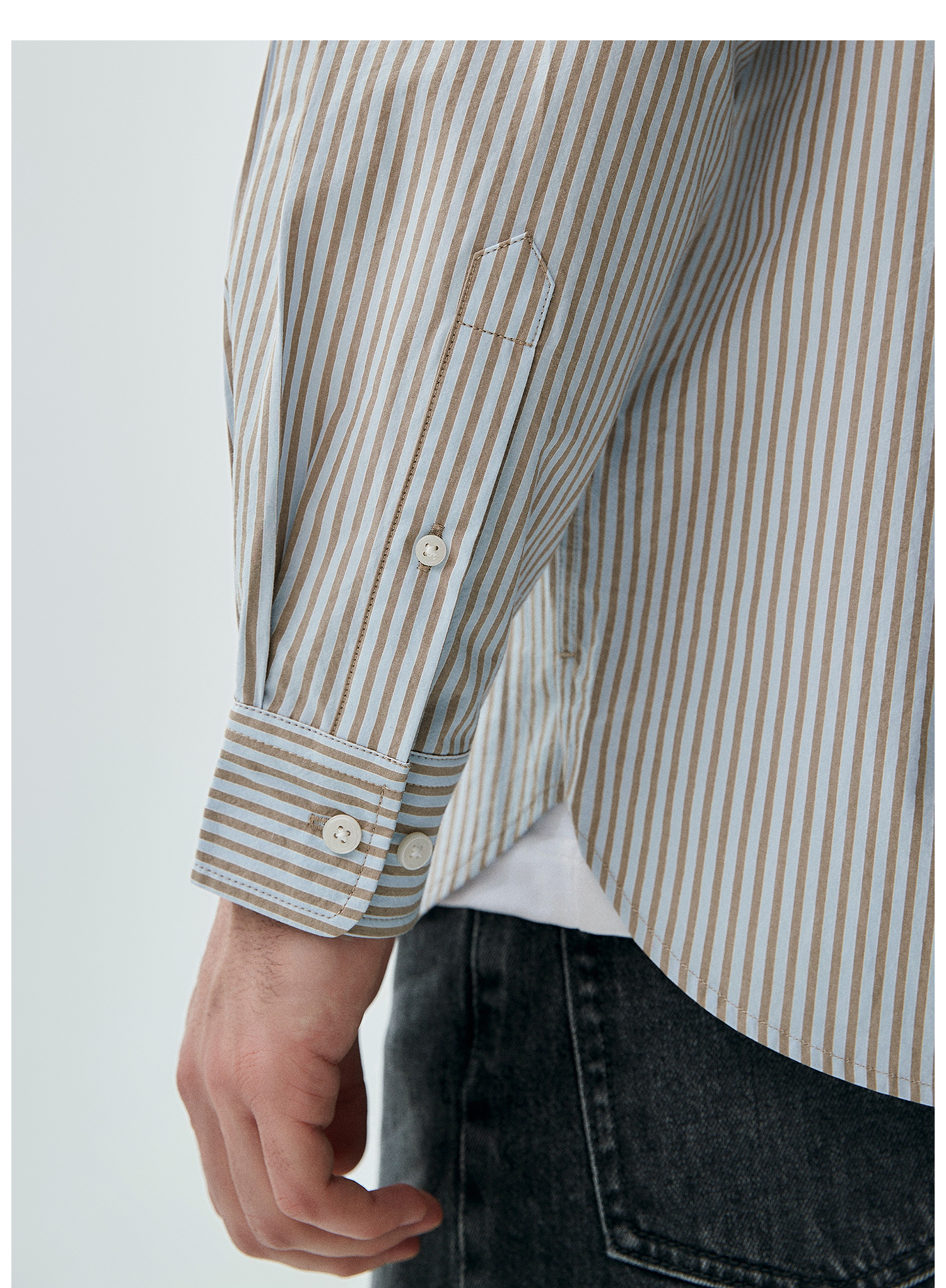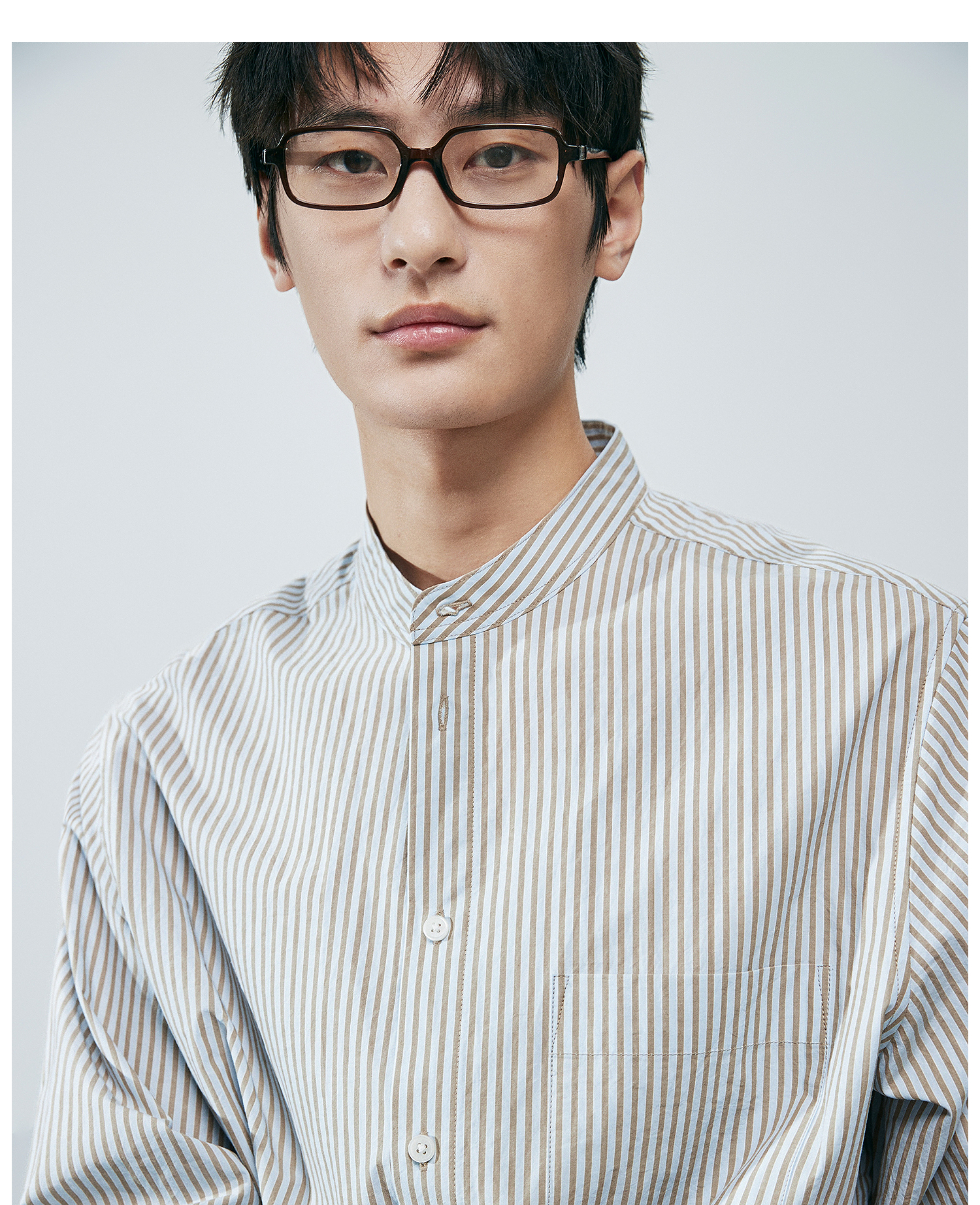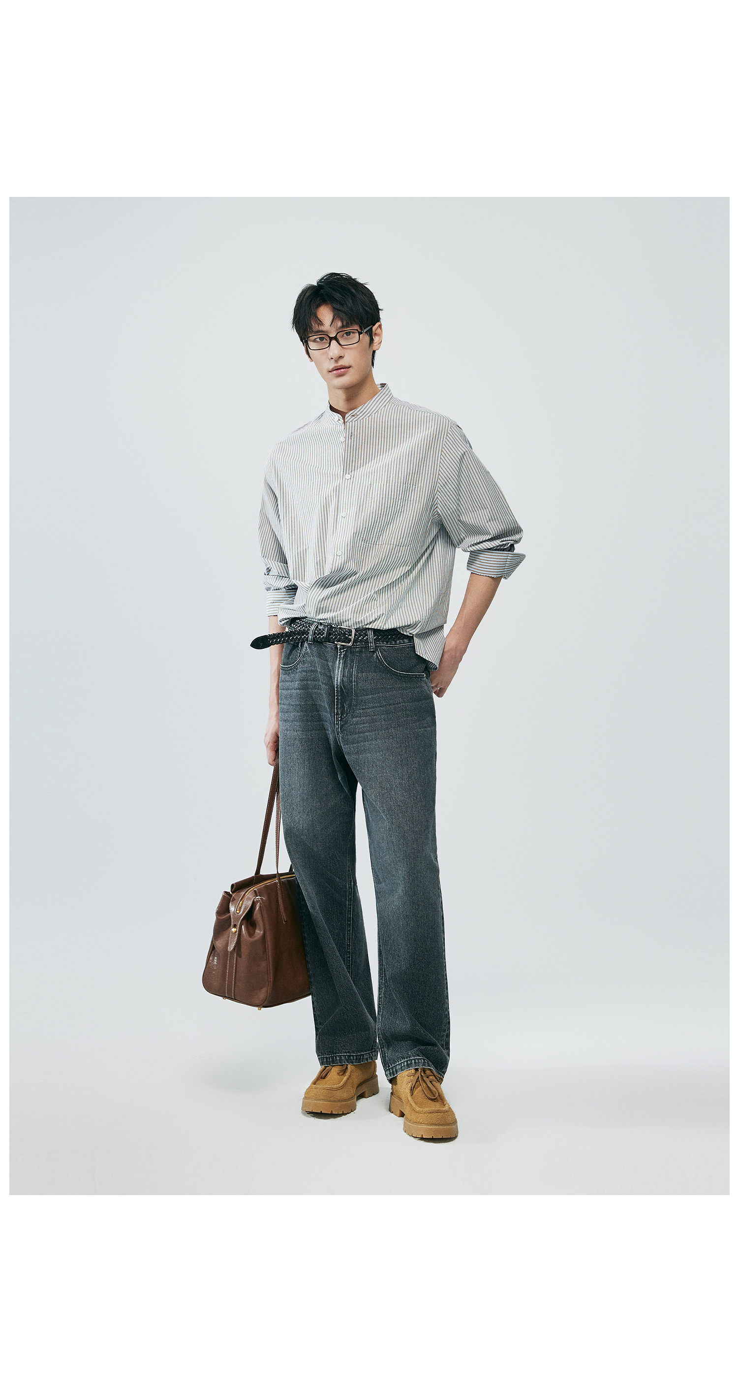棉仓362804006-微宽松全棉砂洗条纹立领长袖衬衫
