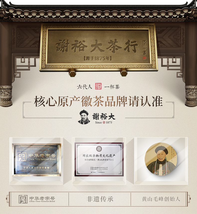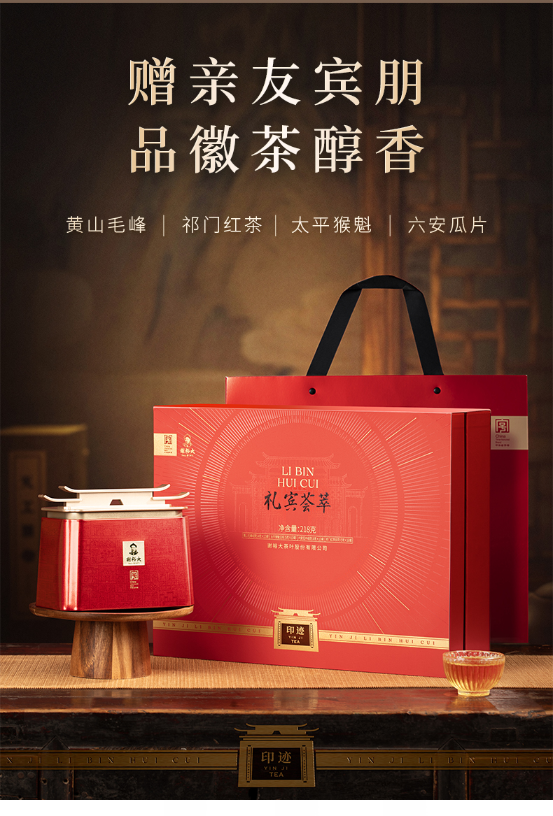 谢裕大荟萃茶叶礼盒218g黄山毛峰太平猴魁祁门红茶六安瓜片组合装