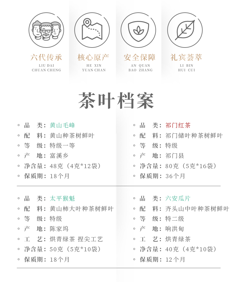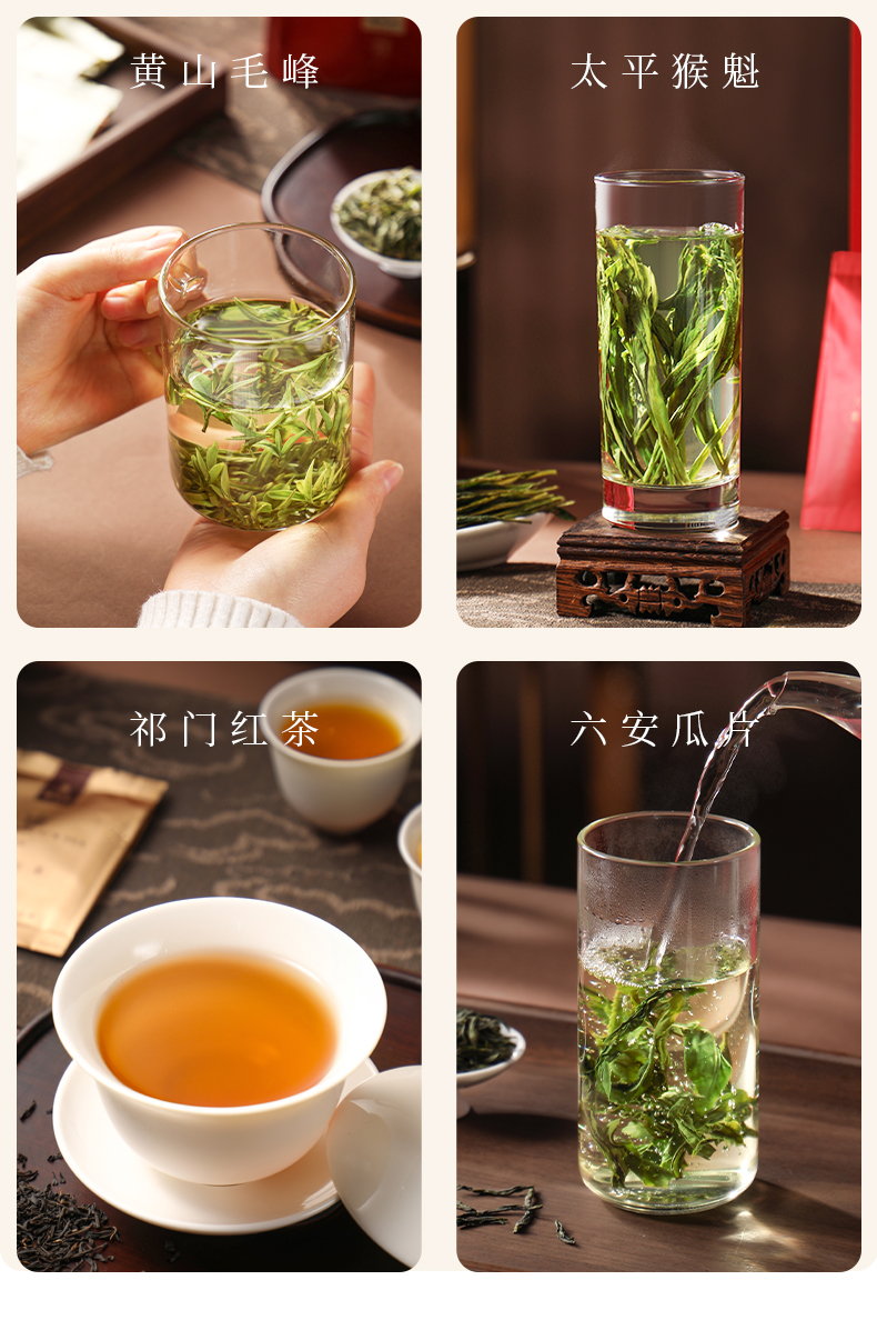 谢裕大礼宾荟萃茶叶礼盒218g黄山毛峰太平猴魁祁门红茶六安瓜片组合装