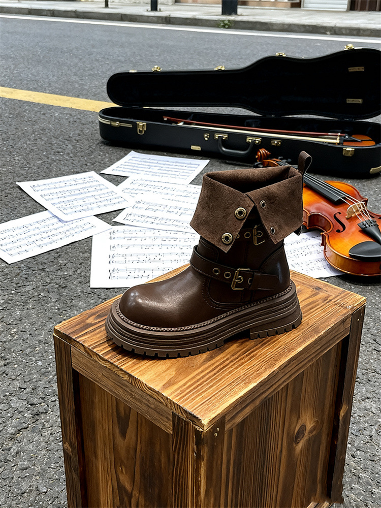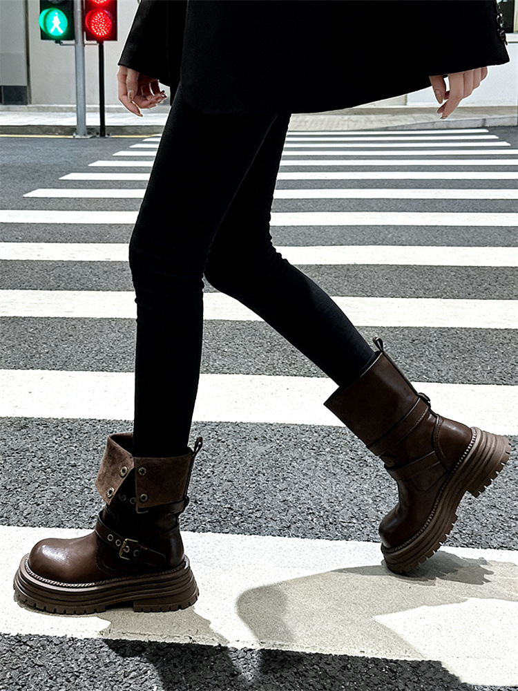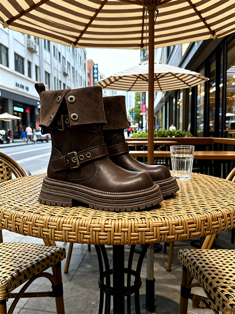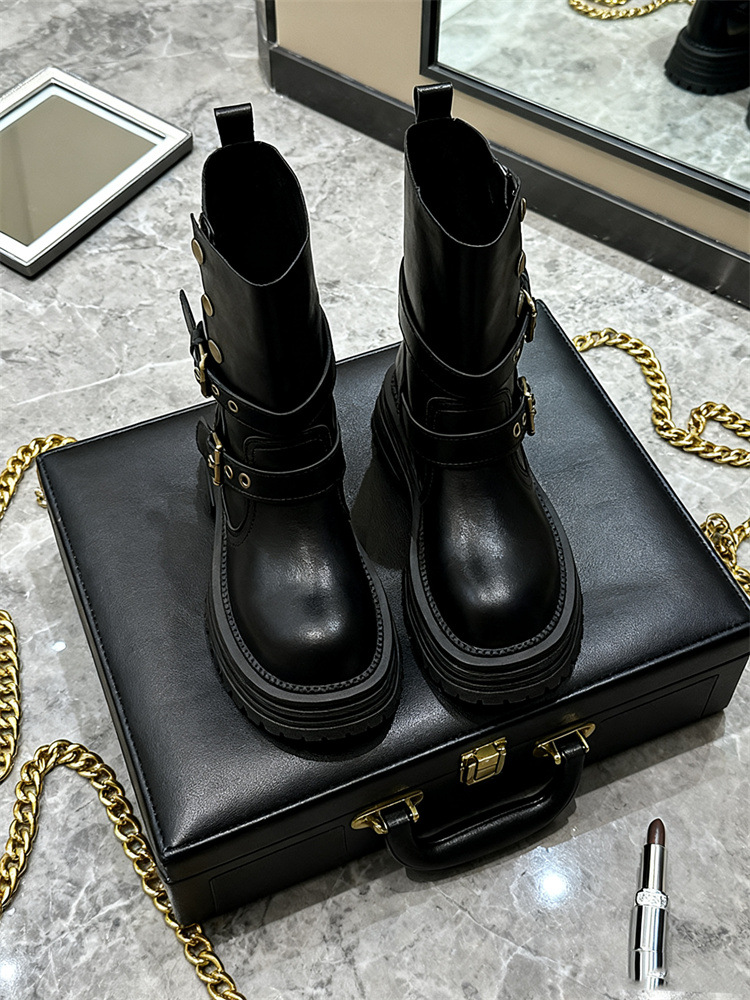【美拉德❗️复古马丁靴】一鞋两穿,各种穿搭都能驾驭,皮面细腻柔软舒适,修饰腿型弧度曲线自然,2025新款秋英伦风马丁靴厚底黑色短靴女款QQ