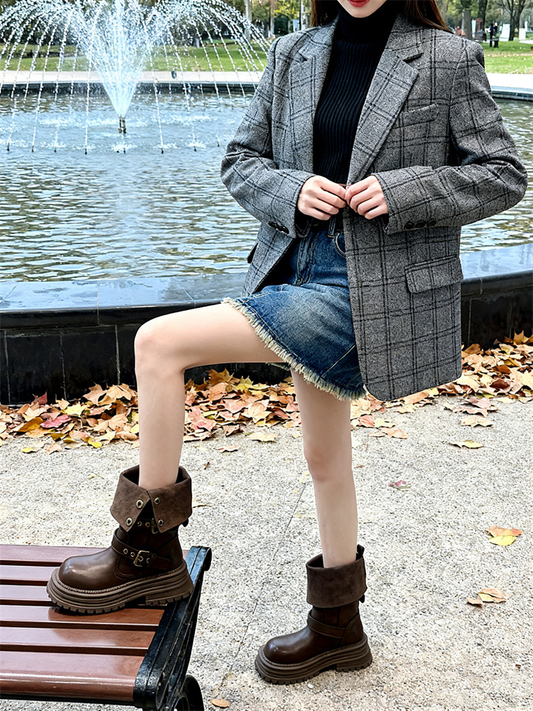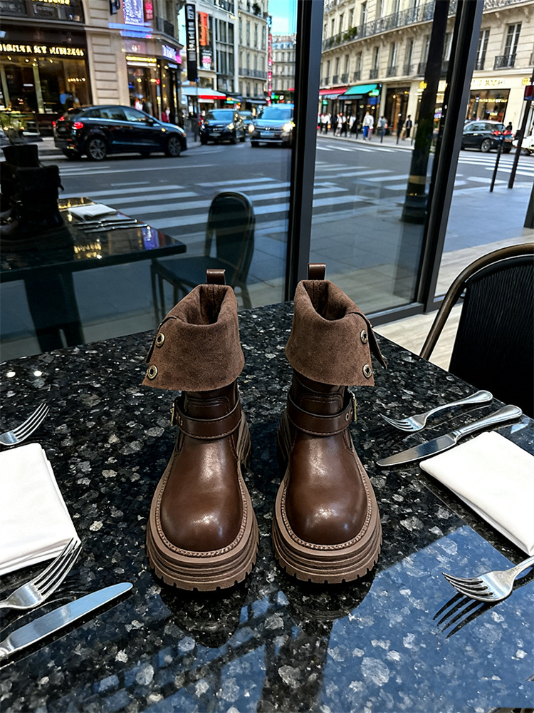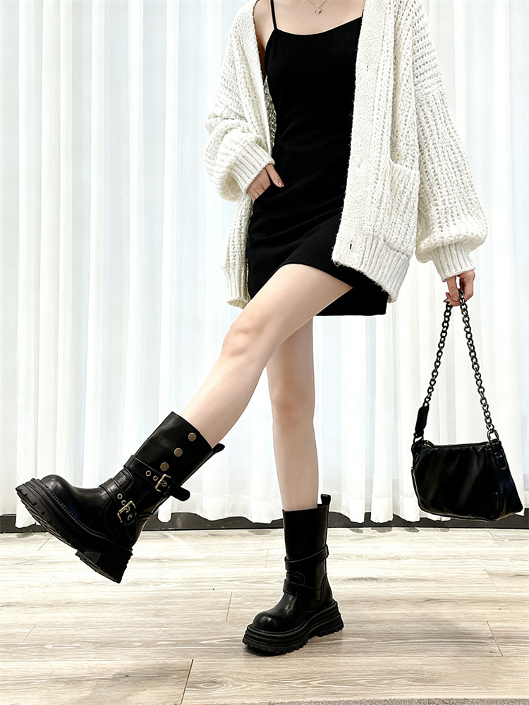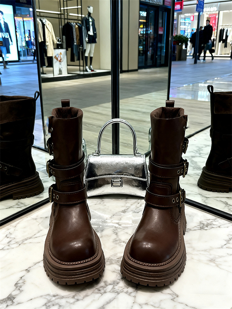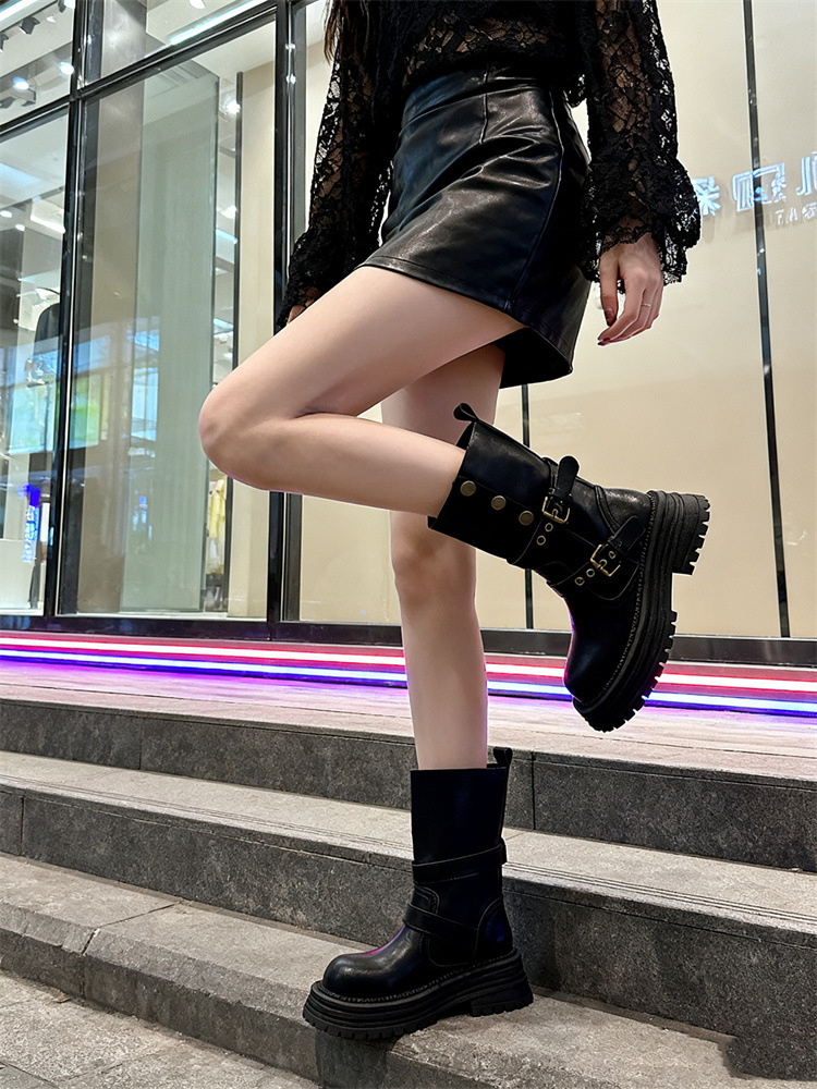 【美拉德❗️复古马丁靴】一鞋两穿,各种穿搭都能驾驭,皮面细腻柔软舒适,修饰腿型弧度曲线自然,2025新款秋英伦风马丁靴厚底黑色短靴女款QQ