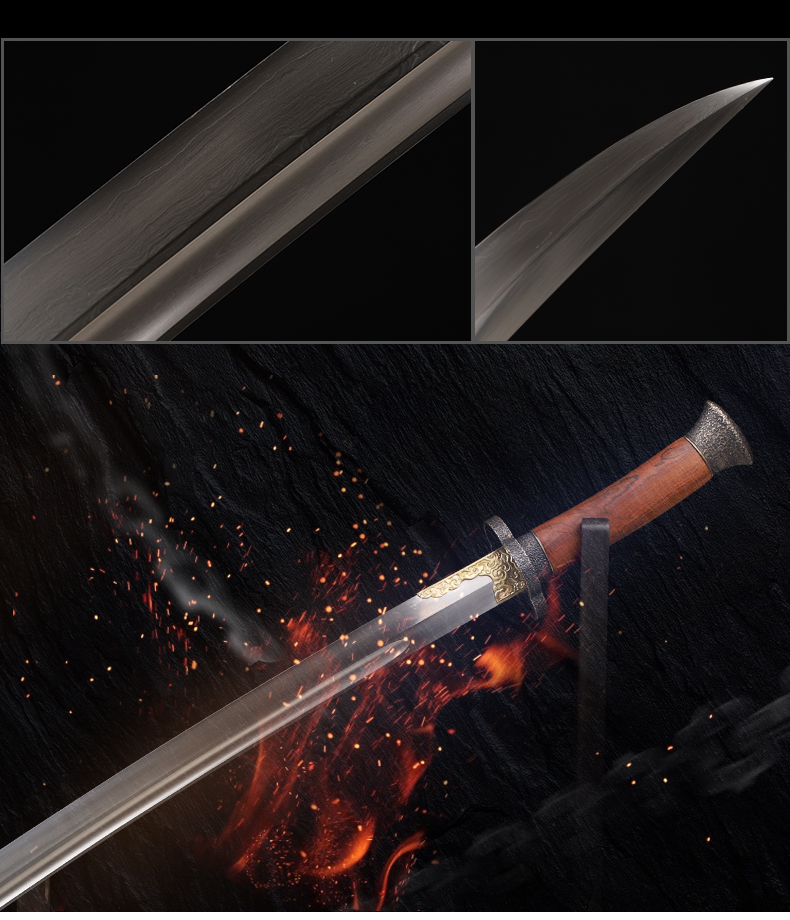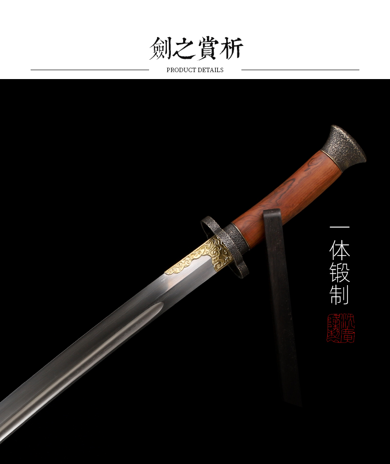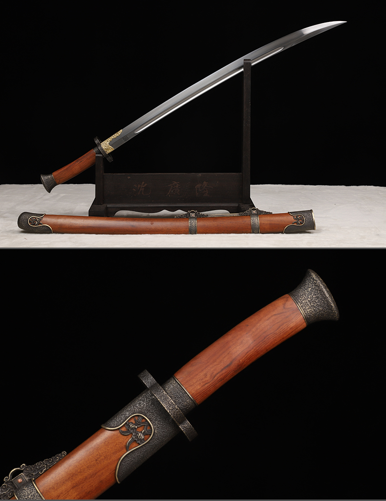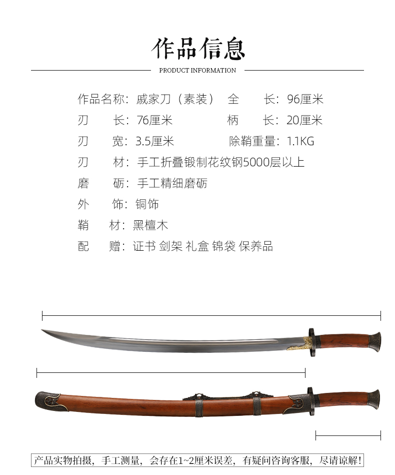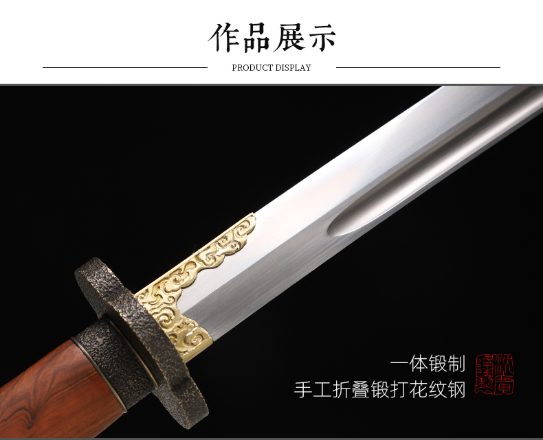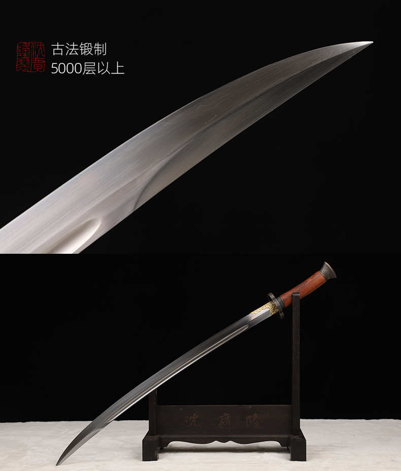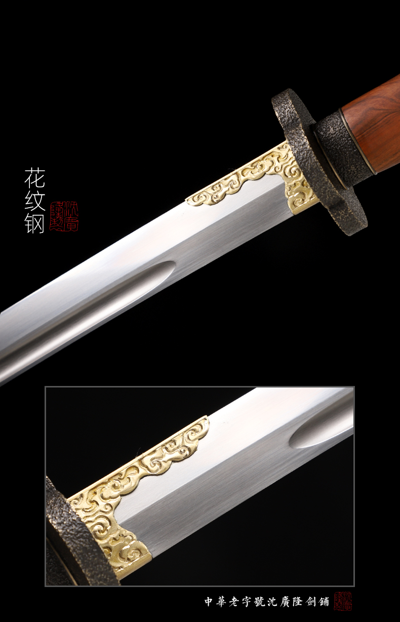 素装戚家刀 传统刀剑 花纹钢一体锻制 龙泉沈广隆刀剑 未开刃