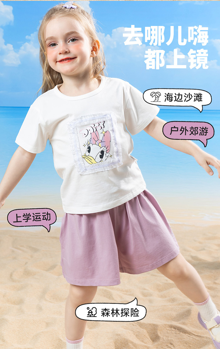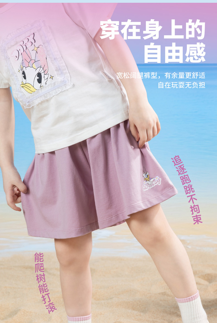 迪士尼2025夏季新款女童凉感短裤宽松轻薄透气休闲短裤凉感百搭裤子ZD2EK019
