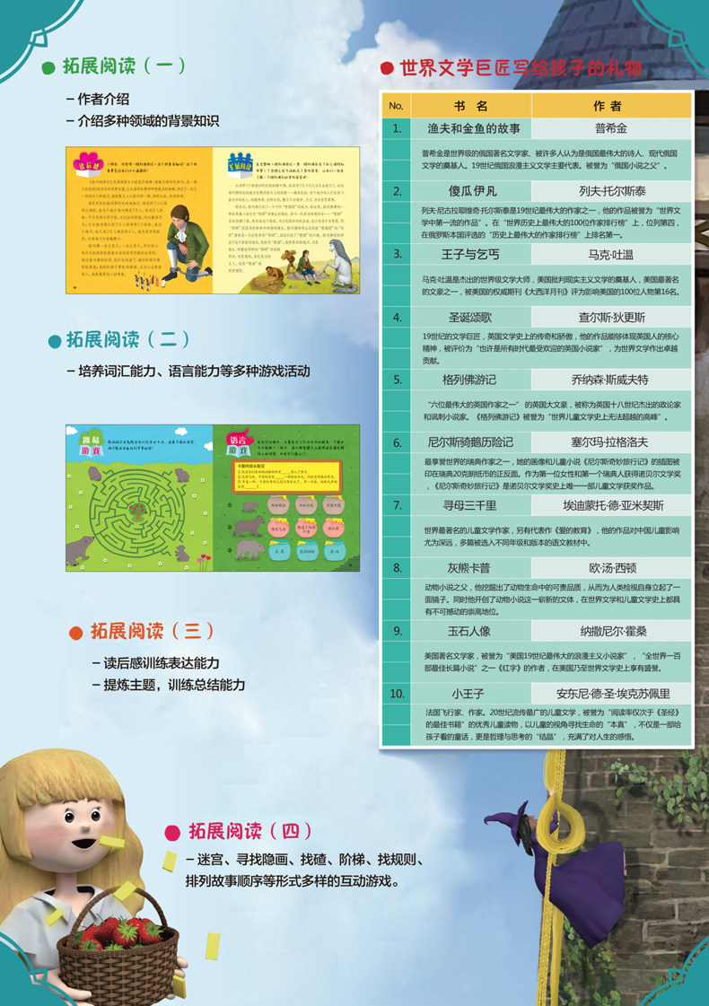 - 加以适合幼儿年龄特征的改编,是孩子也能看的世界名著。