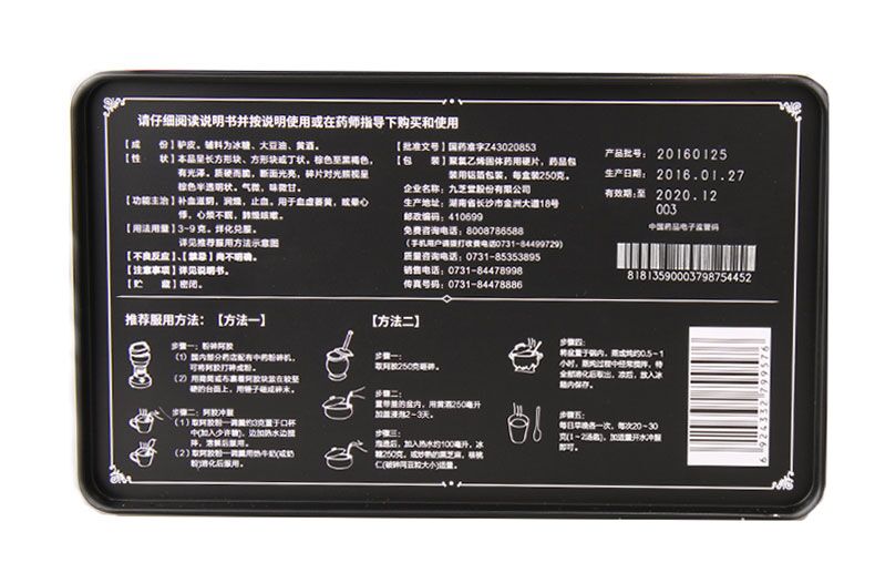 九芝堂阿胶块片250g铁盒正品女人补气血不足补气养血滋阴润燥止血