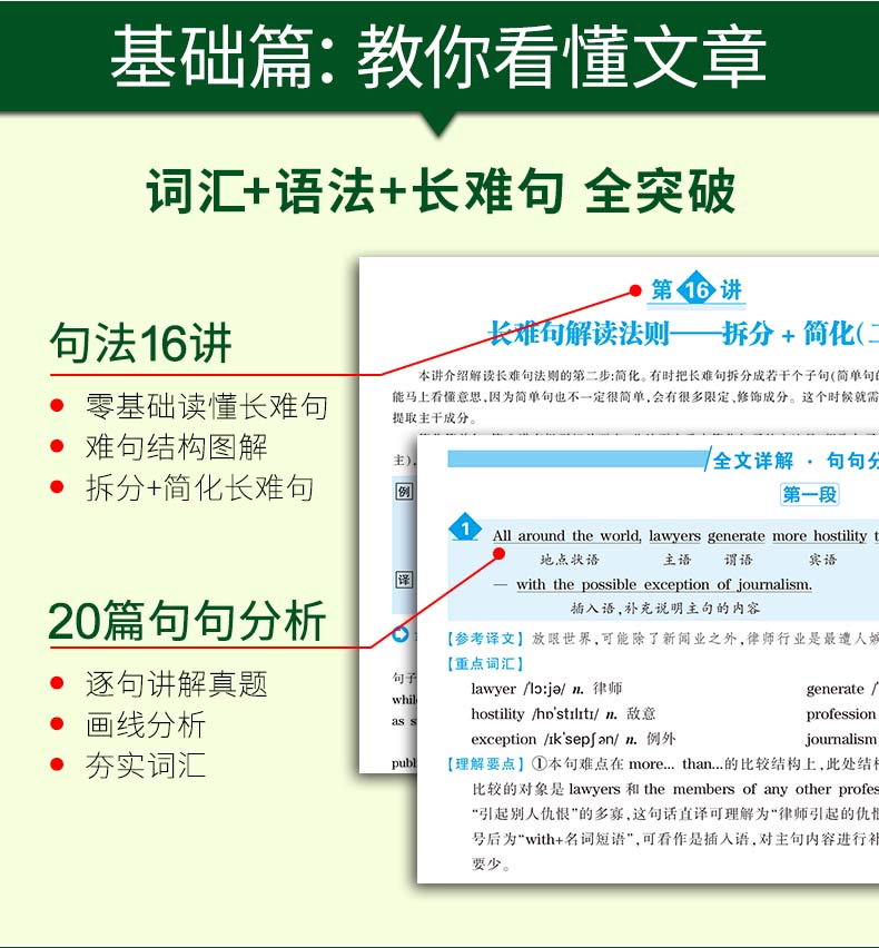 1. 考研英语语法16讲,搭配16节配套视频课讲解,零基础考生也能读懂长难句;
