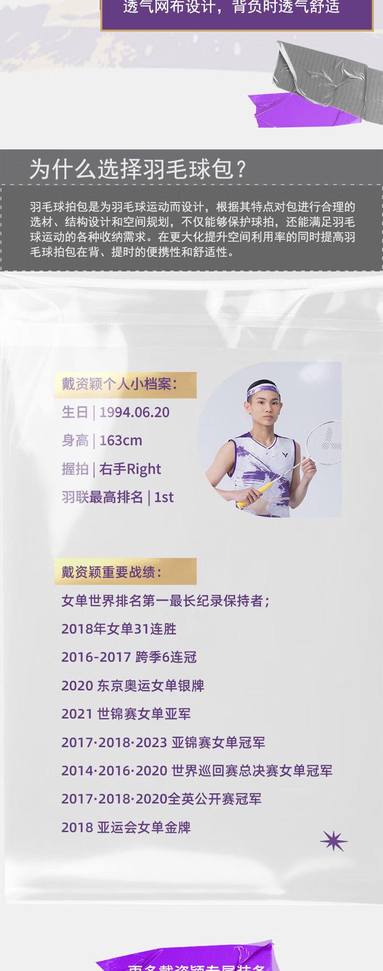 胜利威克多 羽毛球包 戴资颖专属系列 BR3025TTY/BR3825TTY/BR9213TTY