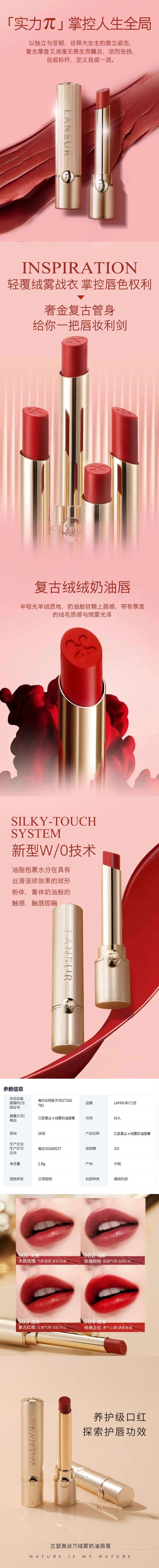 兰瑟真丝π绒雾奶油唇膏1.9g