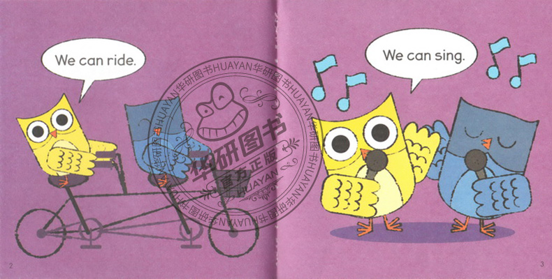 20本读本全部都是彩色读本,图画也很可爱,看起来很舒服。句式非常简单而且重复,没有复合句。每本读本都是8页,而且每一页基本只有一行话,很适合刚接触阅读的孩子。因为每一本读本的内容基本都是重复的,当孩子熟了之后他会自己变换里面的词。