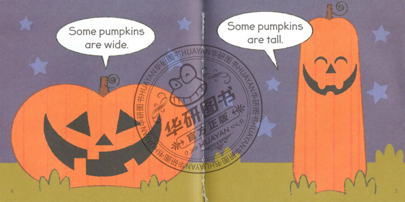 1.全彩印刷,包含各种可爱的漫画角色,如会说话的南瓜(talking pumpkins)、小怪兽(monsters)、神奇的小精灵(magic fairies)等;
