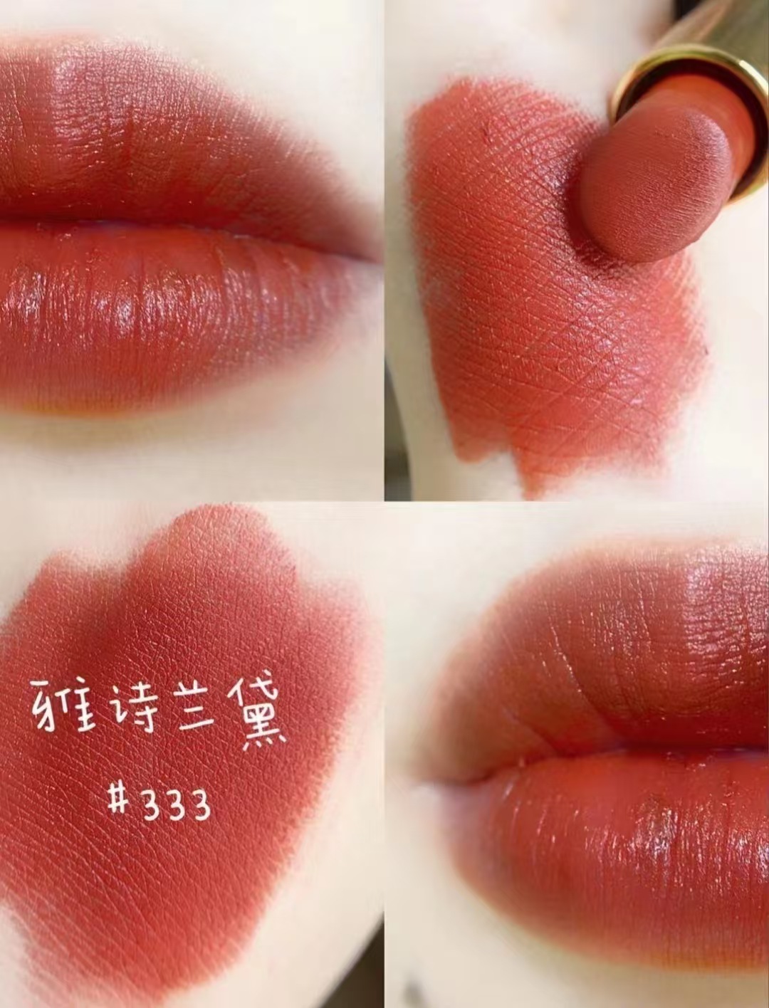 这支333我就问,谁没用过?这支是口红色号的鼻祖色~不挑肤色,谁用谁白~整个人气色都精致了很多~