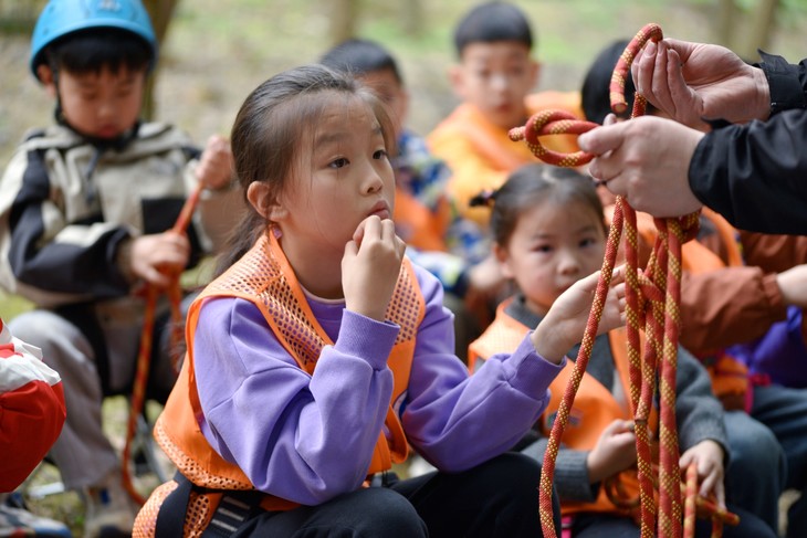 学习攀树绳结,只有不断实践,才能熟练掌握。