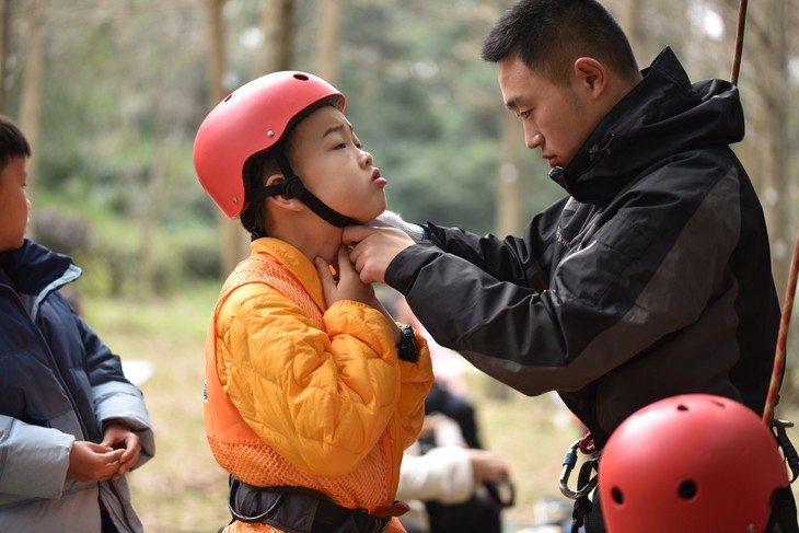 克服高度带来的恐惧、挑战地心引力带来的困难,借助绳索、锁具等一整套装备,靠自己的力量爬上一棵大树。