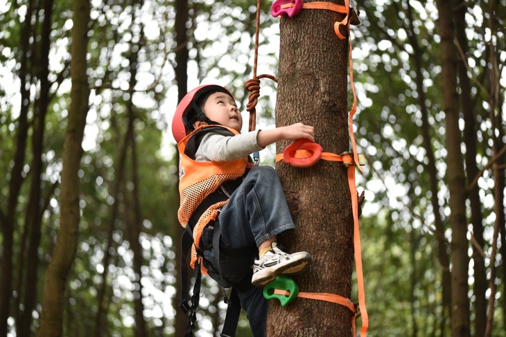 孩子对爬树总是情有独钟,这个“爱好”仿佛是与生俱来。