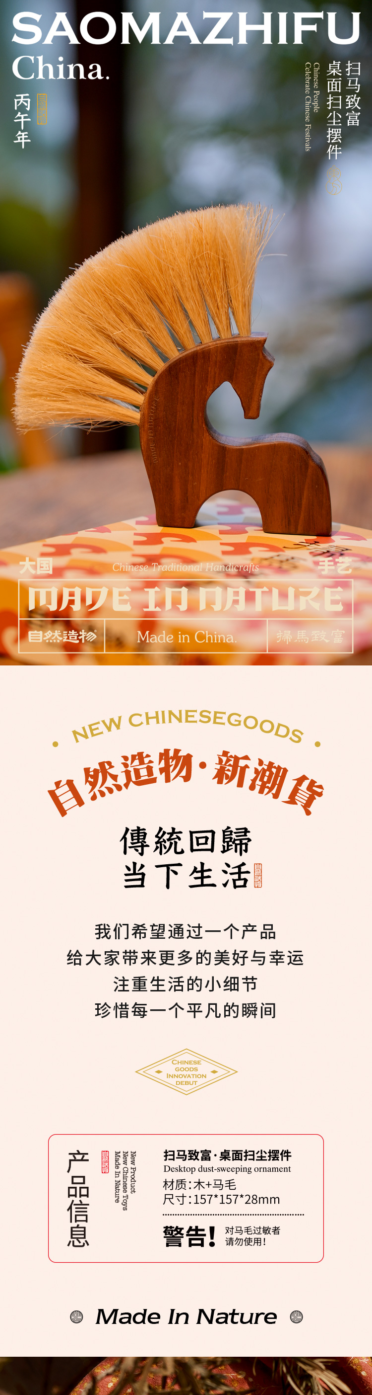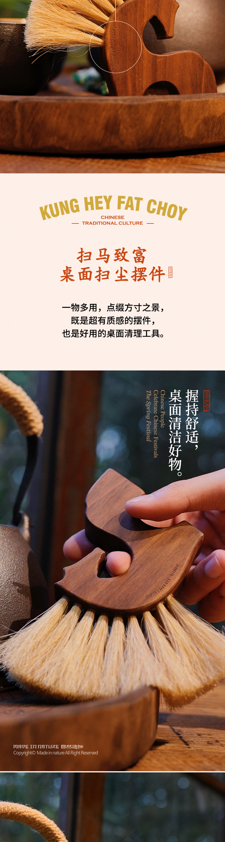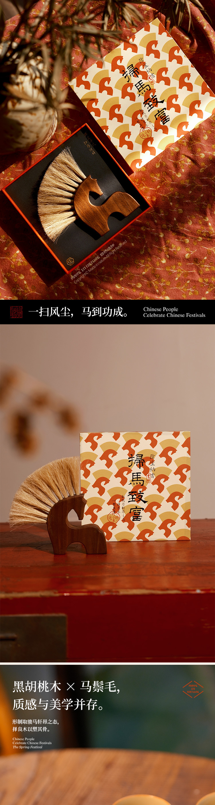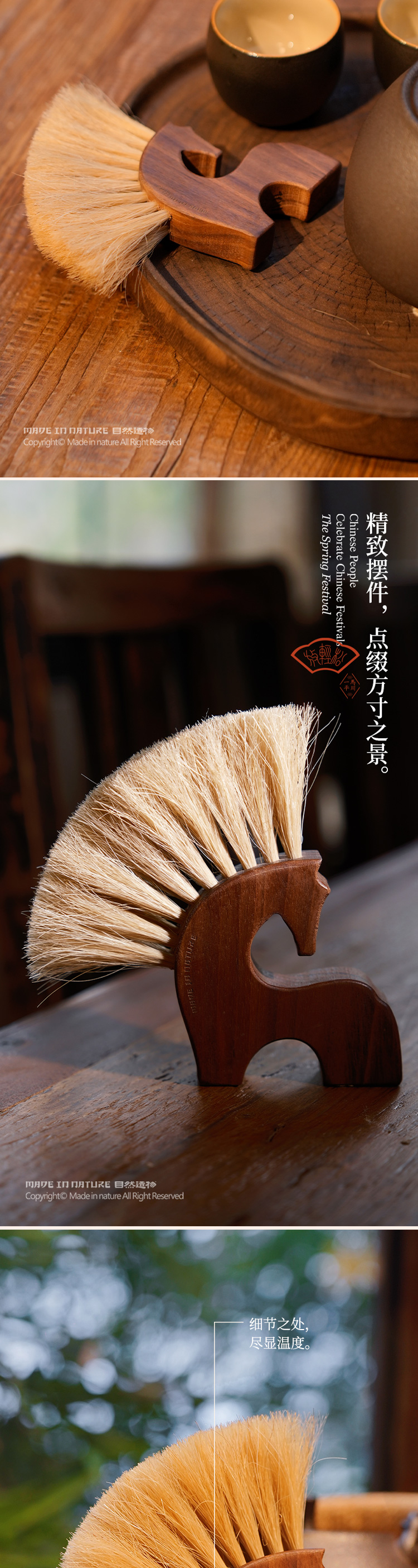 自然造物马年扫马致富桌面扫尘新年摆件年会伴手礼物春节实用礼盒